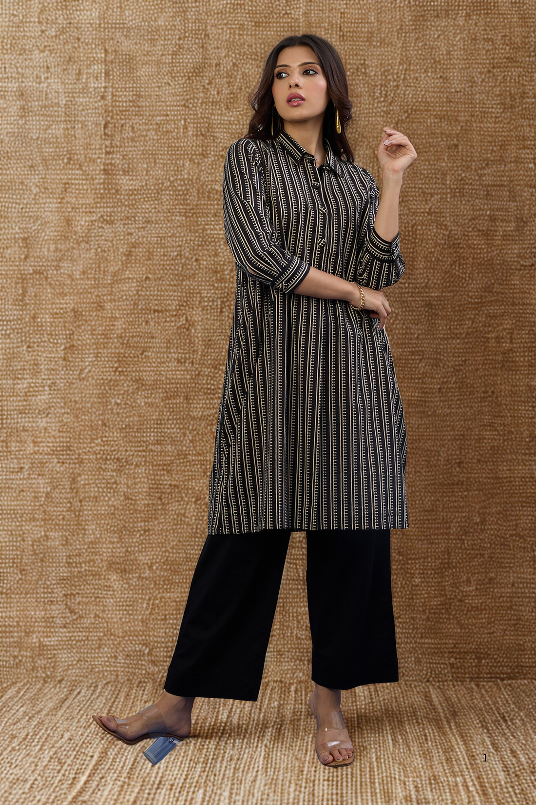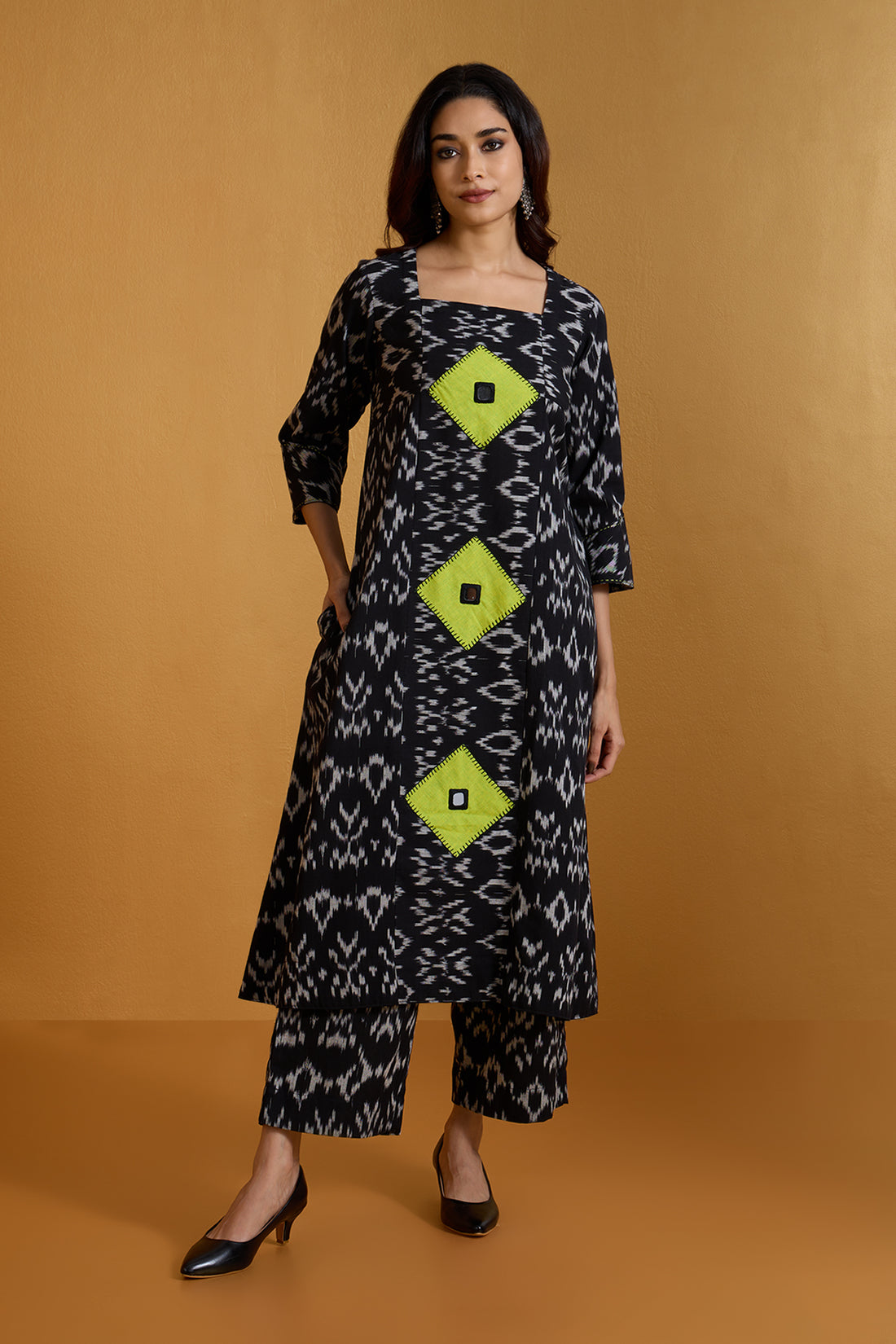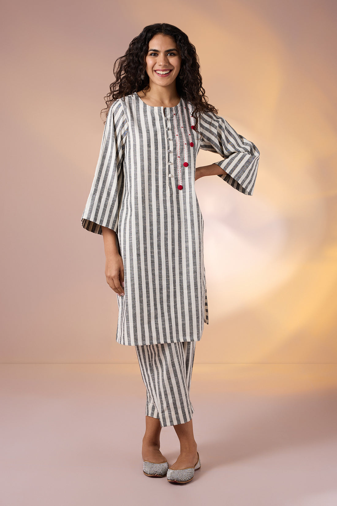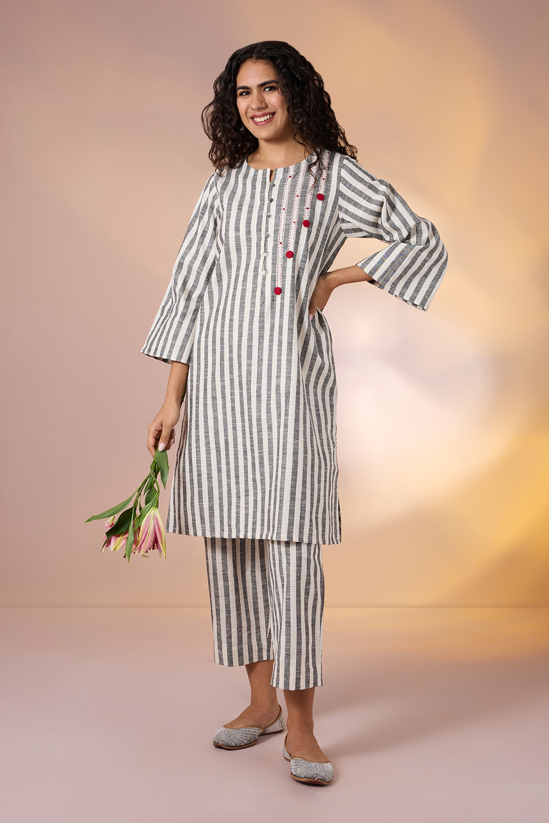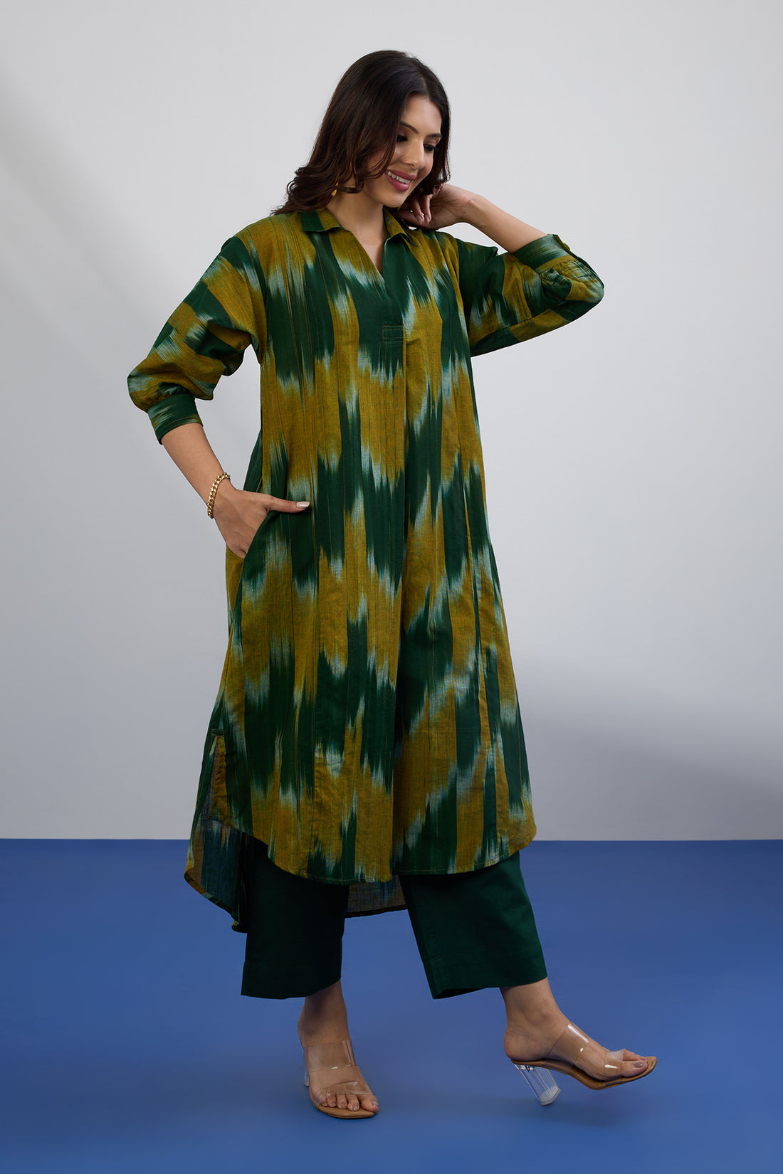 Co-ord Set Emerald Bar Cotton Collar Kurta & Pants