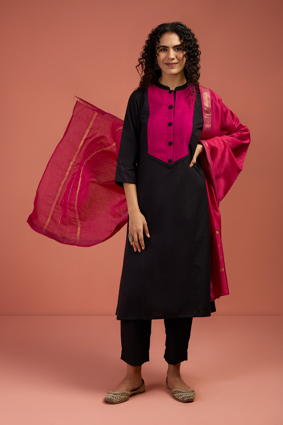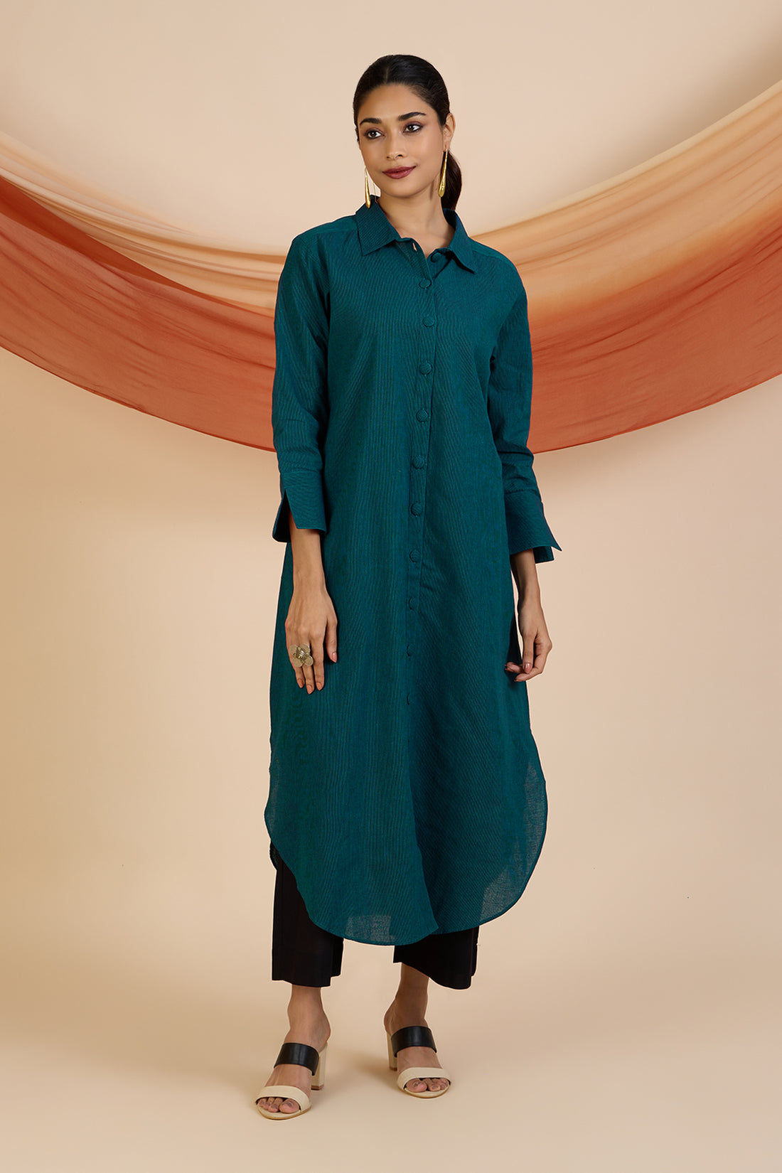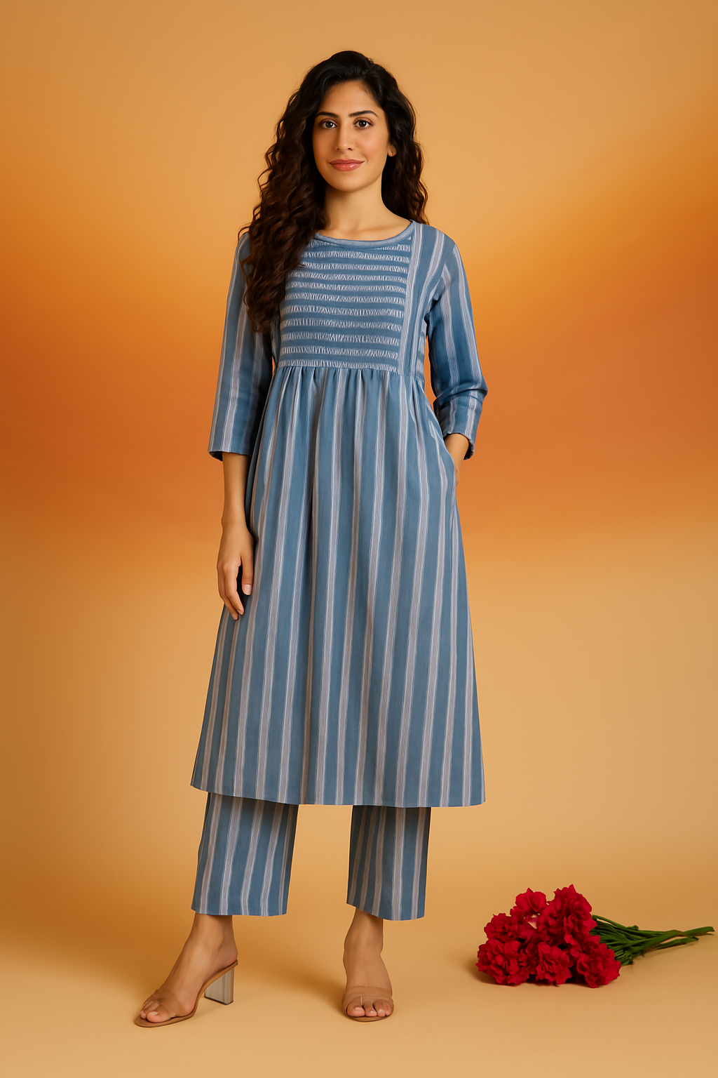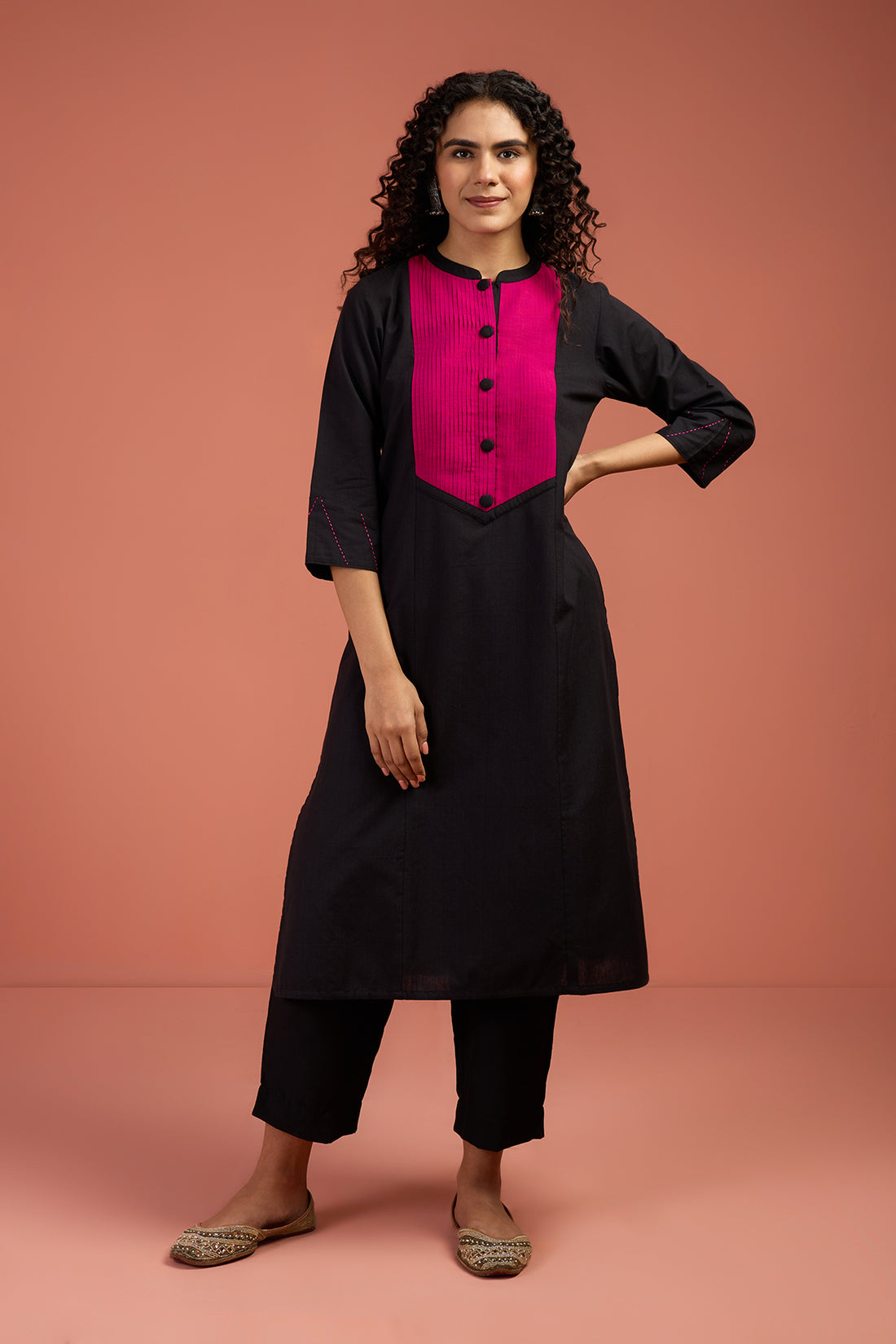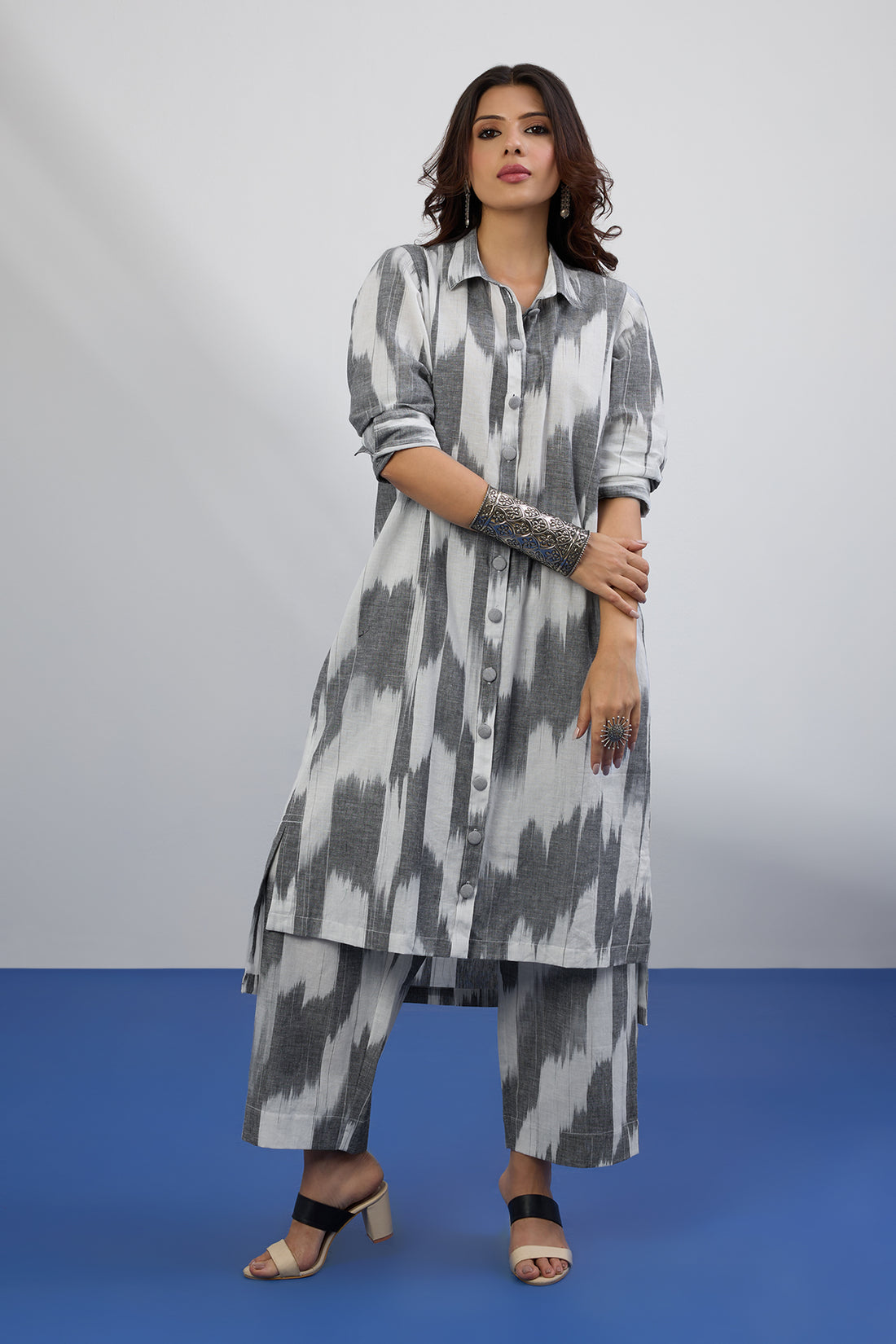 Co-ord Set Emerald Bar Cotton Collar Kurta & Pants