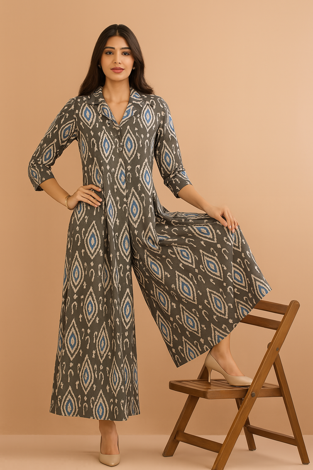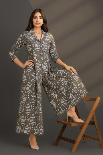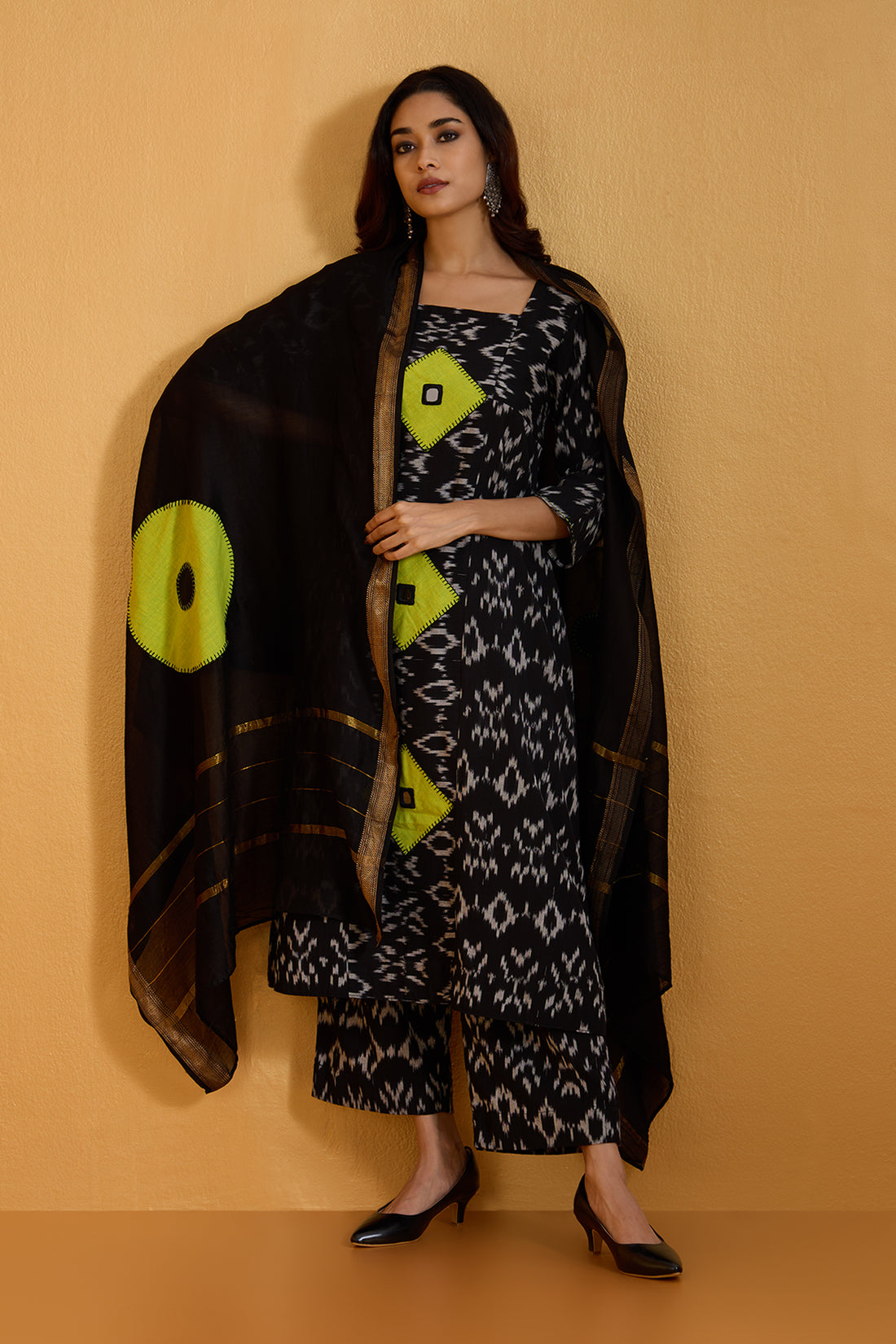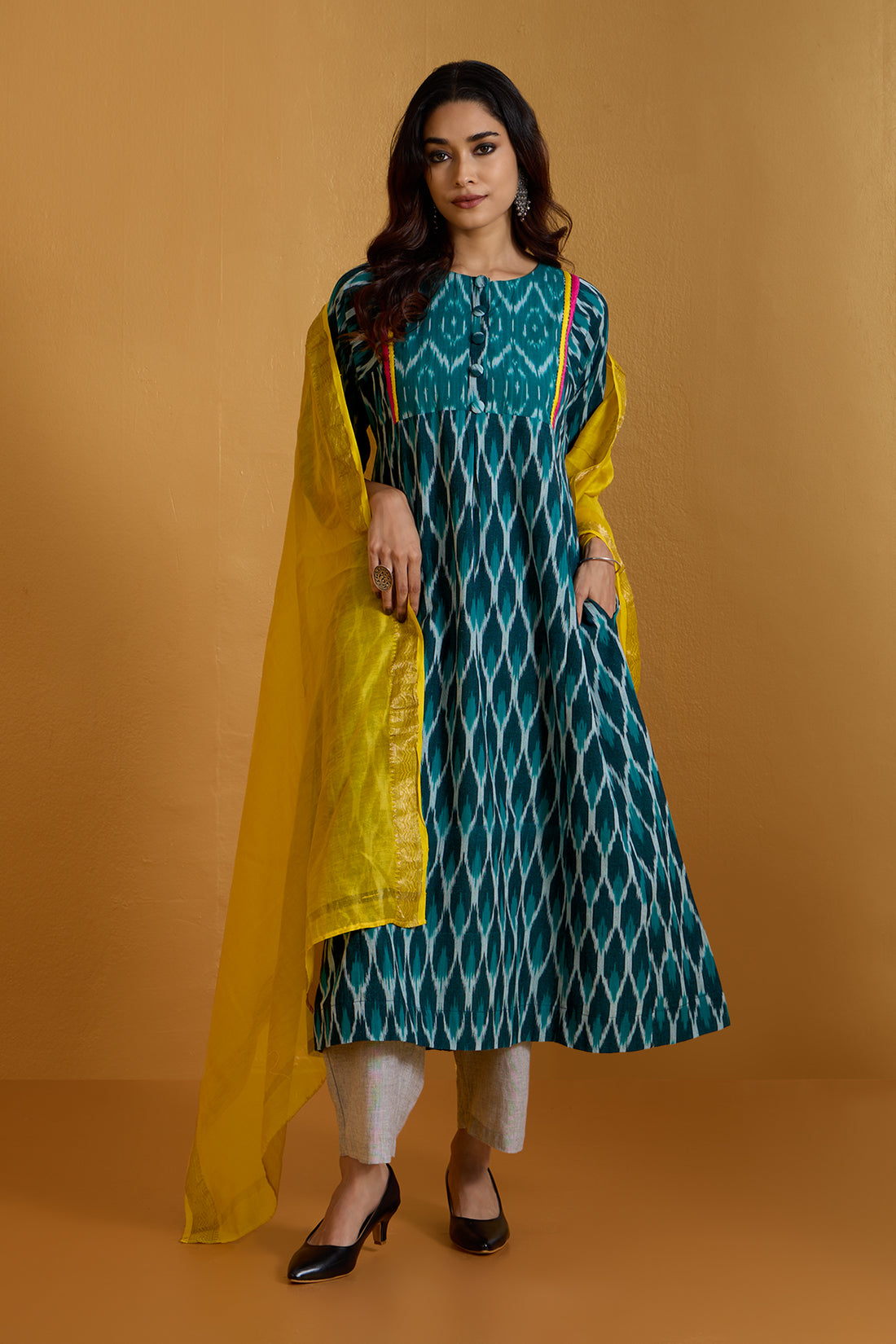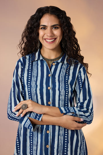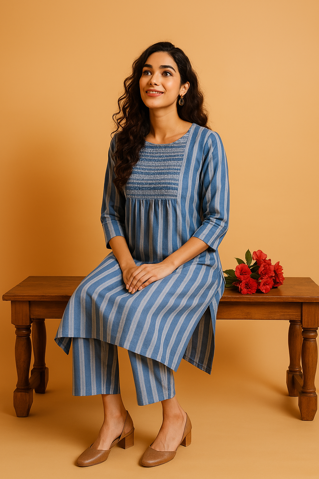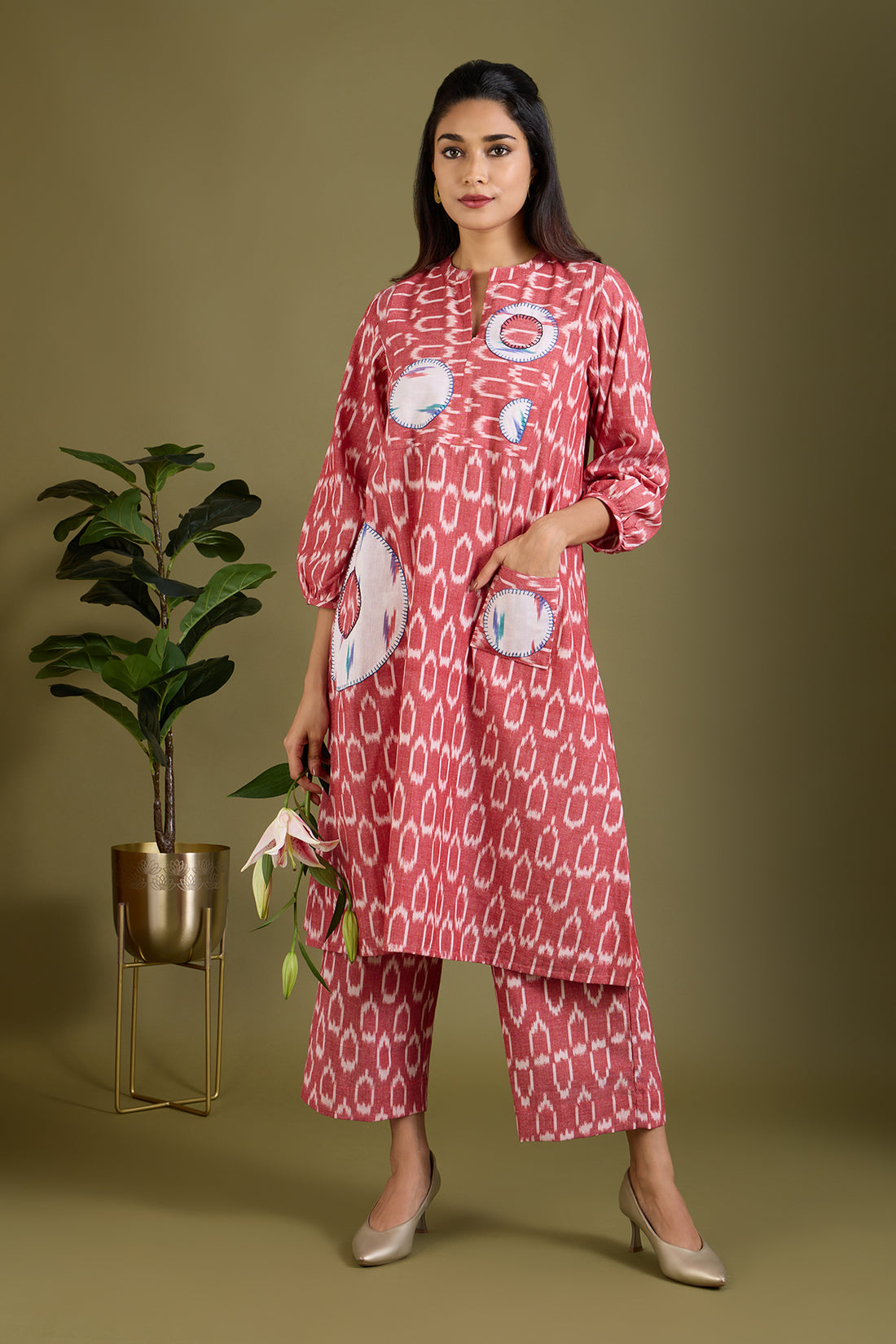Co-ord Set Emerald Bar Cotton Collar Kurta & Pants