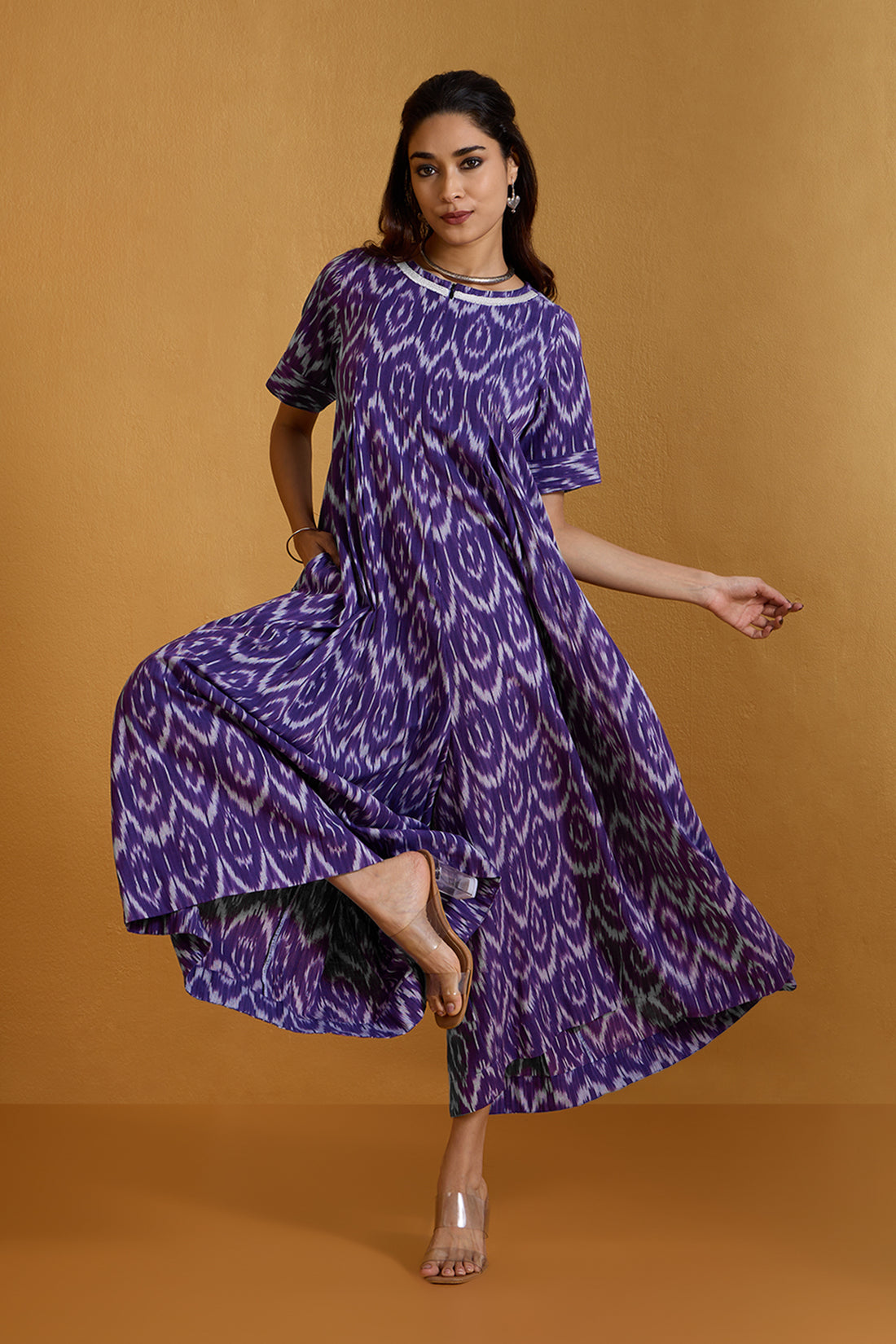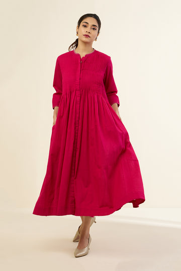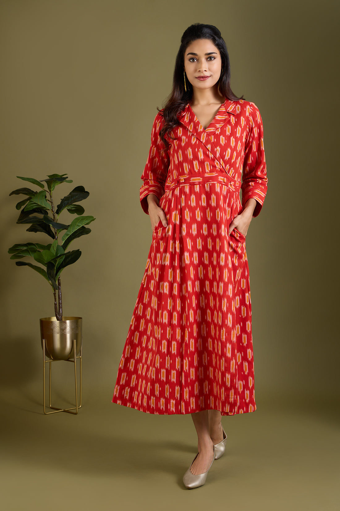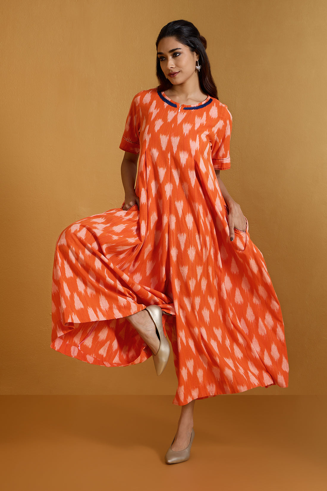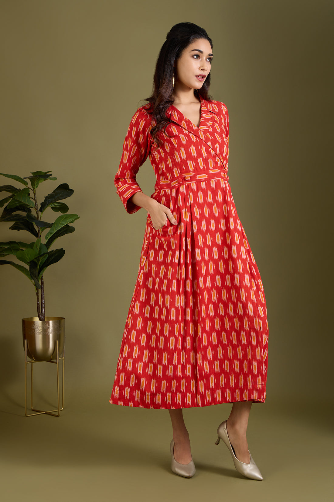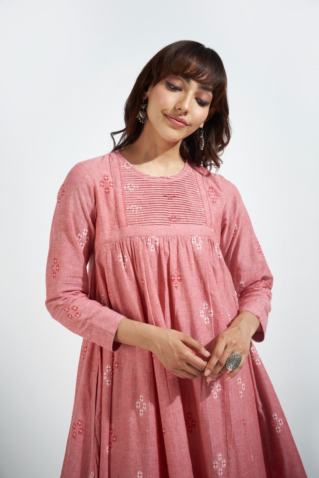 Ash Rose Cotton Ikat Box Pleat Button Down Shirt Dress