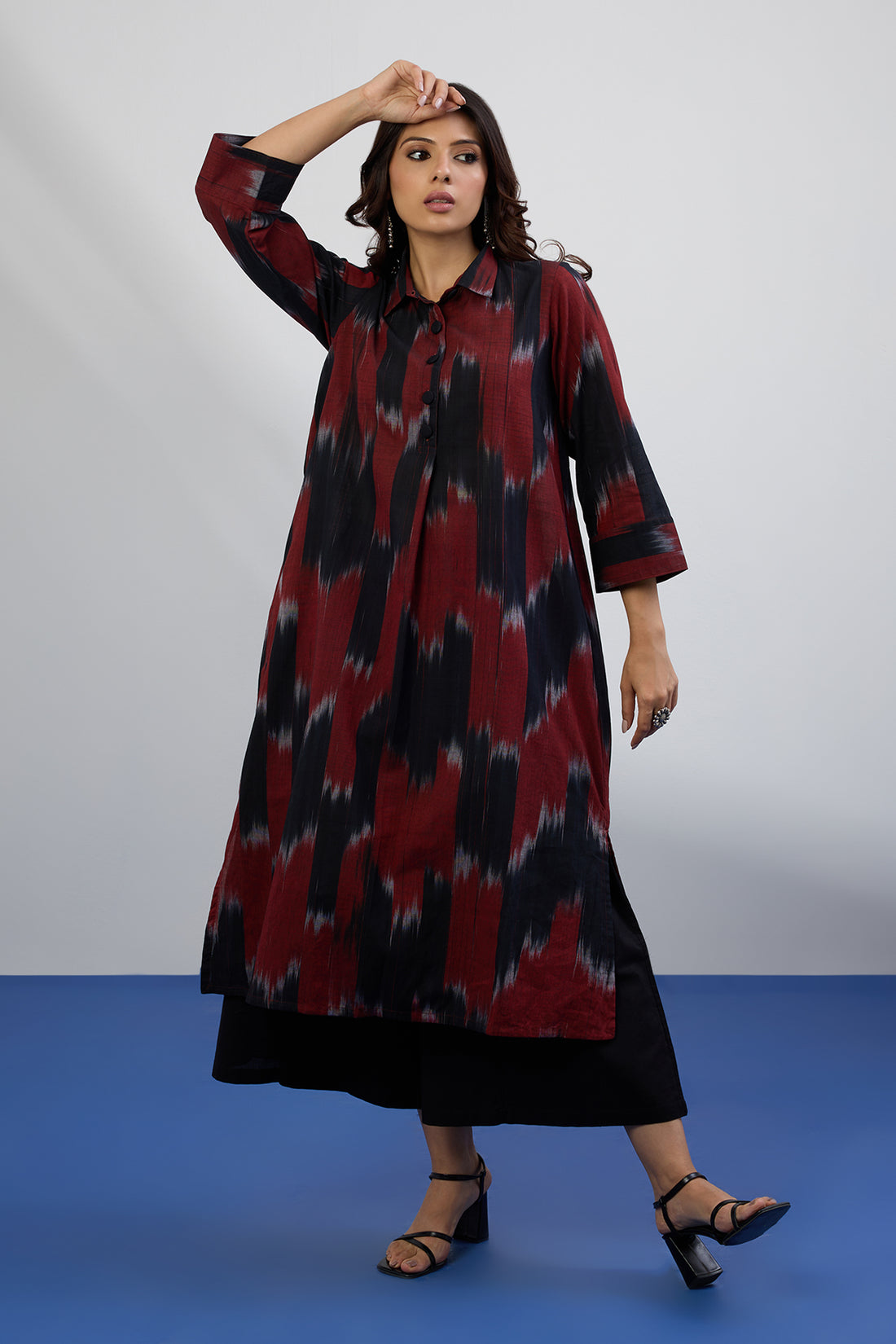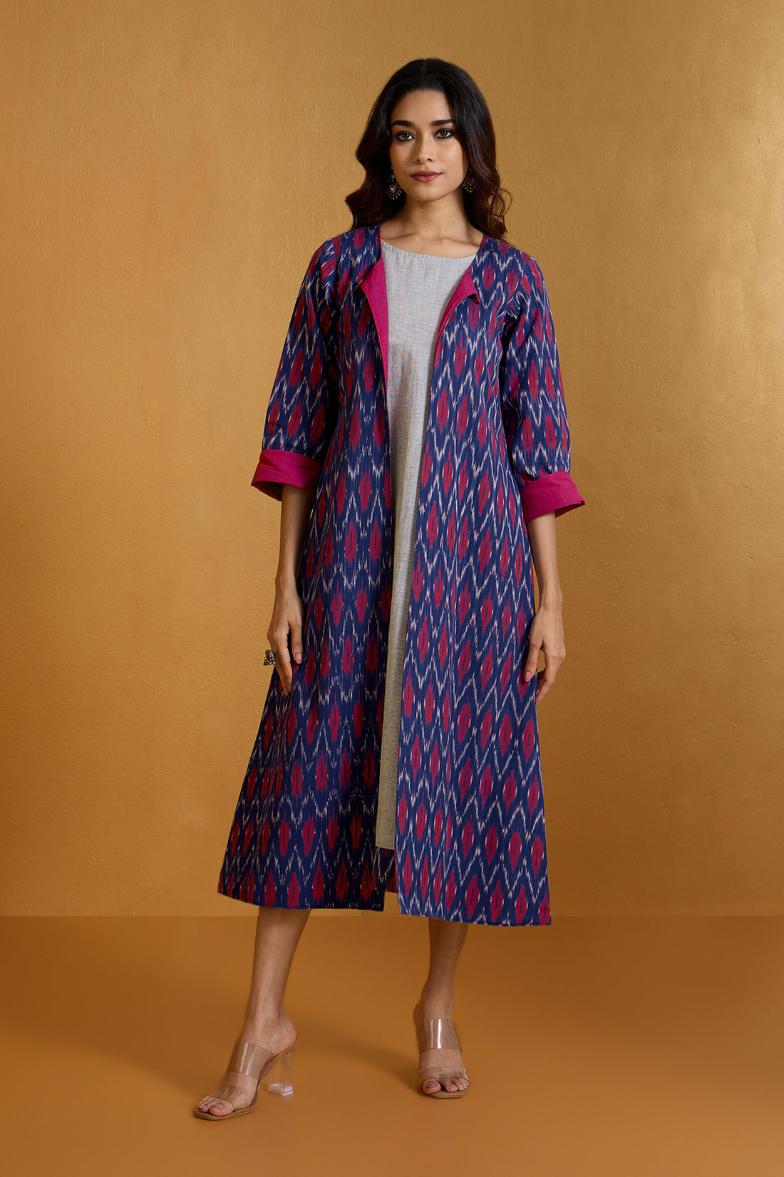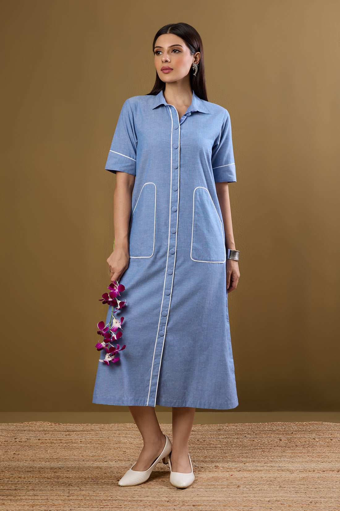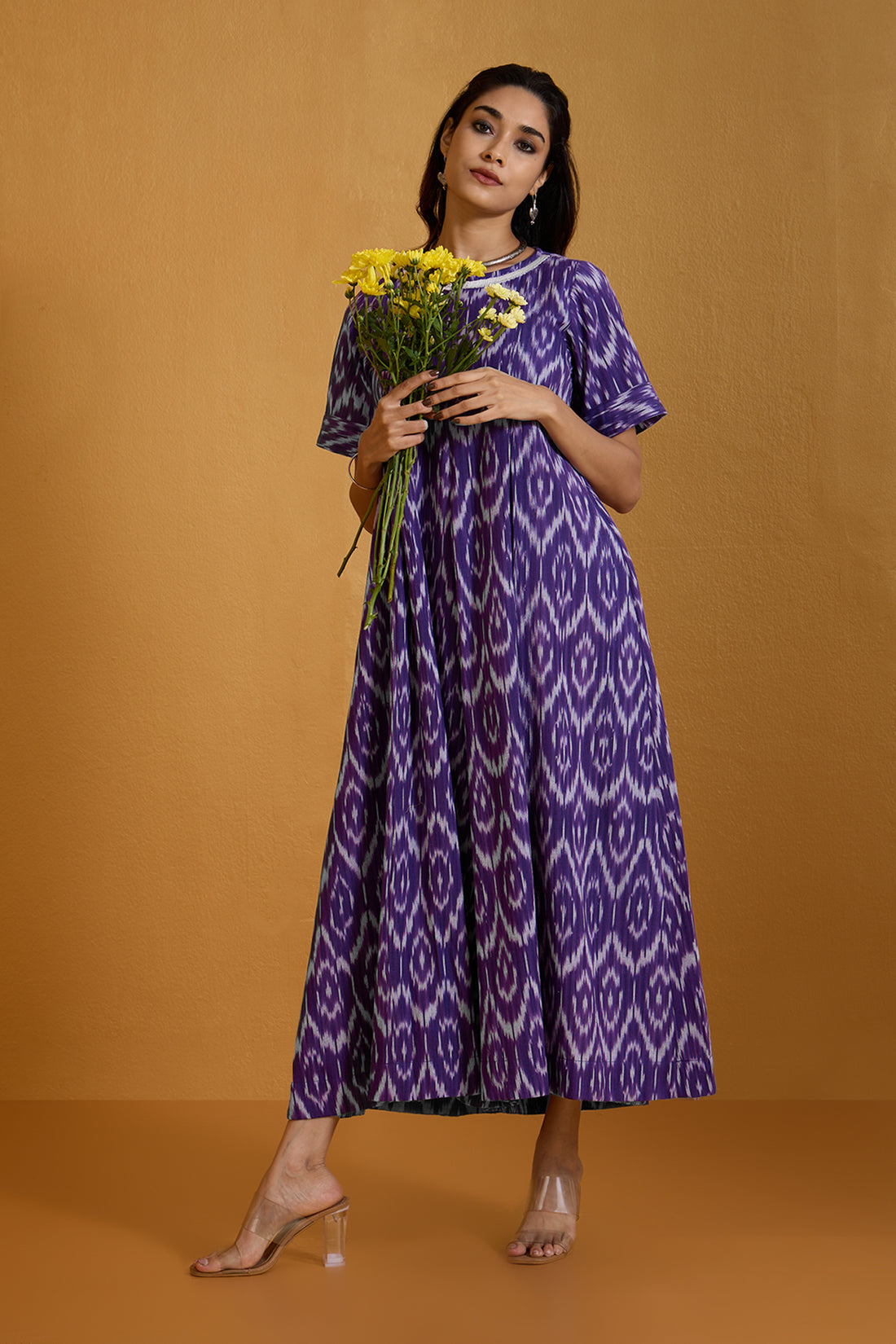 Ash Rose Cotton Ikat Box Pleat Button Down Shirt Dress