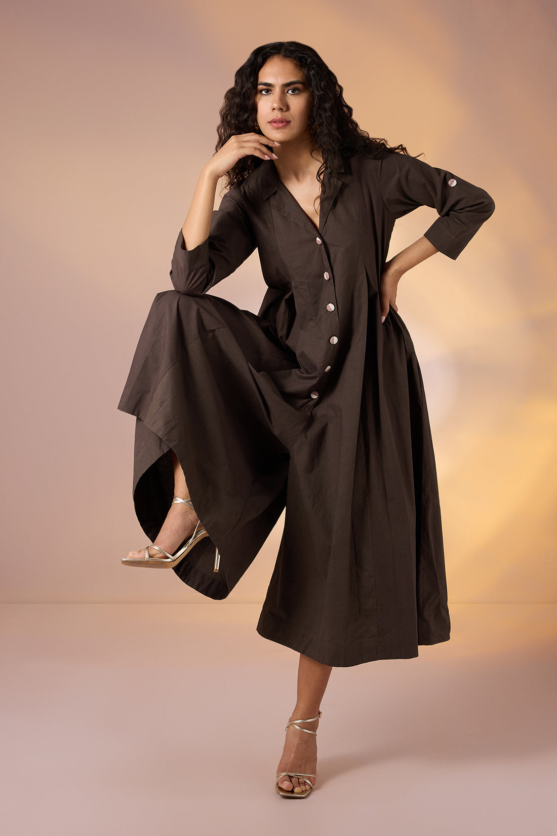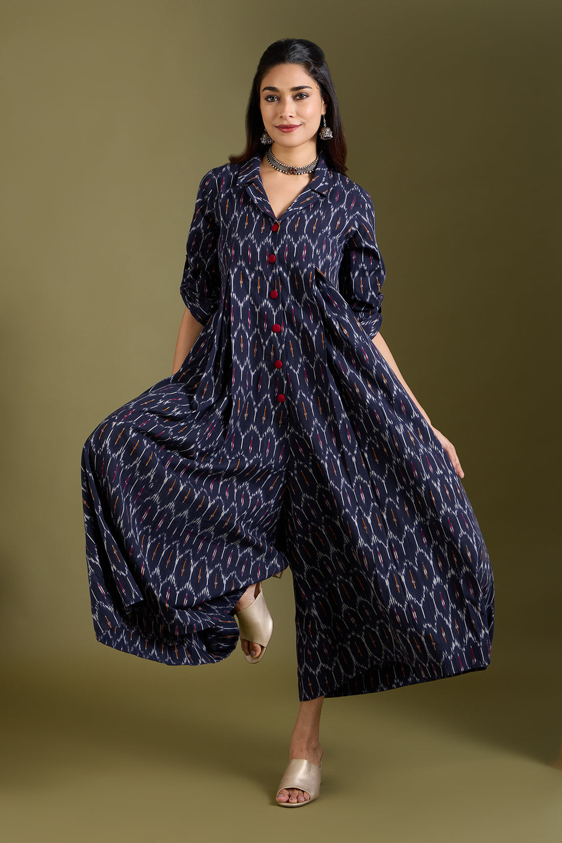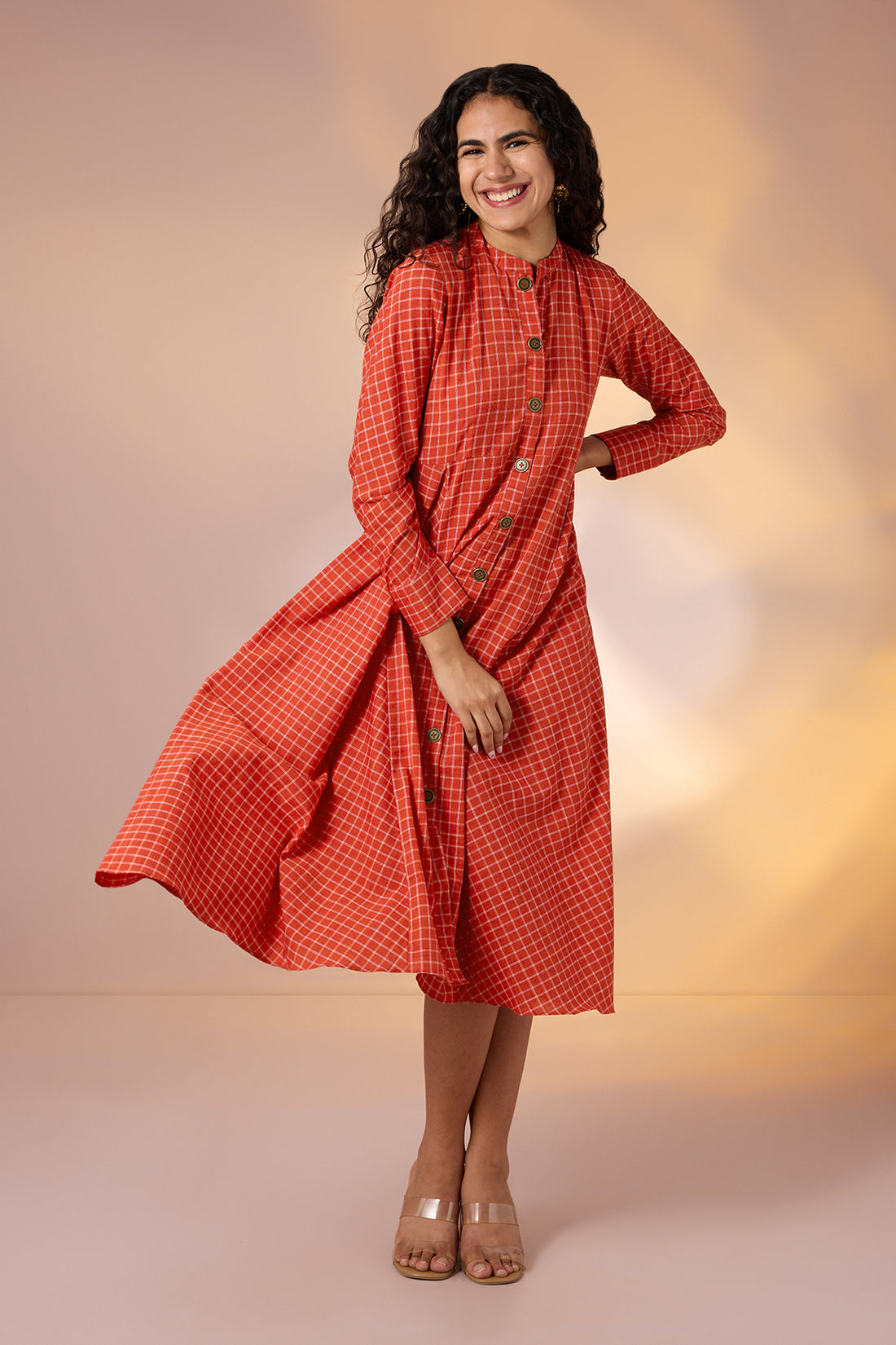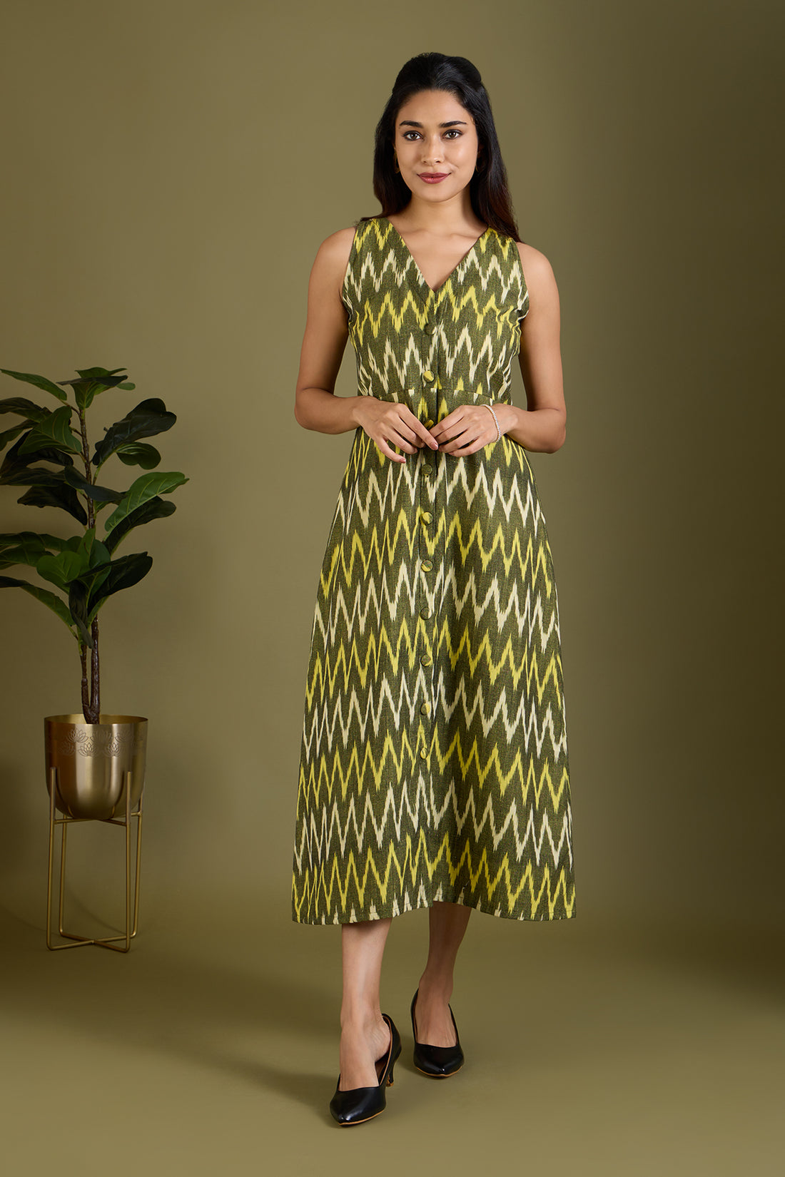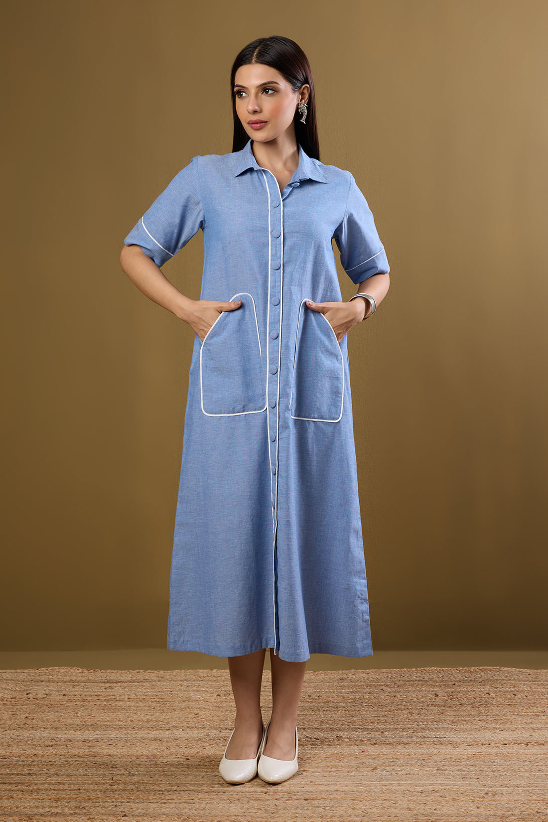 Ash Rose Cotton Ikat Box Pleat Button Down Shirt Dress