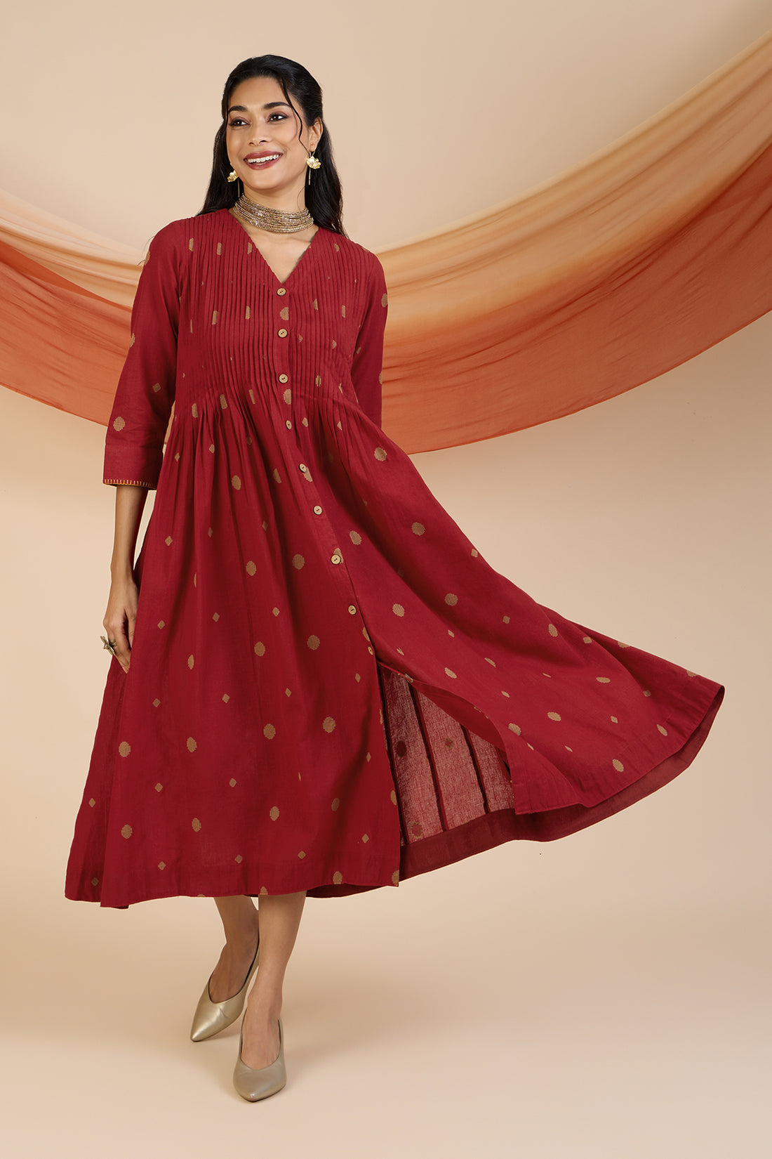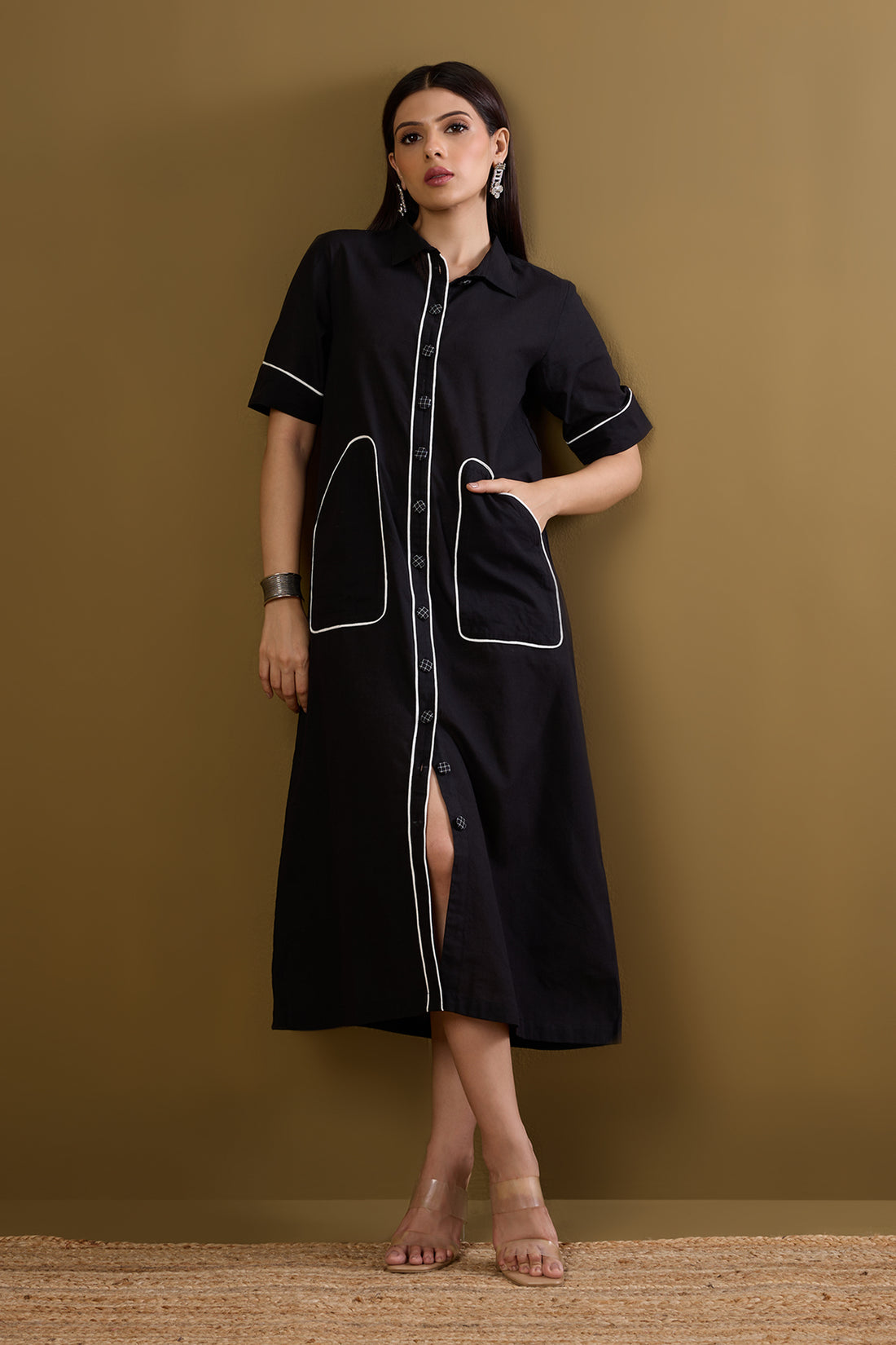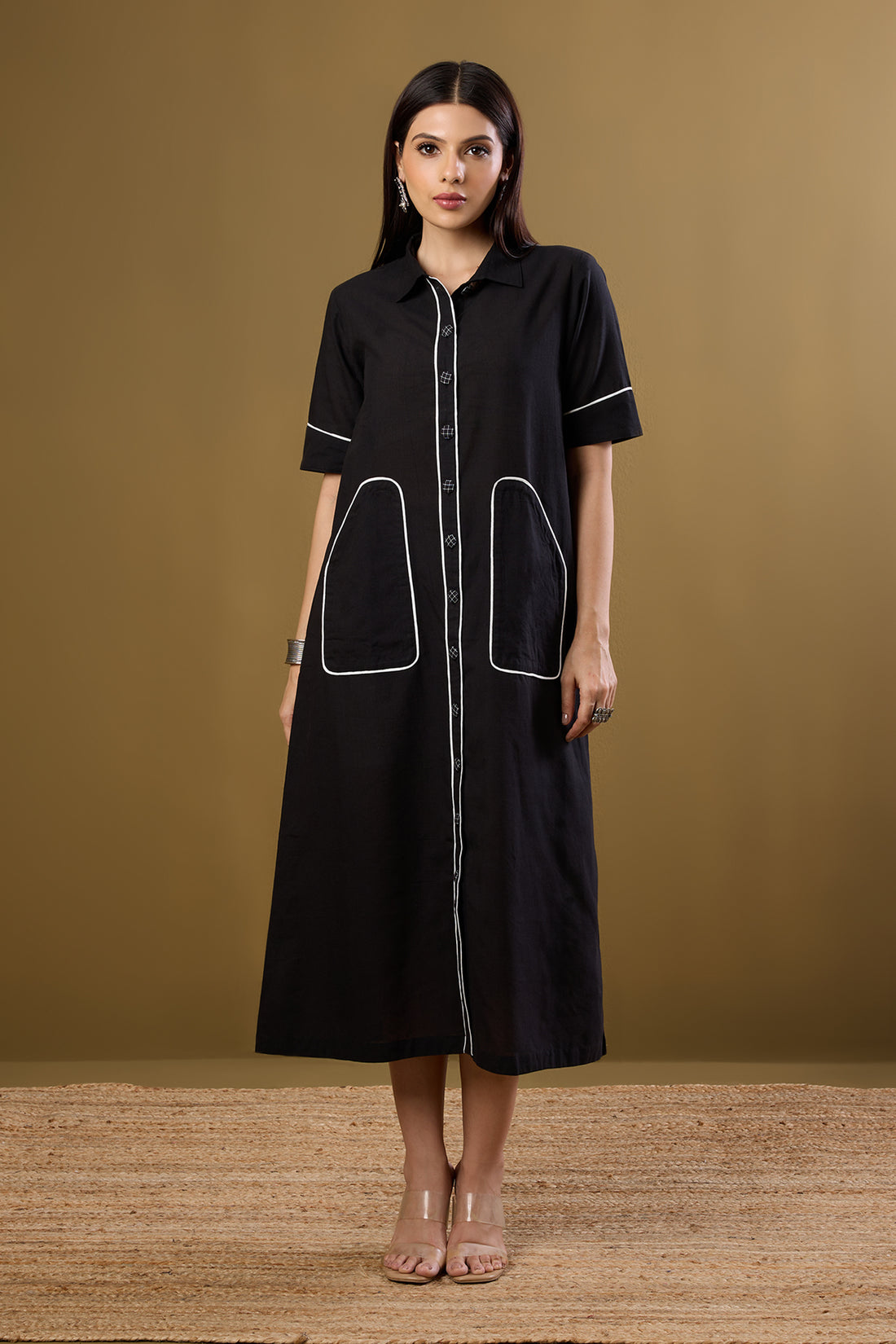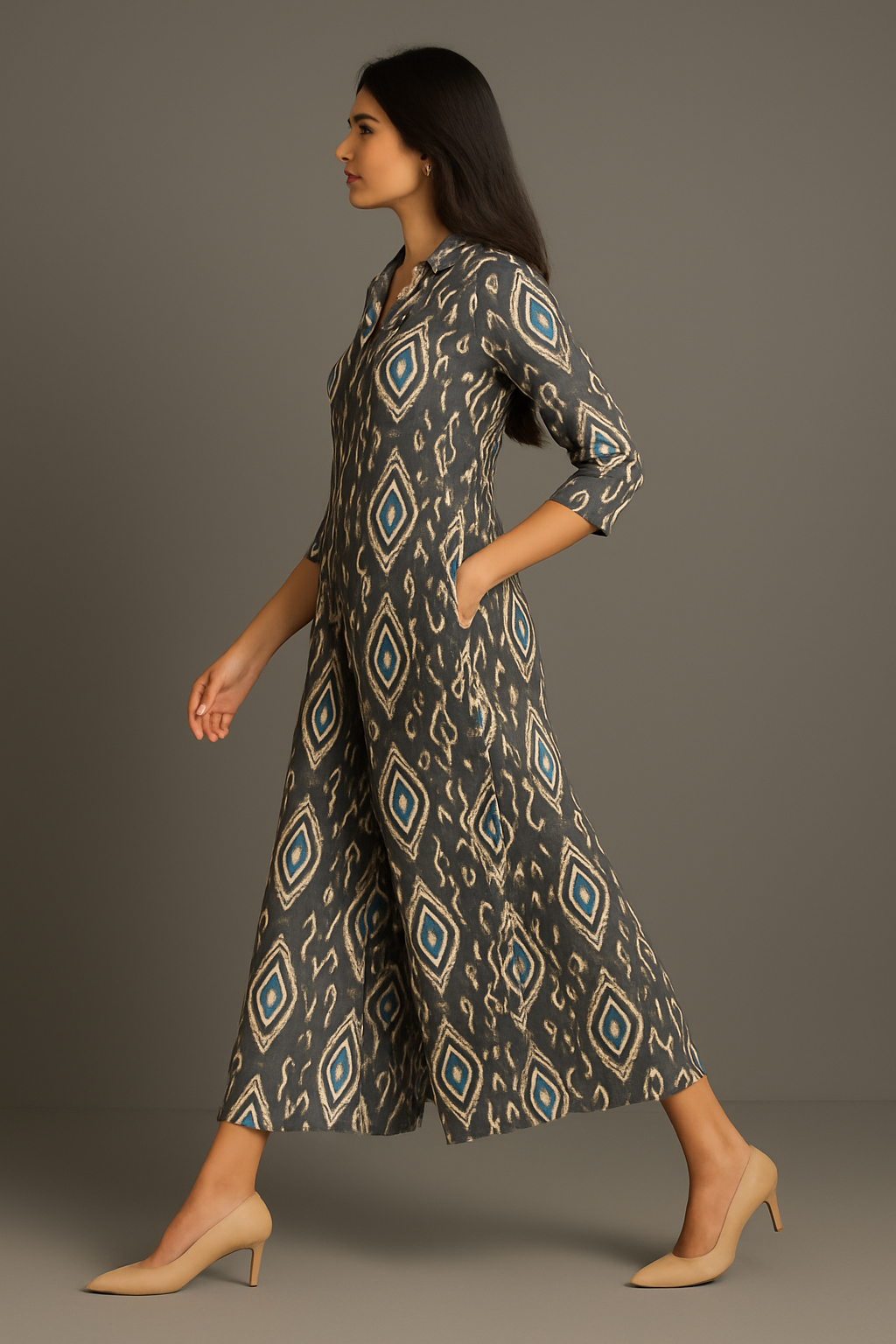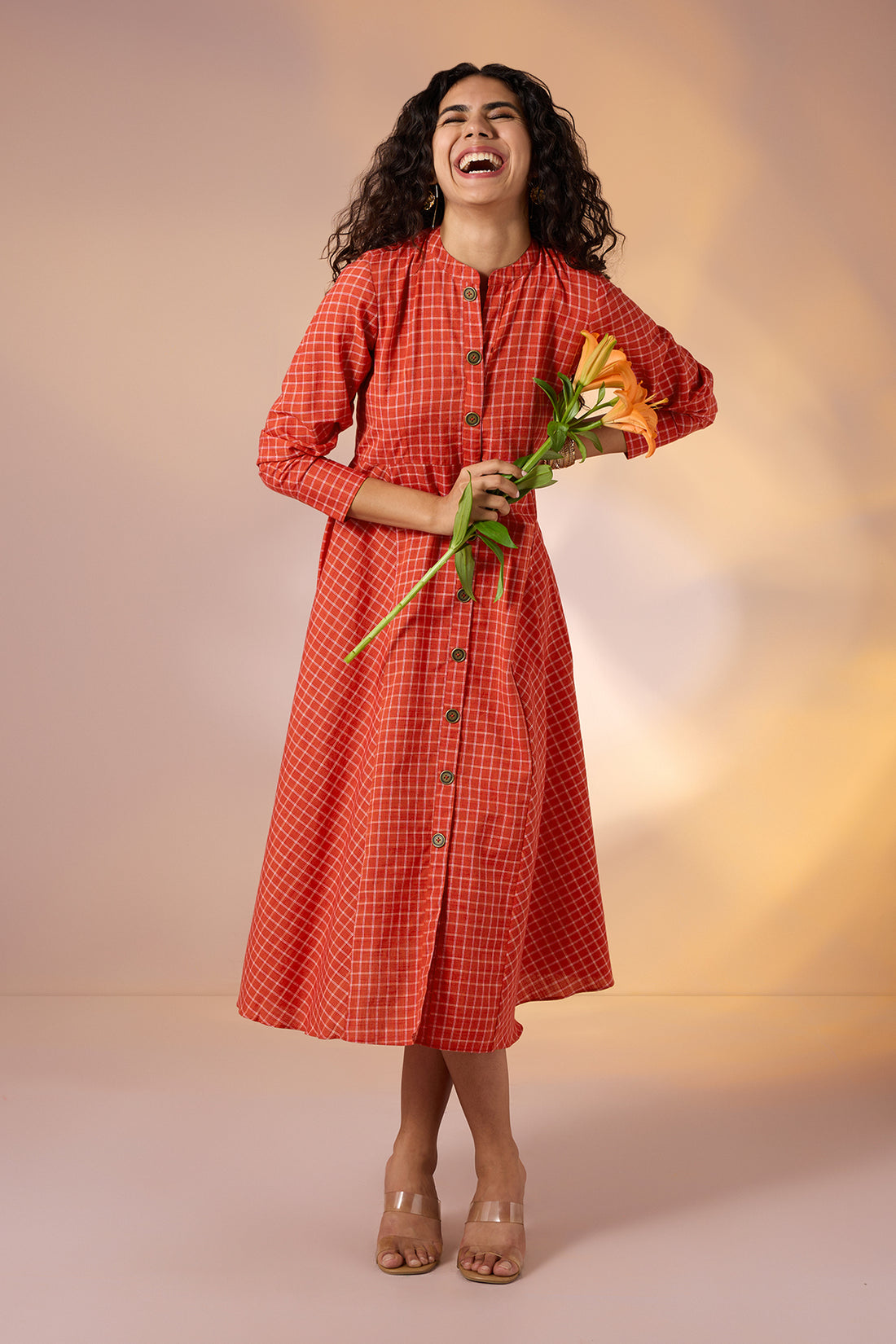 Ash Rose Cotton Ikat Box Pleat Button Down Shirt Dress