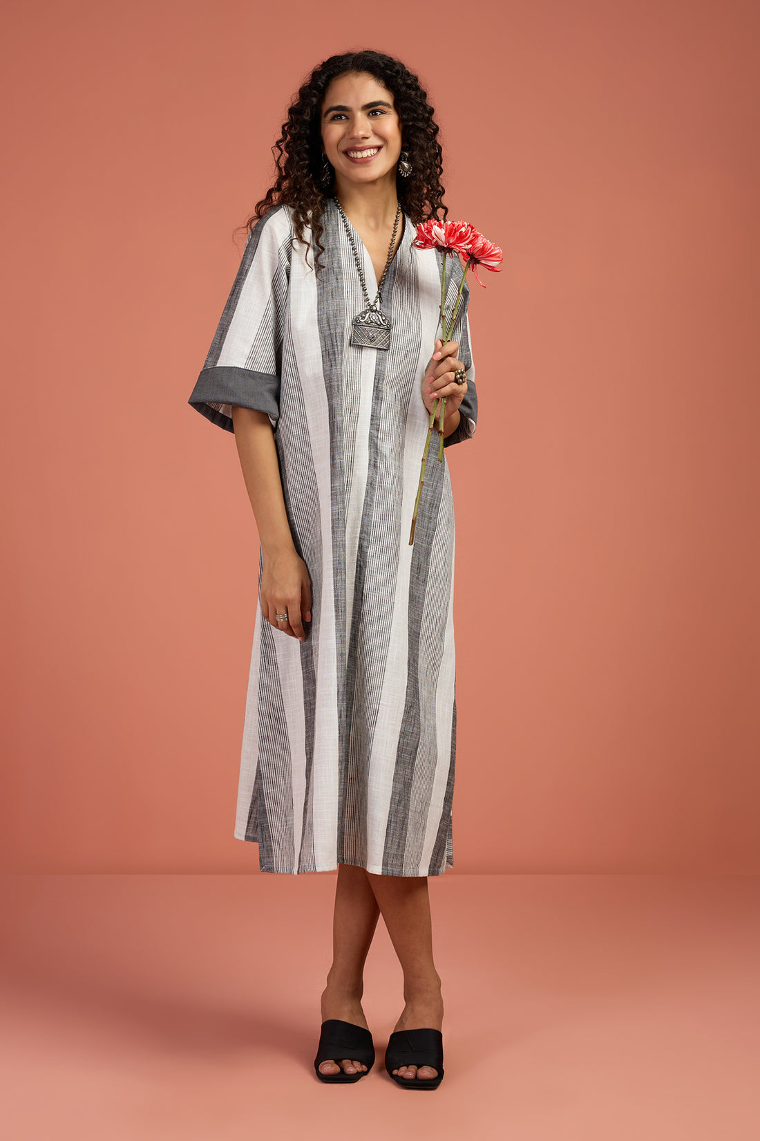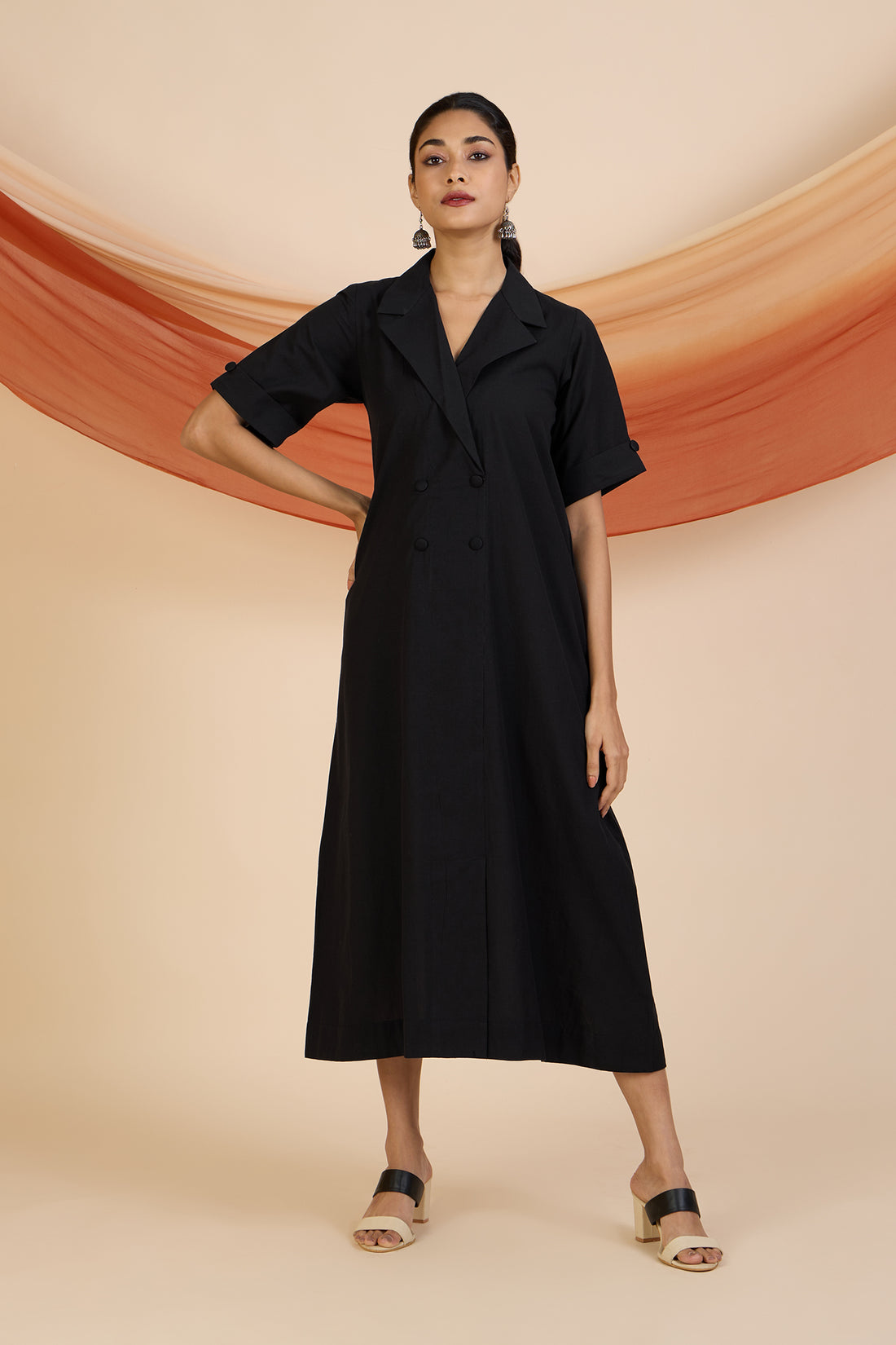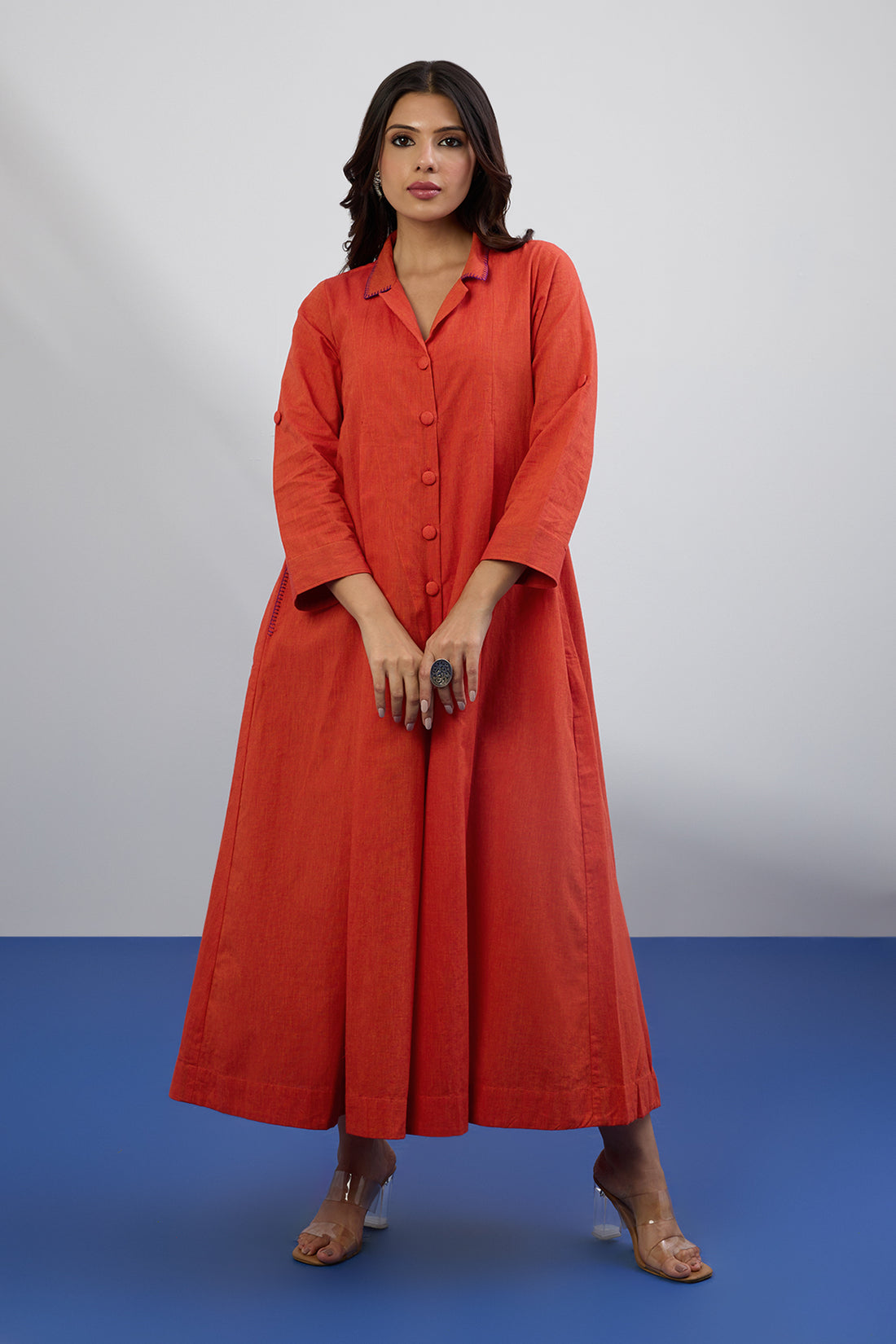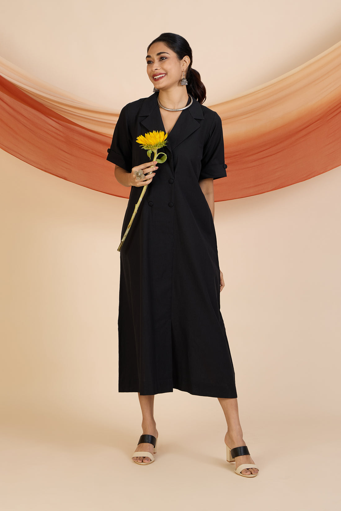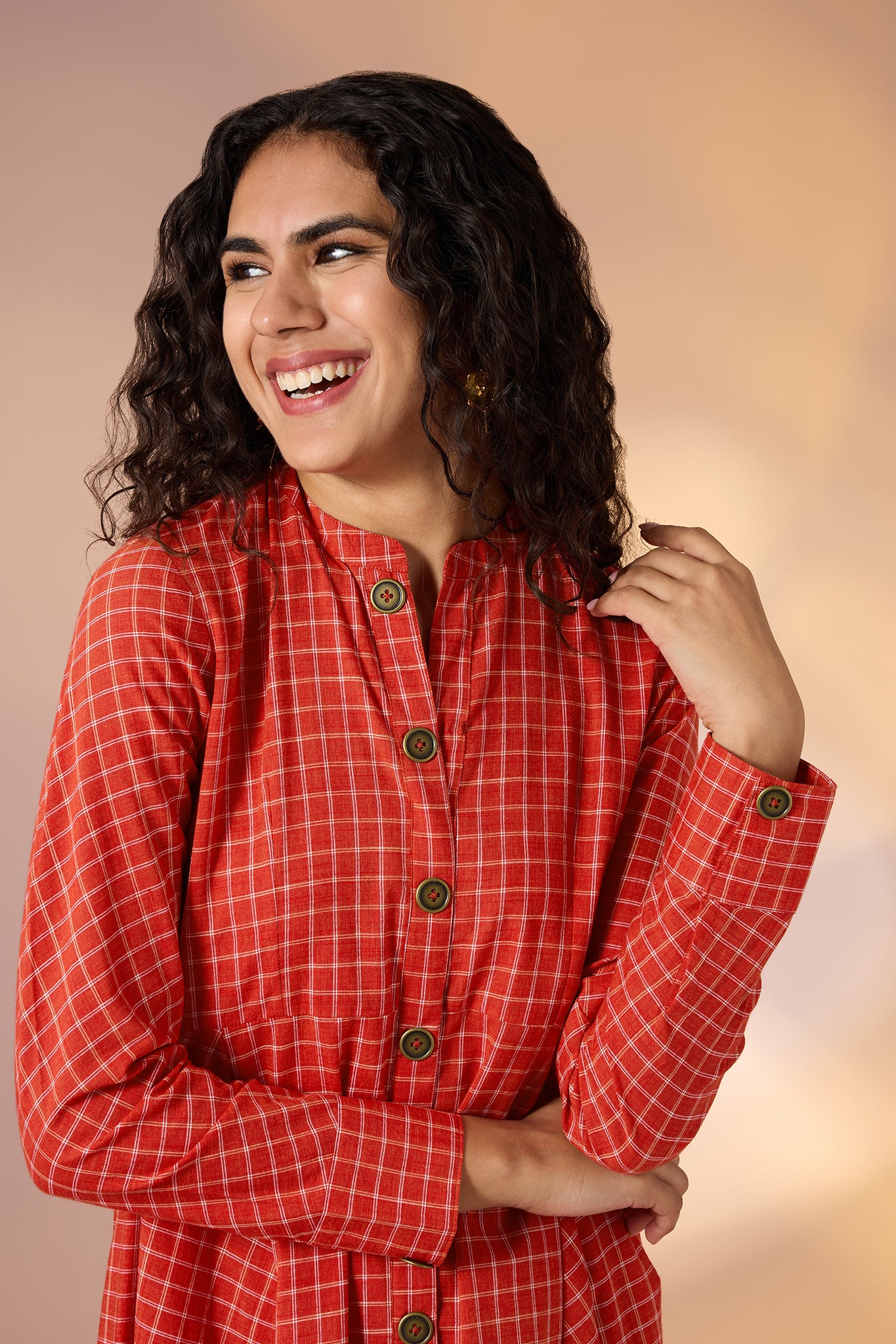 Ash Rose Cotton Ikat Box Pleat Button Down Shirt Dress