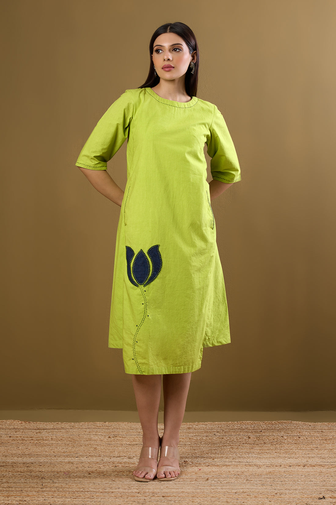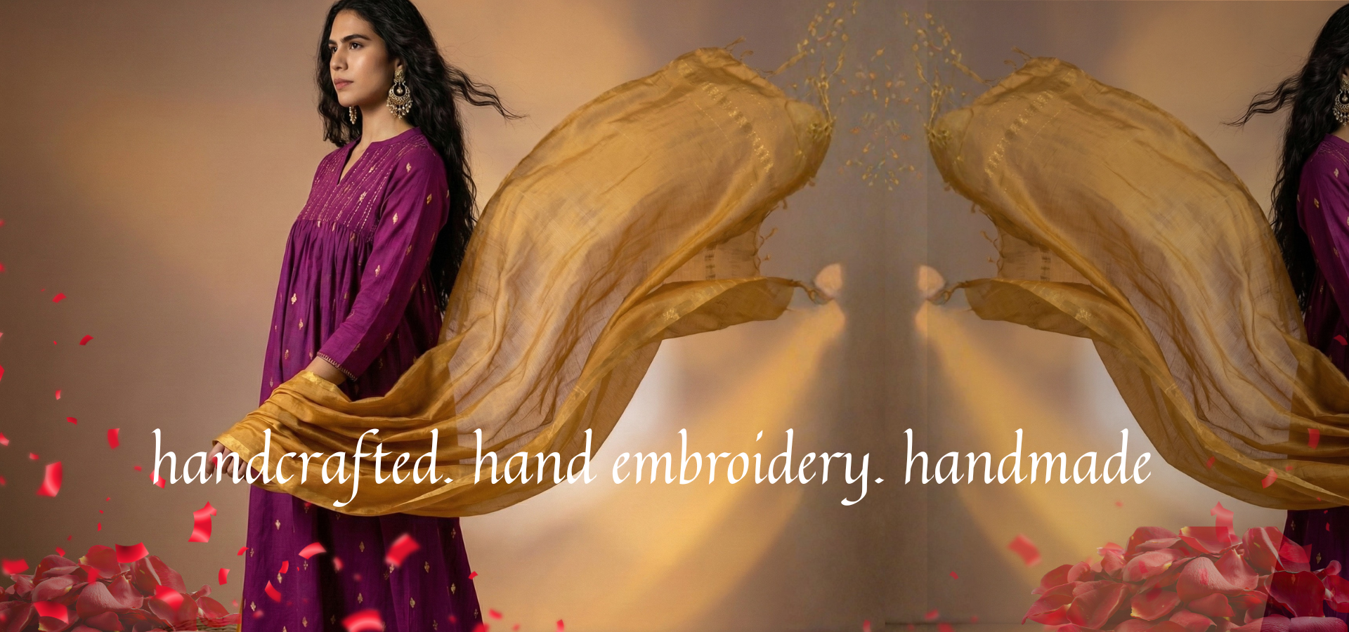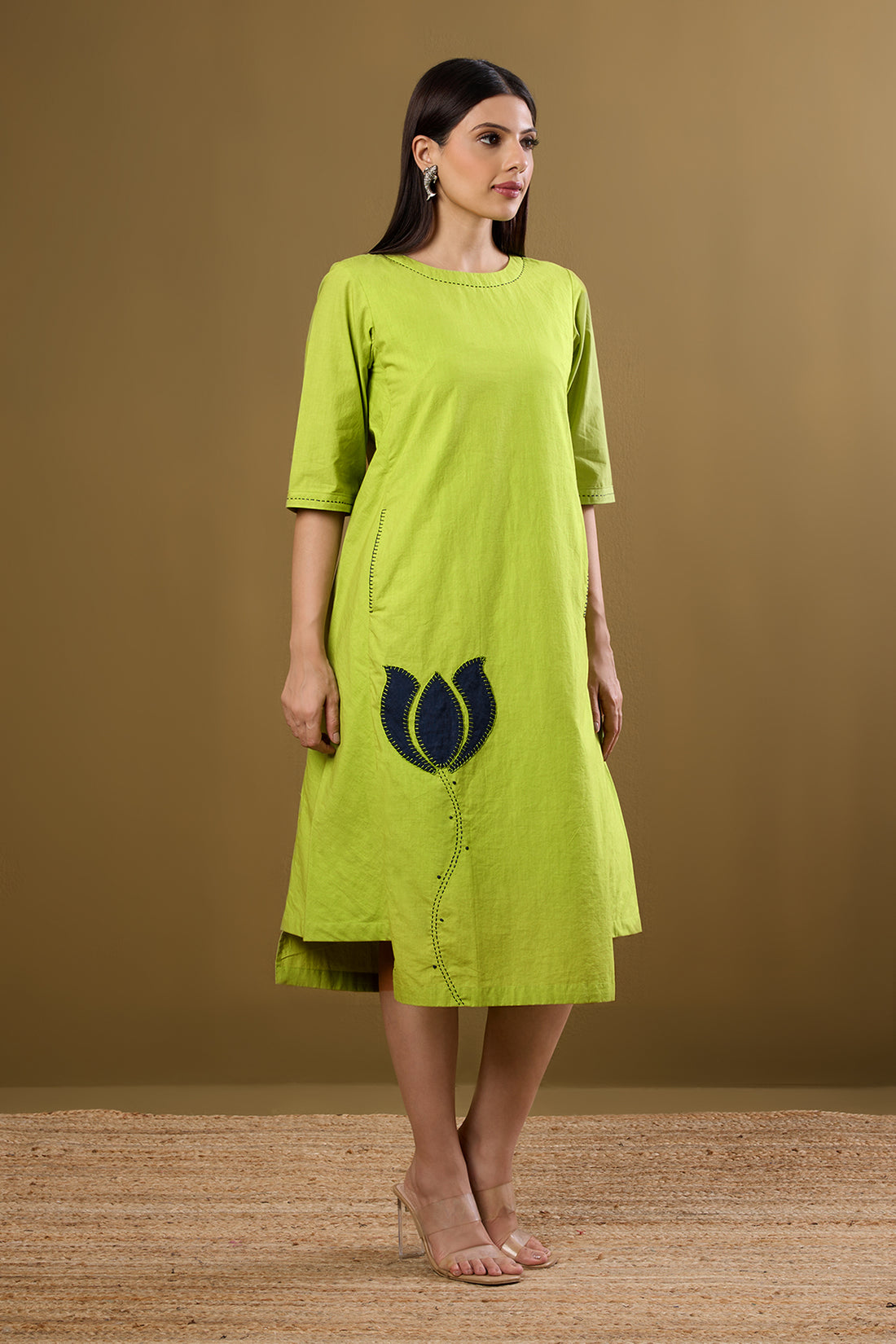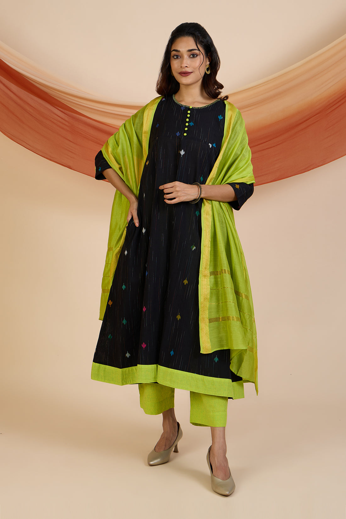 Verdant Rose Silk Slub Luxe Kurta with Butti Embroidery