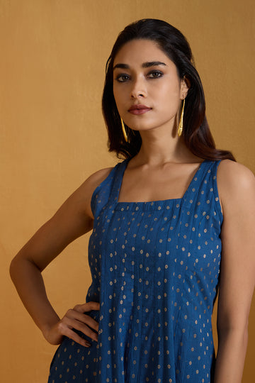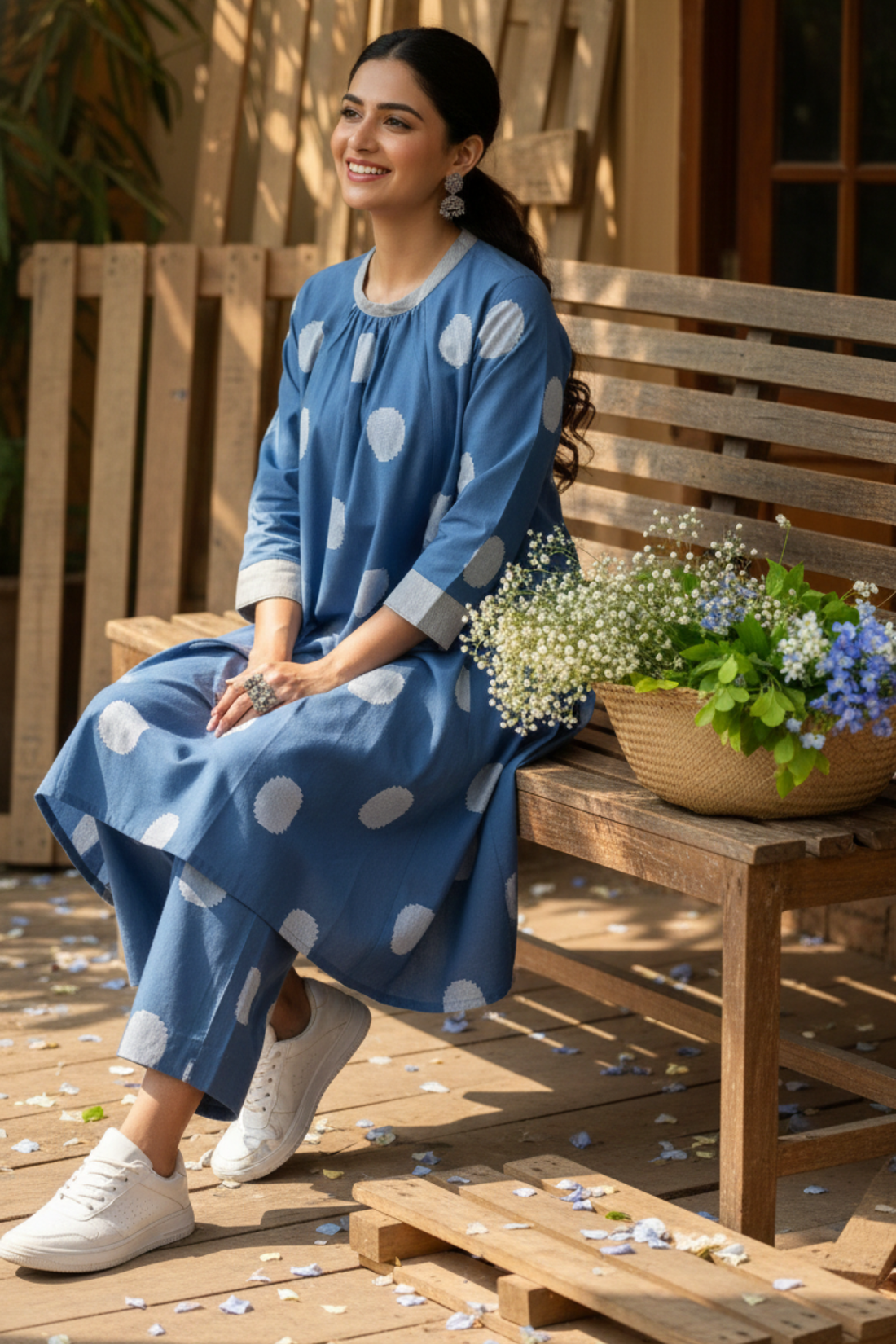 Co-ord Set Sky Dots Cotton Crew Neck Gather Dress & Pants