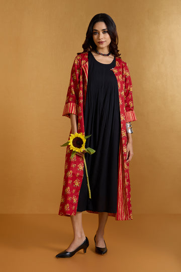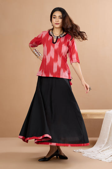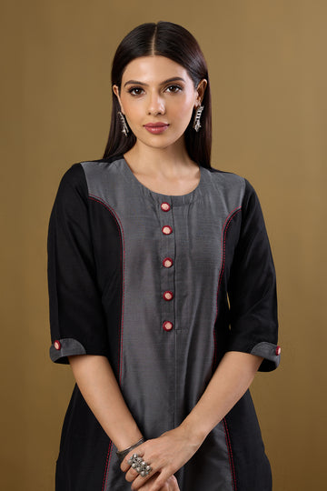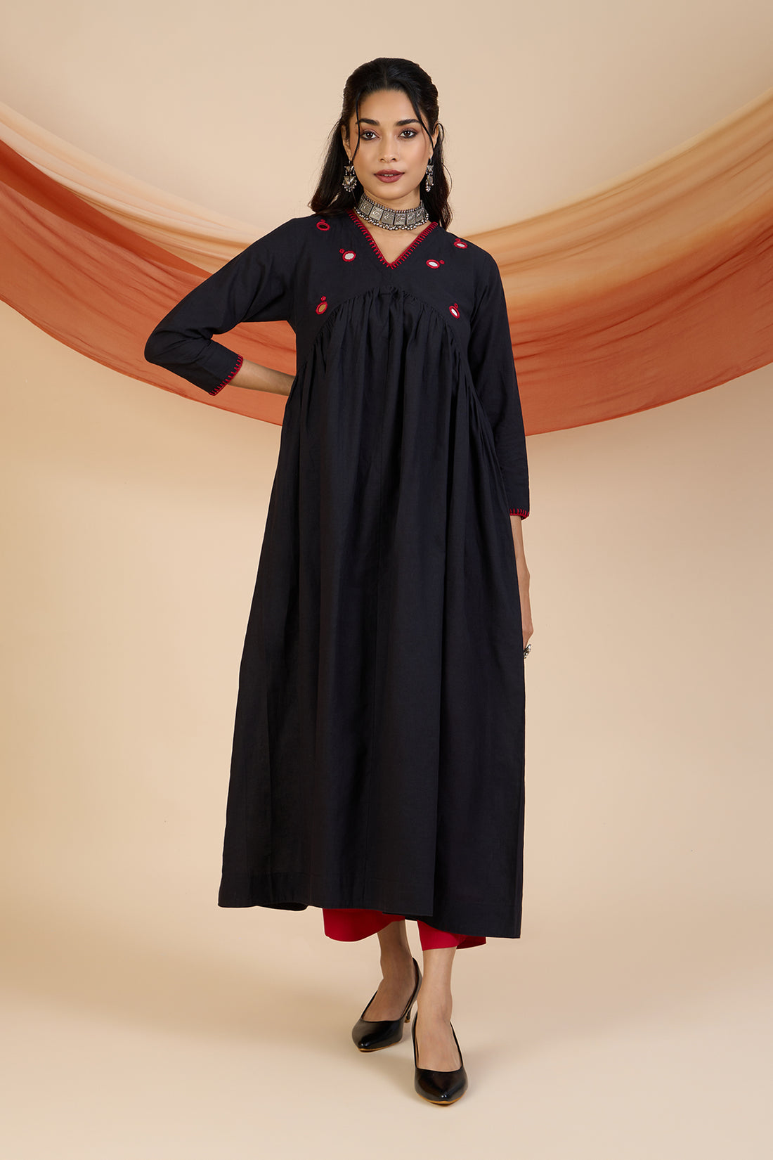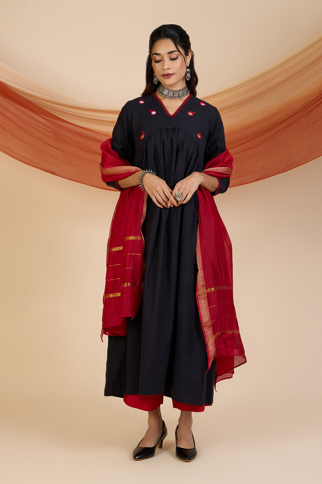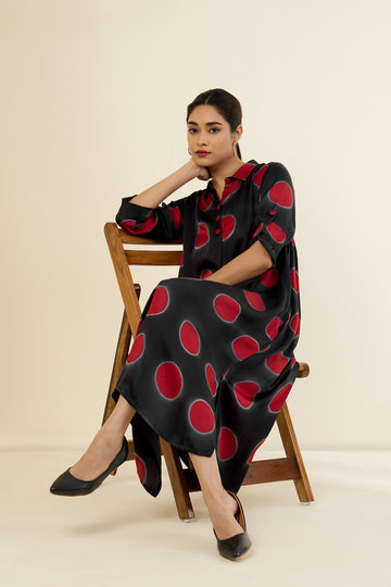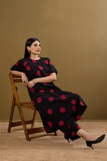 Onyx Polka Cotton Kurta with Red Polka Applique