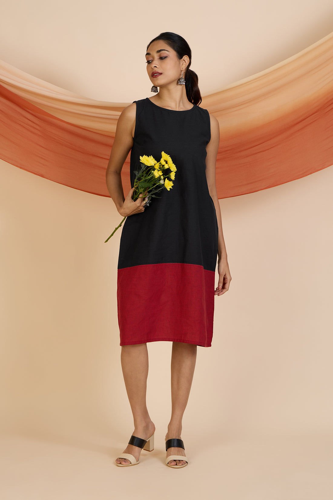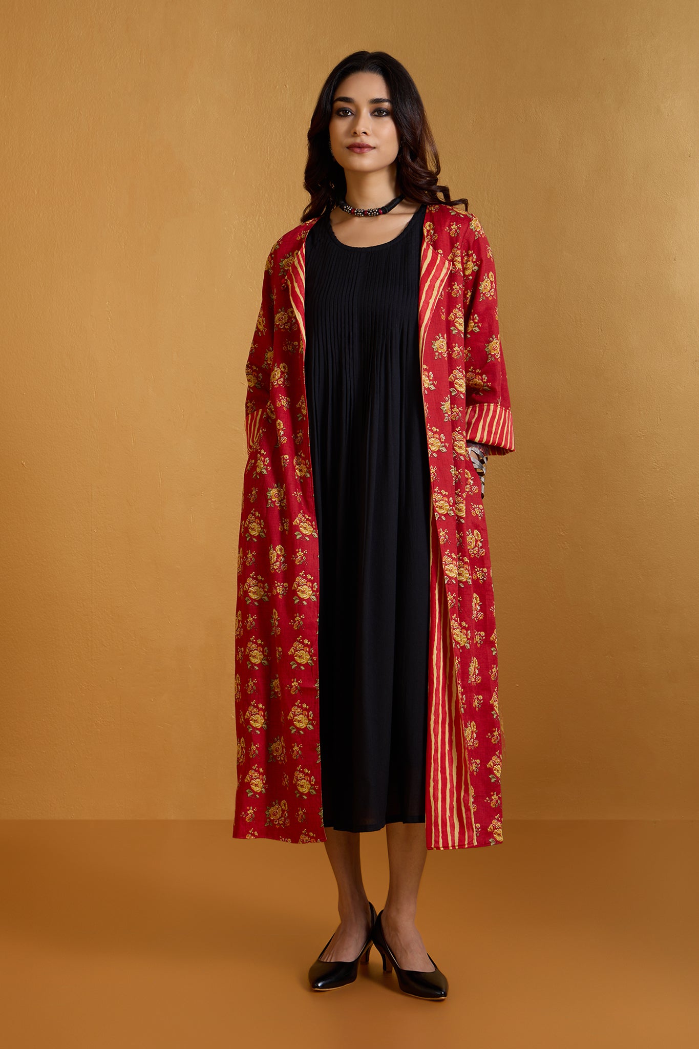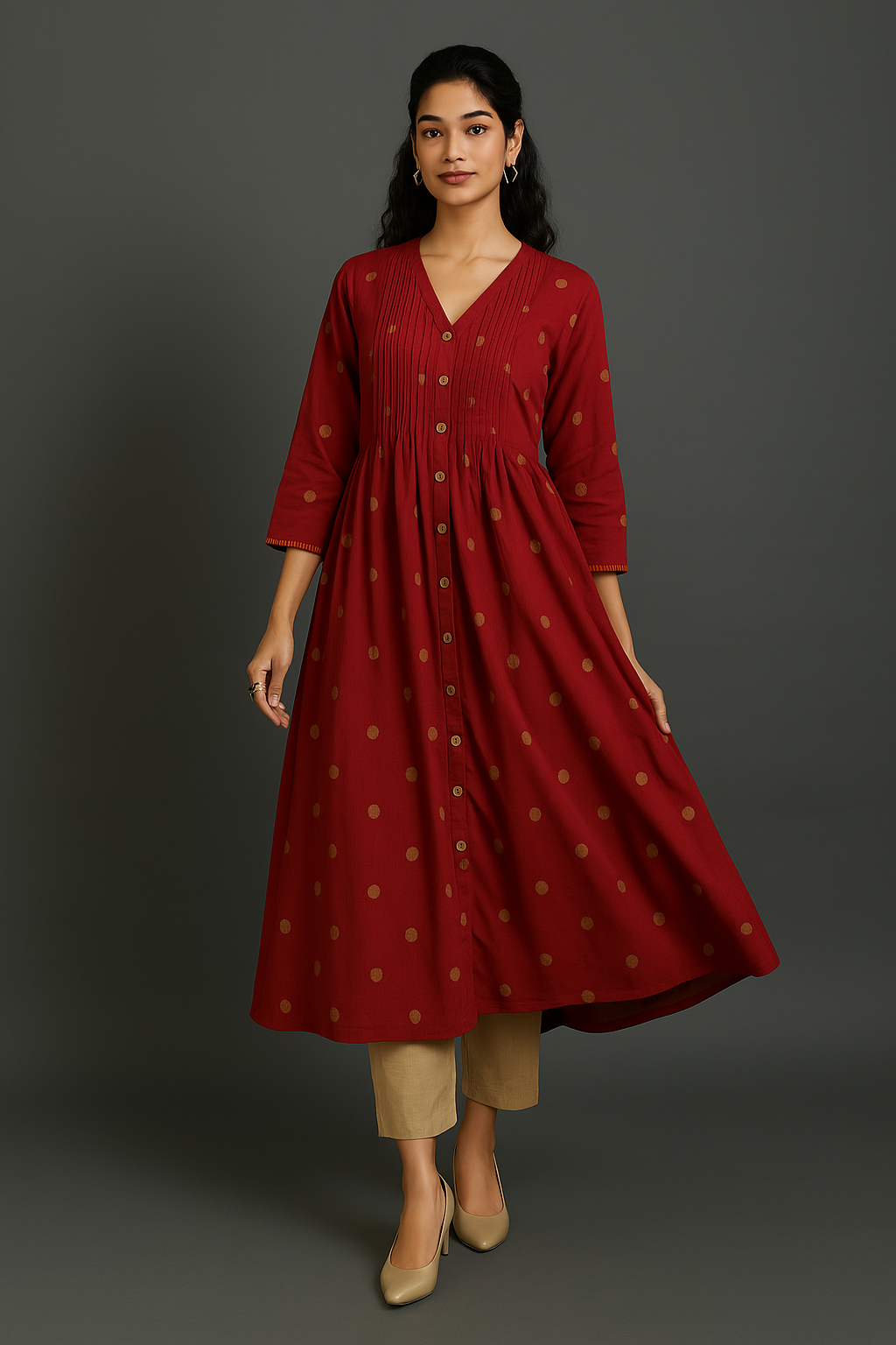 Onyx Polka Cotton Kurta with Red Polka Applique