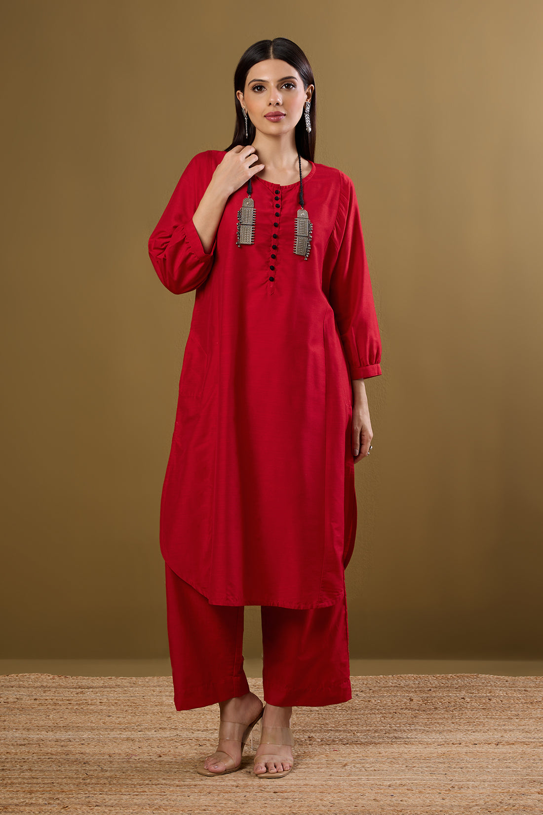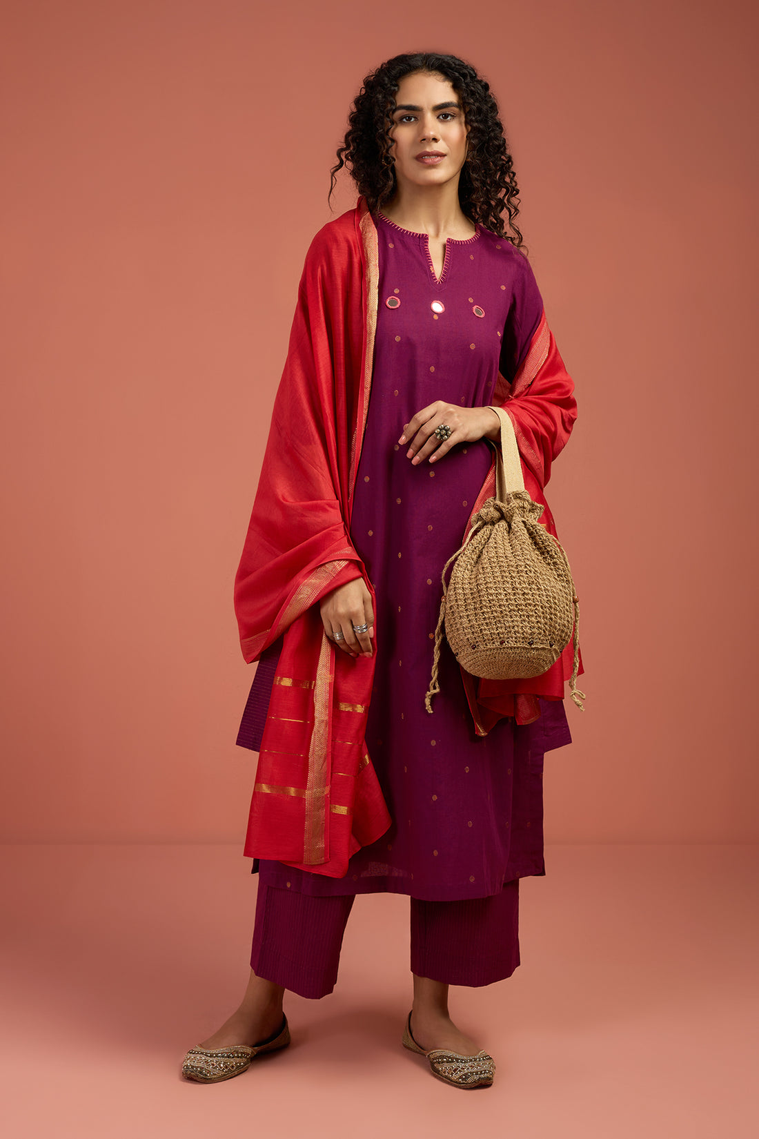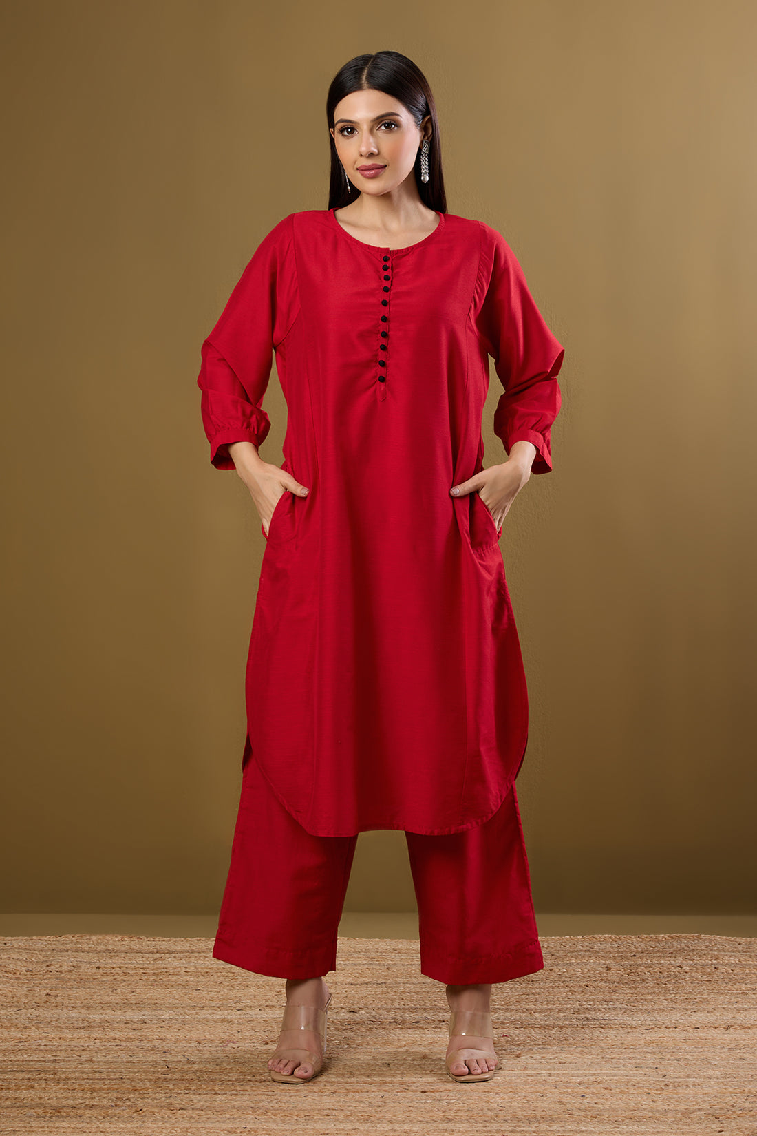 Coord Set Garnet Gilt Long Slit Kurta with Pants (set of 2)