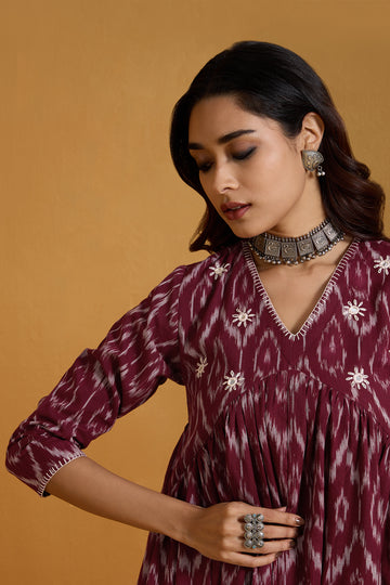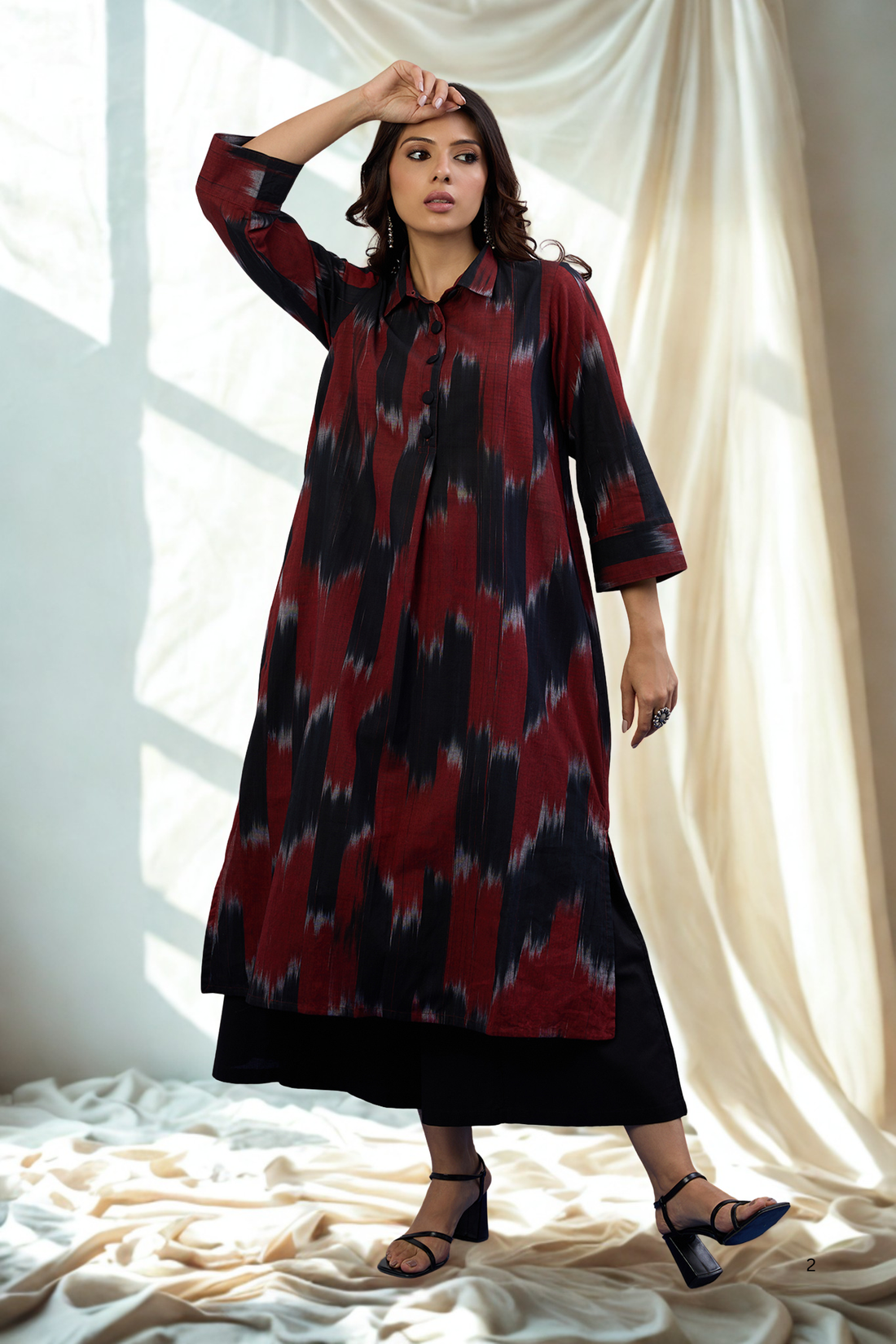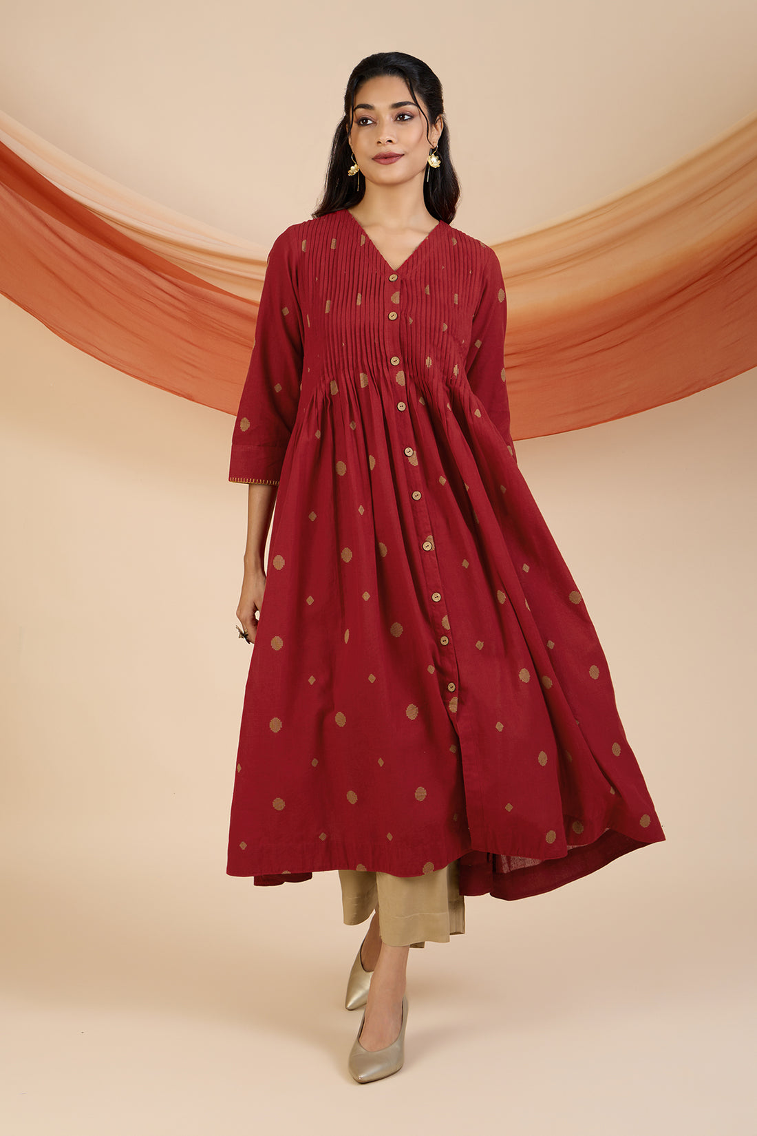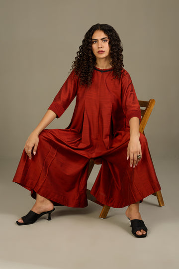 Coord Set Garnet Gilt Long Slit Kurta with Pants (set of 2)