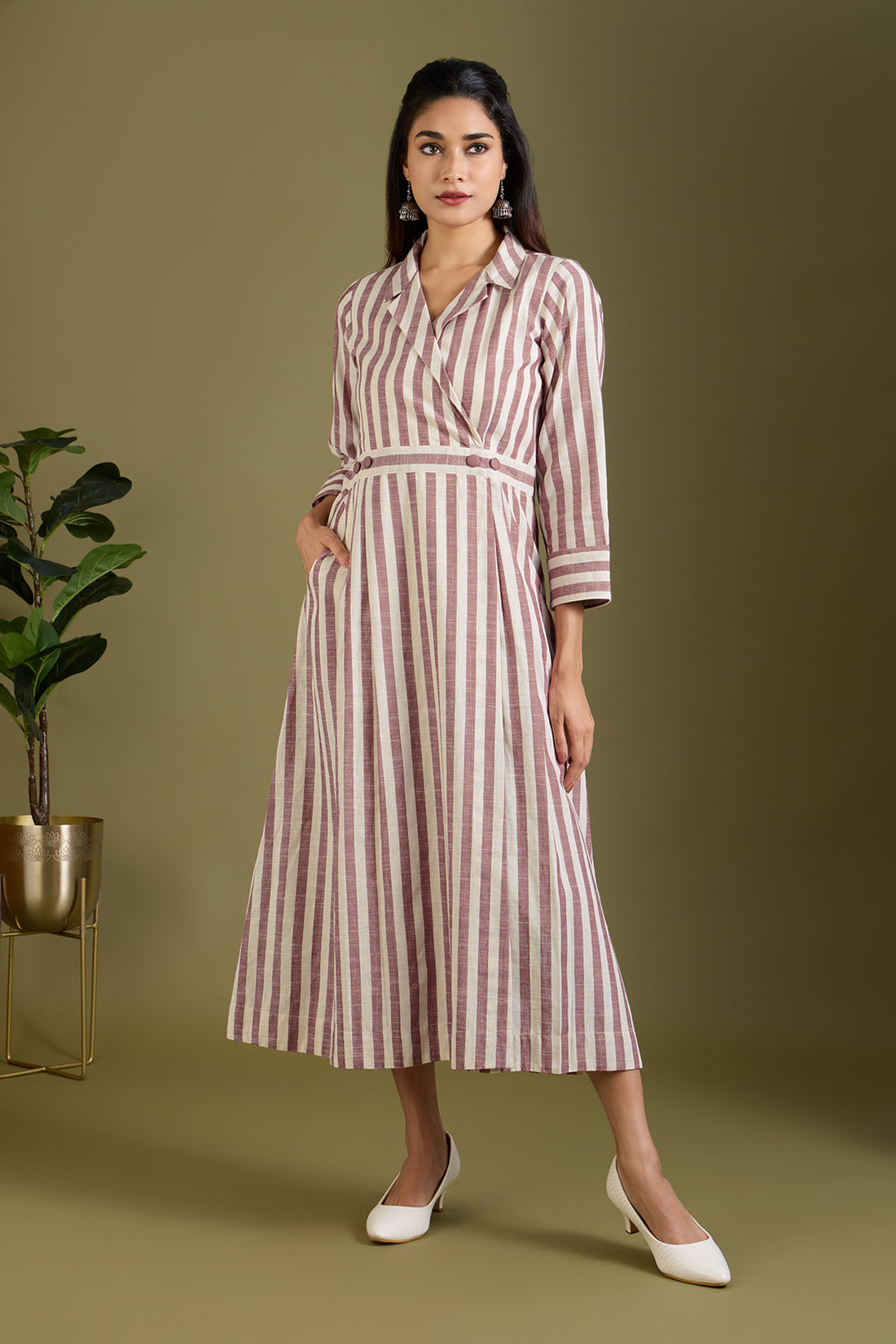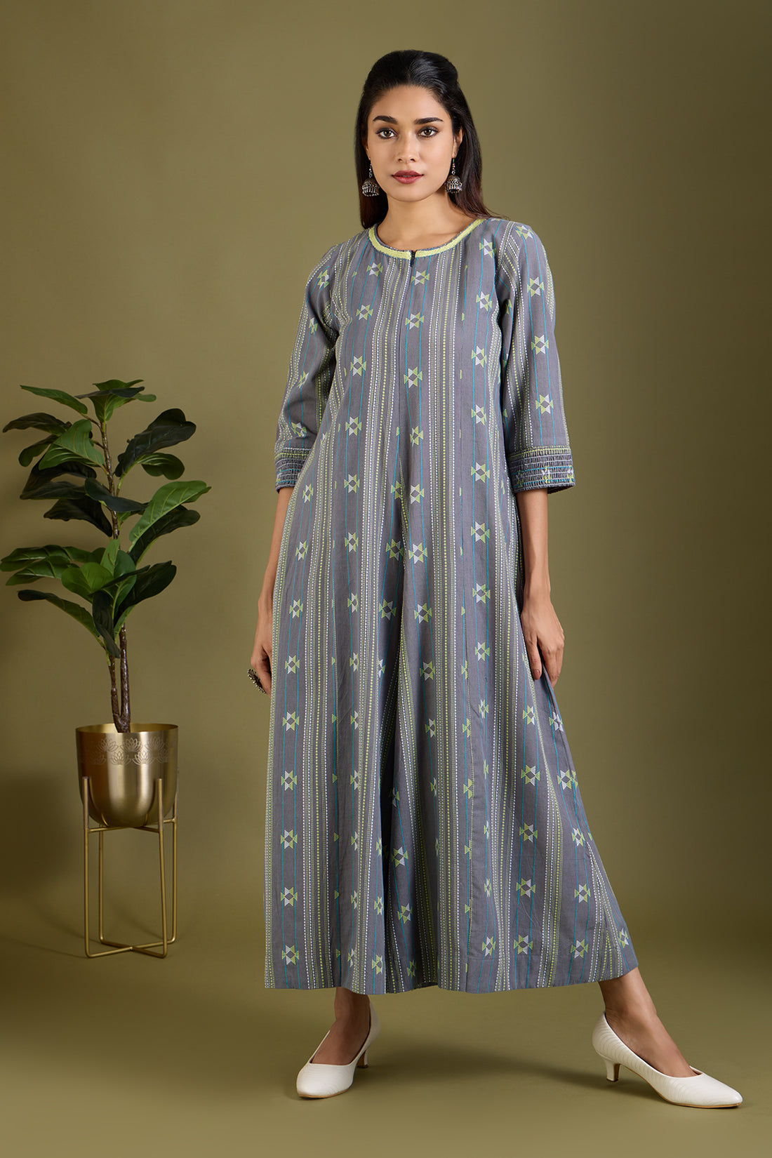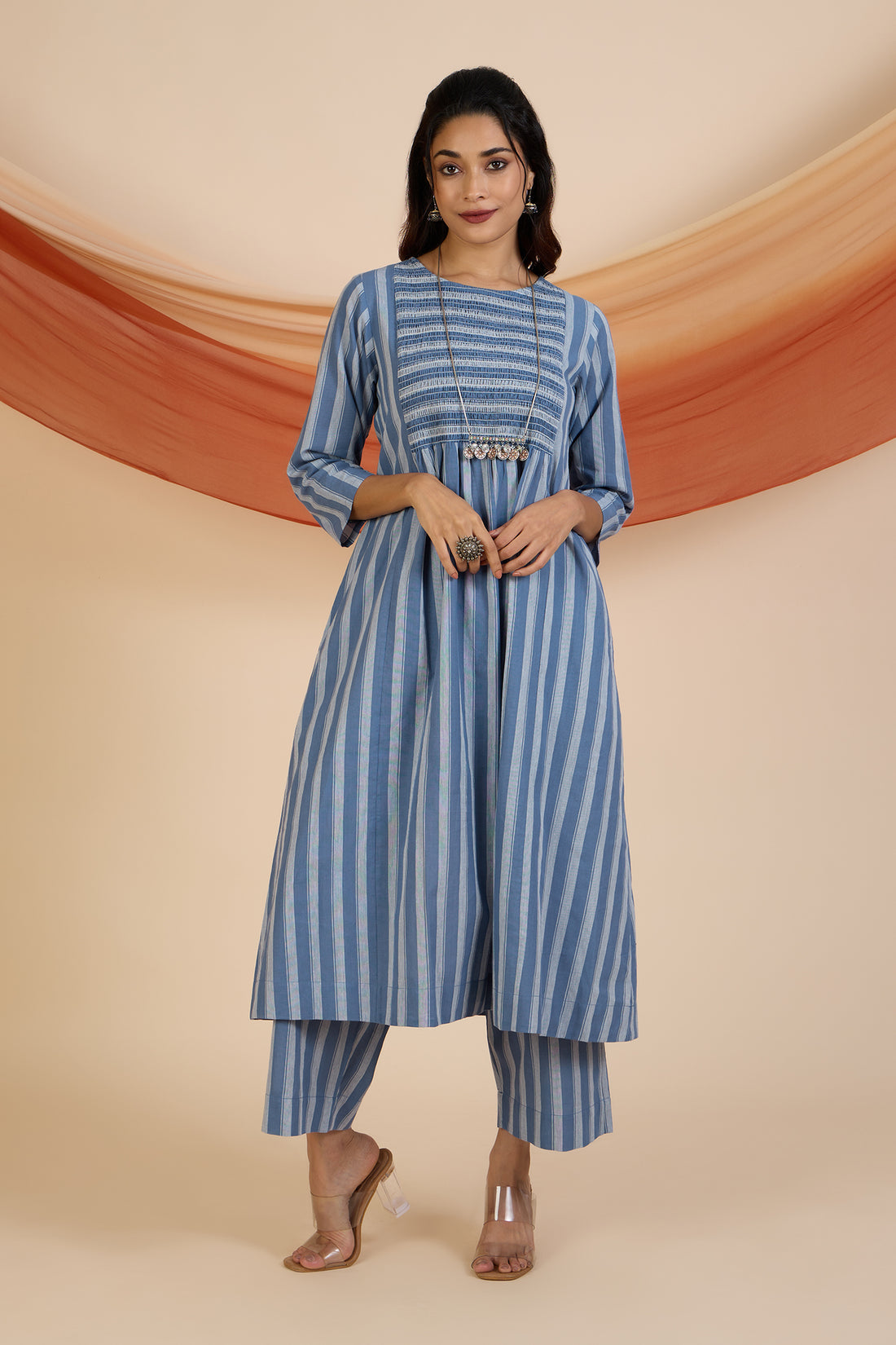 Lavender Stride Cotton Square Neck Panelled Long Kurta