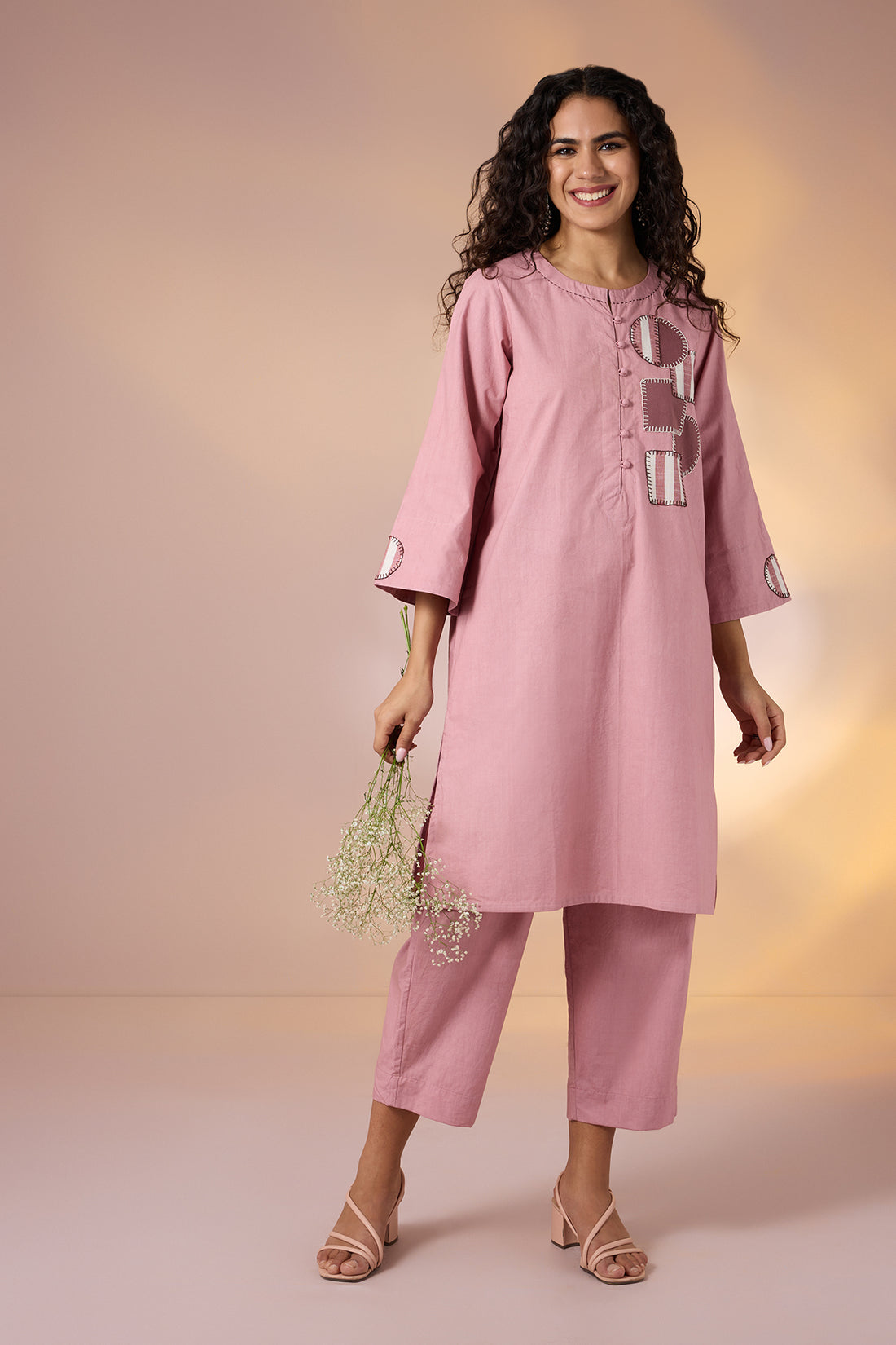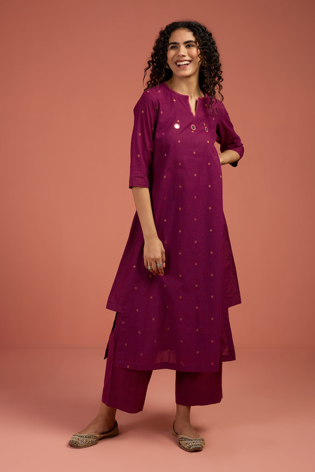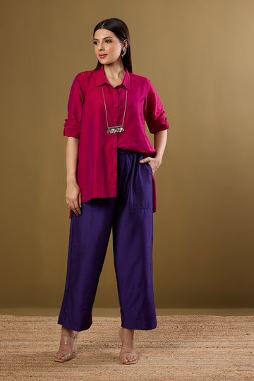 Co-ord Set Kurta and Pants - Violet Orchid Glow Cotton Collar Box Pleat Kurta & Pants