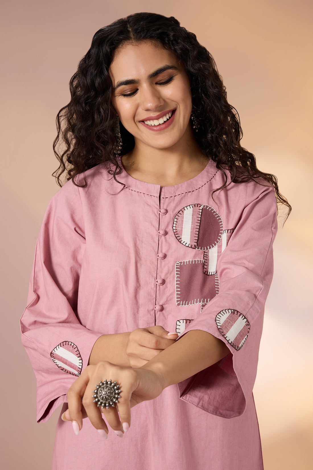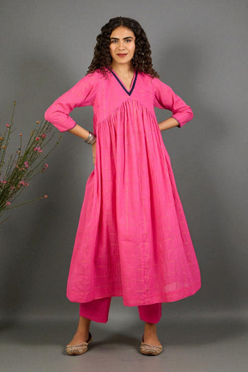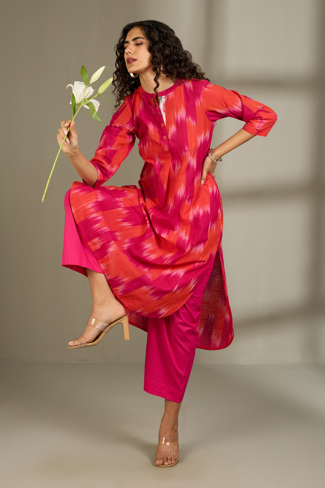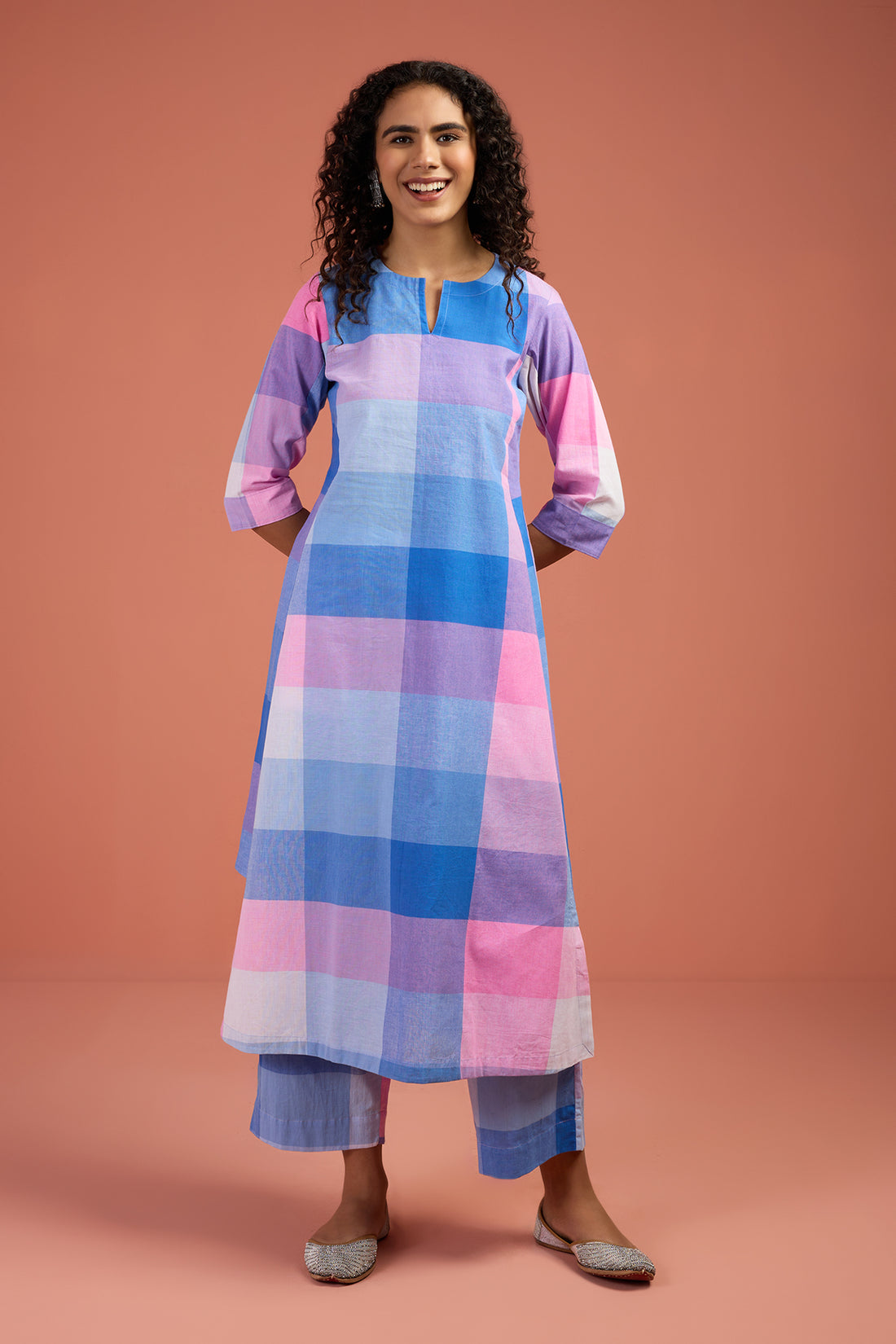 Co-ord Set Kurta and Pants - Violet Orchid Glow Cotton Collar Box Pleat Kurta & Pants