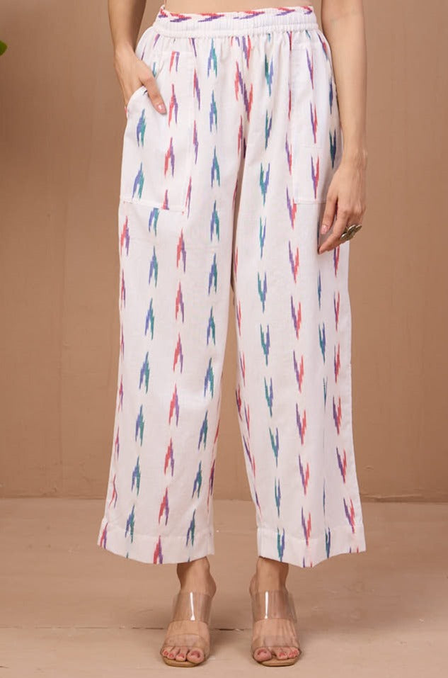 comfort fit cotton pants - white multi ikat