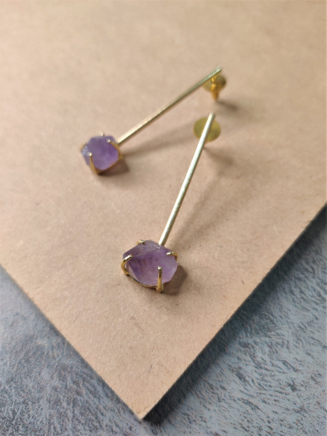 jewelry - berserk - Gold Plated Amethyst Stick Studs