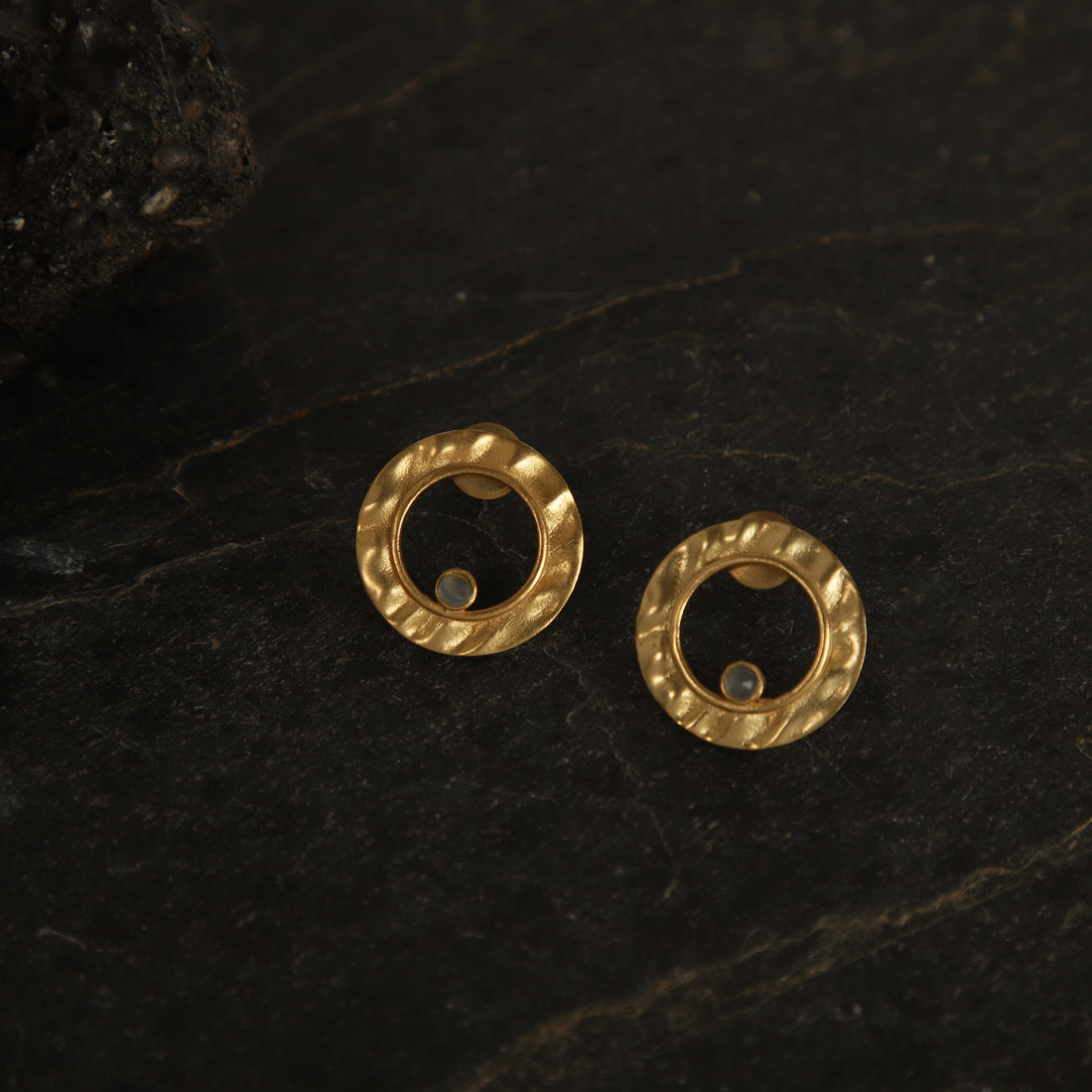 jewelry - berserk - Gold Plated moonstone Ring Studs