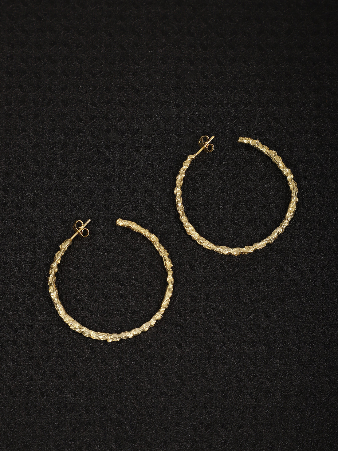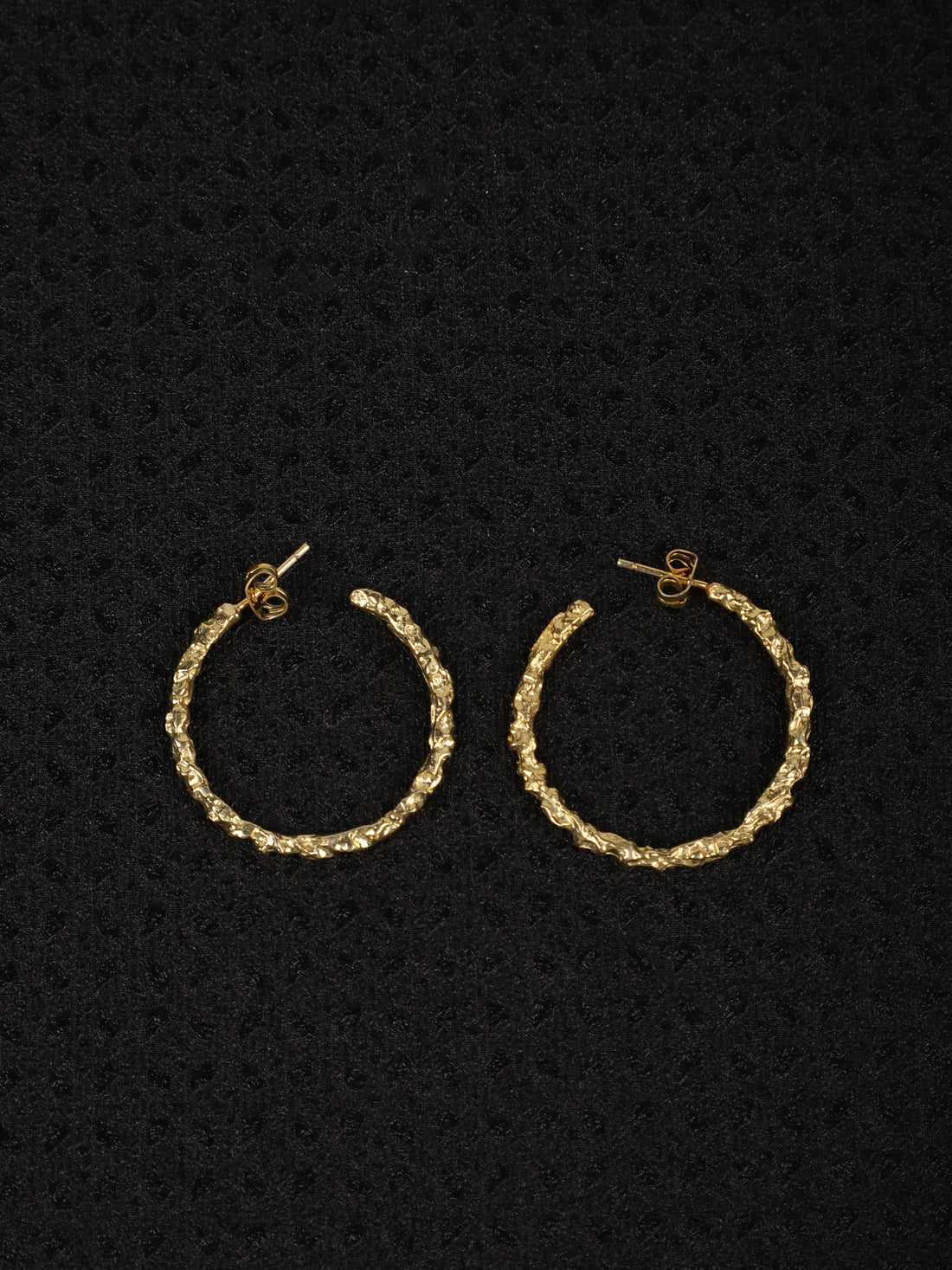 jewelry - berserk - Gold Plated Textured Big Hoops