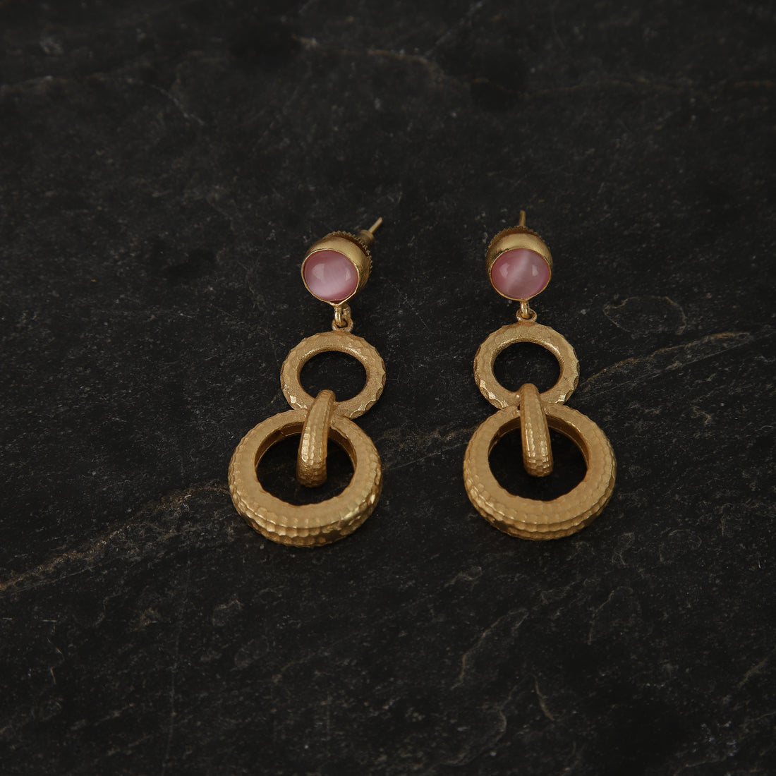 jewelry - berserk - Gold Plated Rose Quartz Double Loop Danglers
