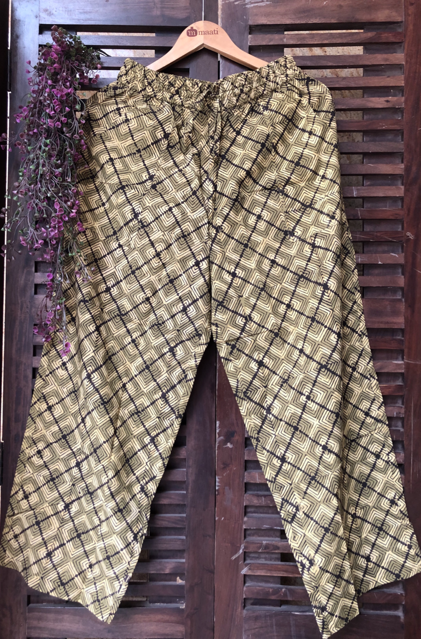 elasticated tie-up plain cotton hand block printed pants with pockets, perfect coordinate for all clothing!...