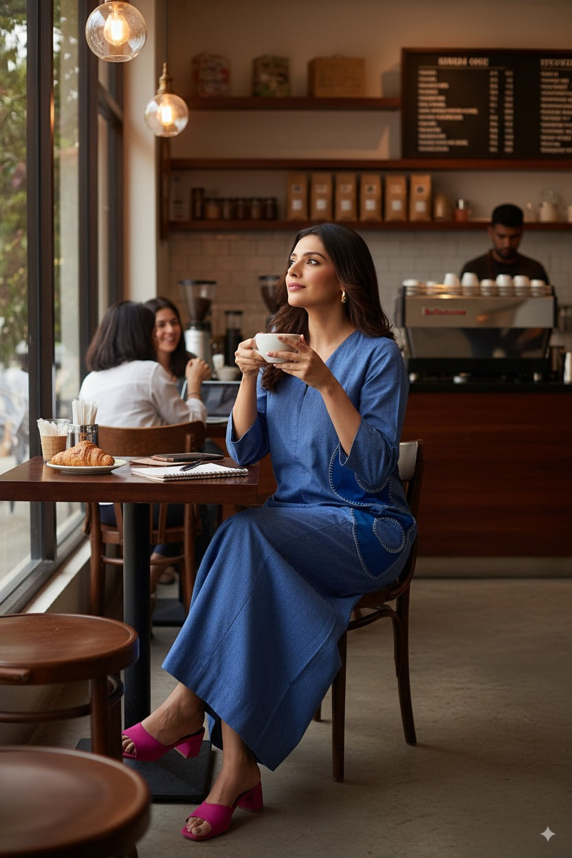 Copper Abyss Long Pintuck Yoke Kurta with Slit