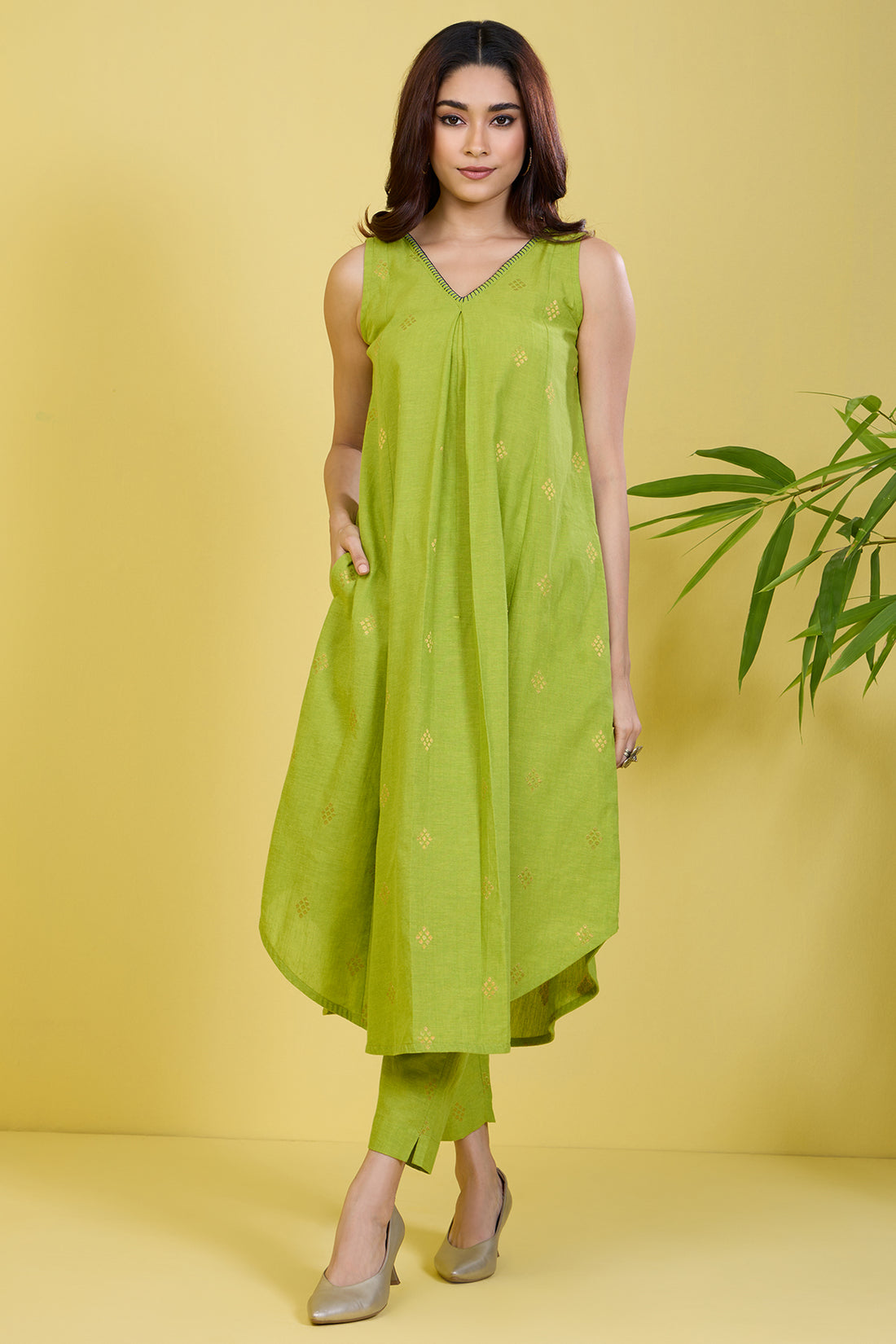 sleeveless lime green co-ord set with box pleat gilded citrus
