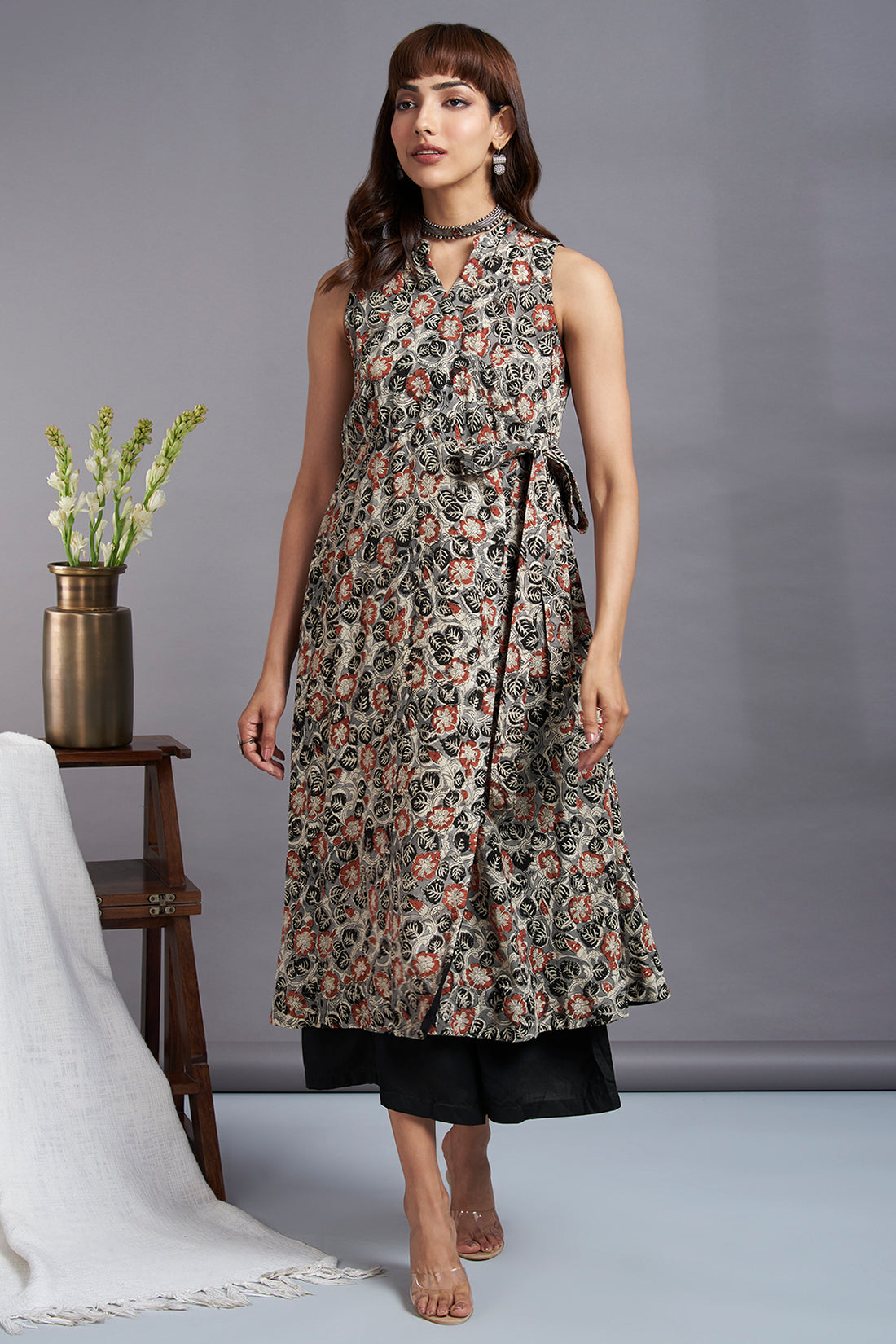 kashish symphony - modal kalamkari sleeveless tie-up angrakha