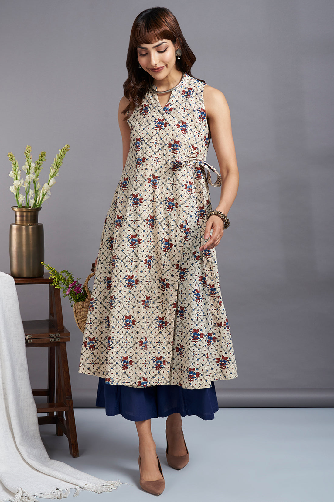 ivory fragrance - ajrakh allure sleeveless tie-up angrakha
