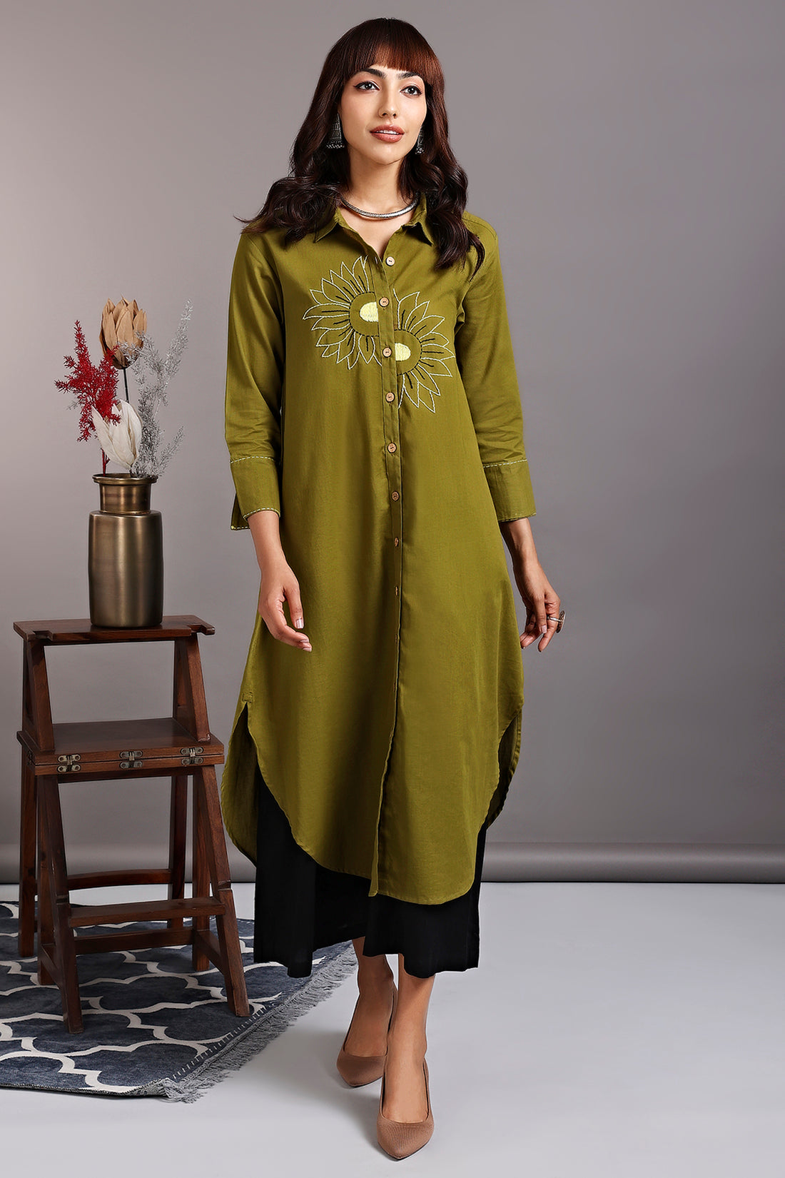 Elevate your style with our stunning button down kurta with side panels in a-line...
