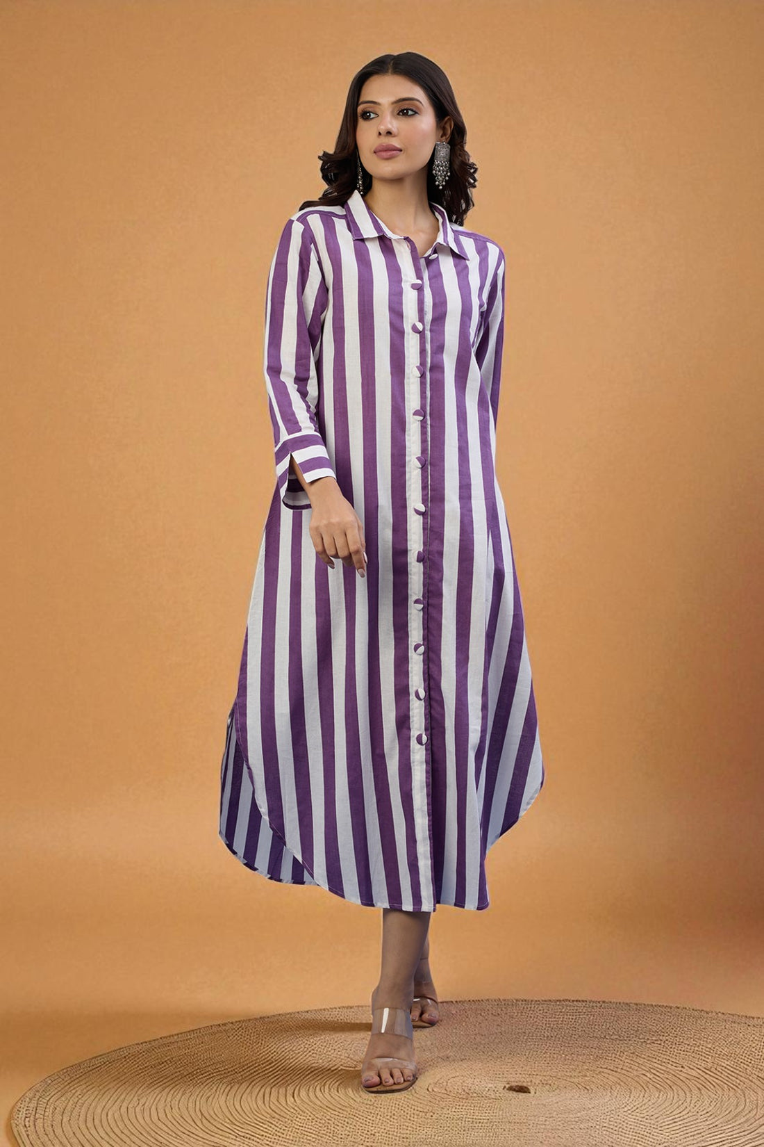 Co-ord Set Kurta and Pants - Violet Orchid Glow Cotton Collar Box Pleat Kurta & Pants