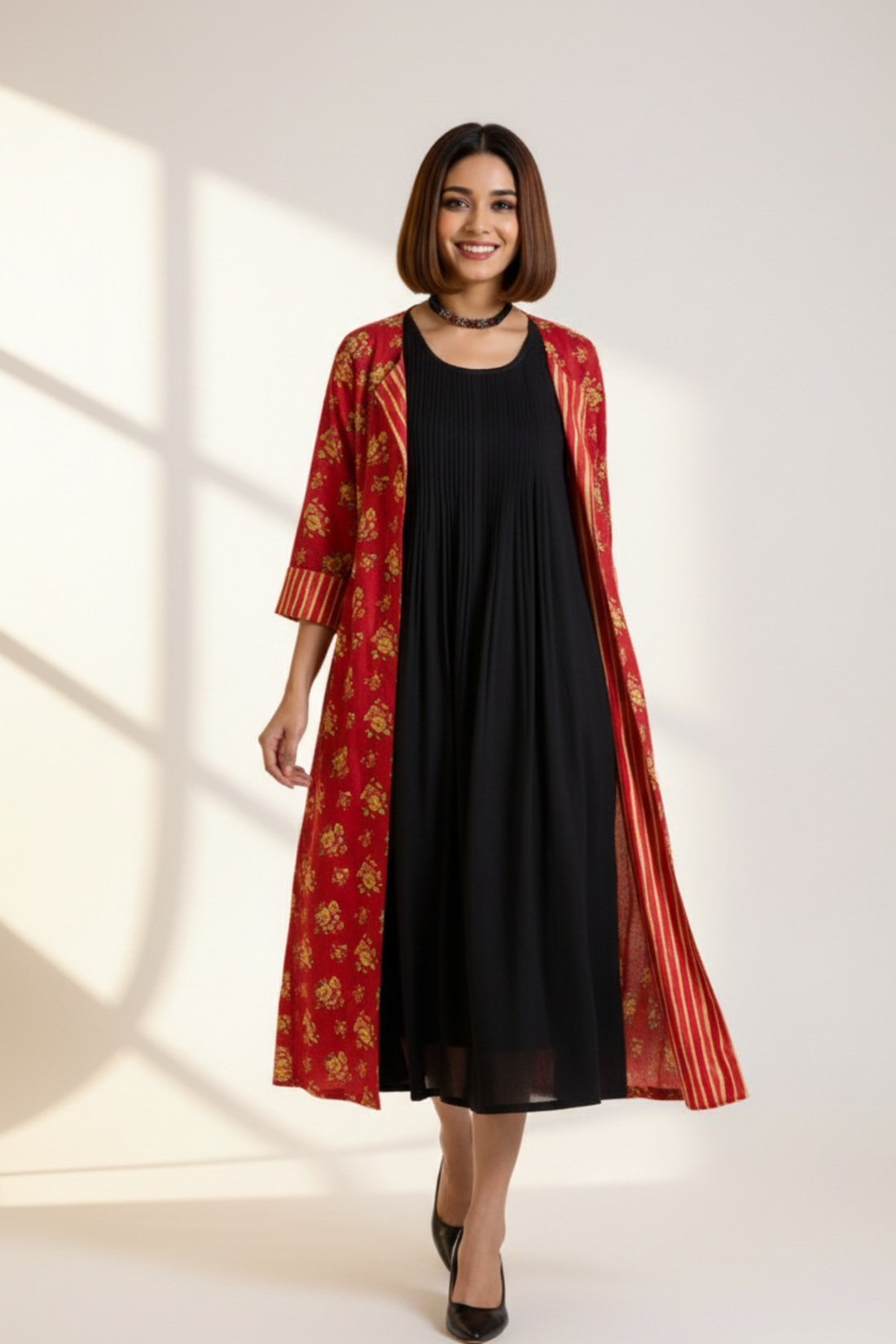 The Maati signature mughal choga is back with a modern look! The beautiful, reversible overlay...