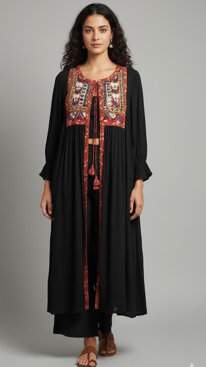 vintage kutchi yoke jacket - timeless ebony & many mirrors
