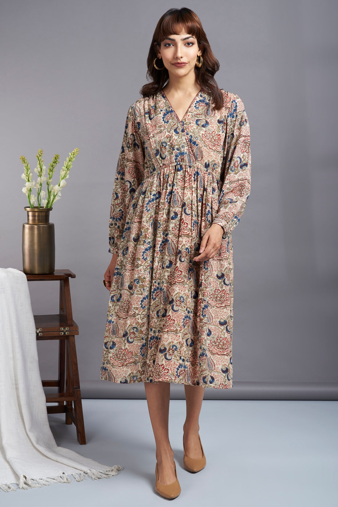 exotic botanic - kalamkari modal wrap dress with bucket stitch details
