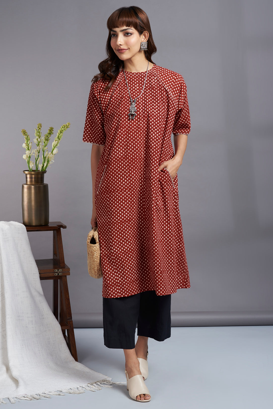 garnet moon - ajrakh asymmetrical hemline button down tunic