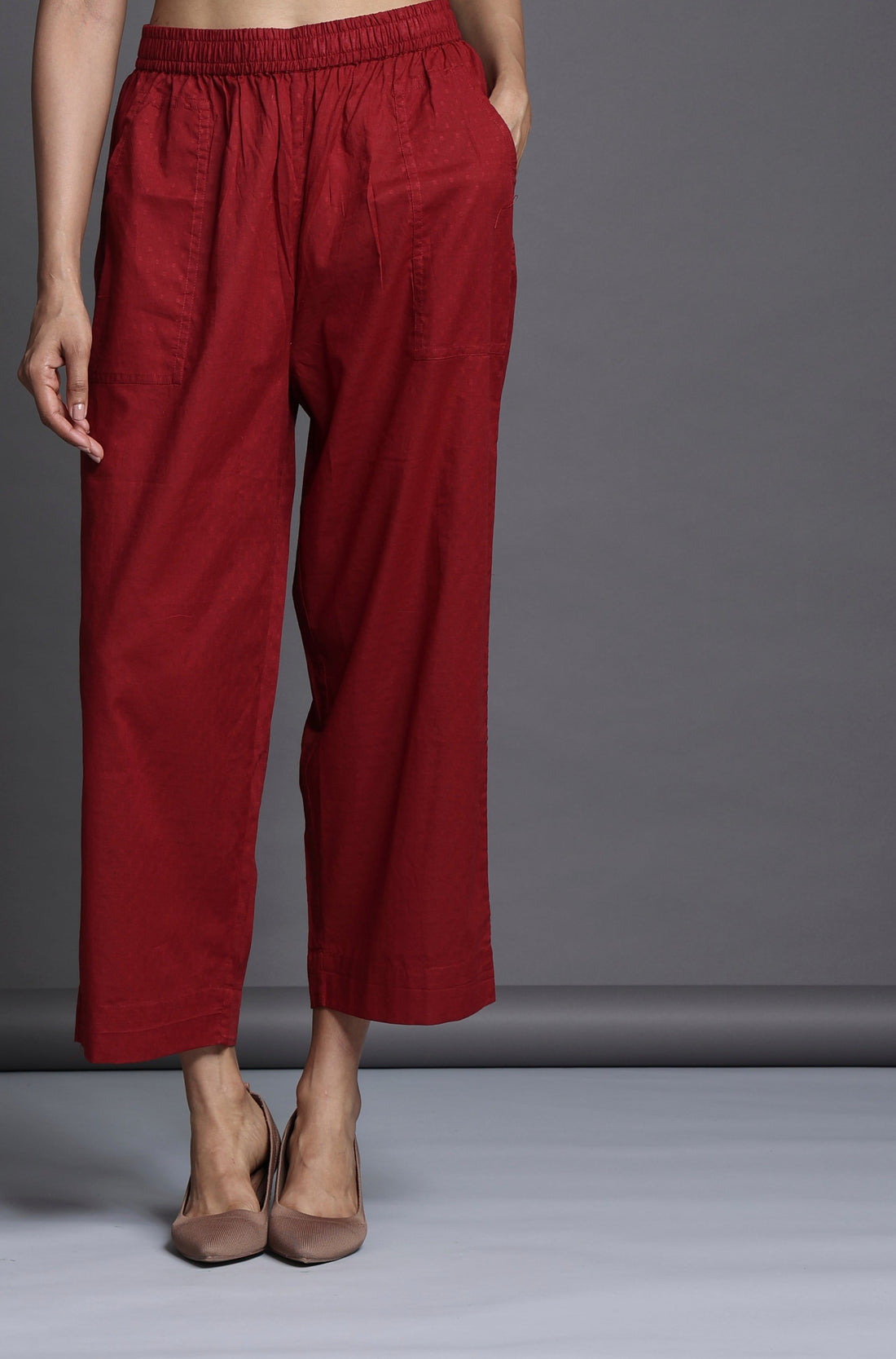 comfort fit cotton pants - maroon dots