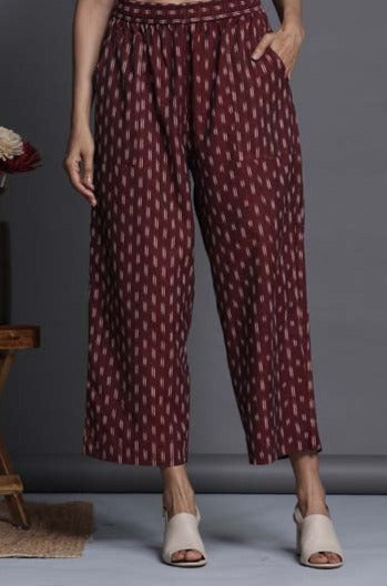 comfort fit cotton printed pants - maroon ikat