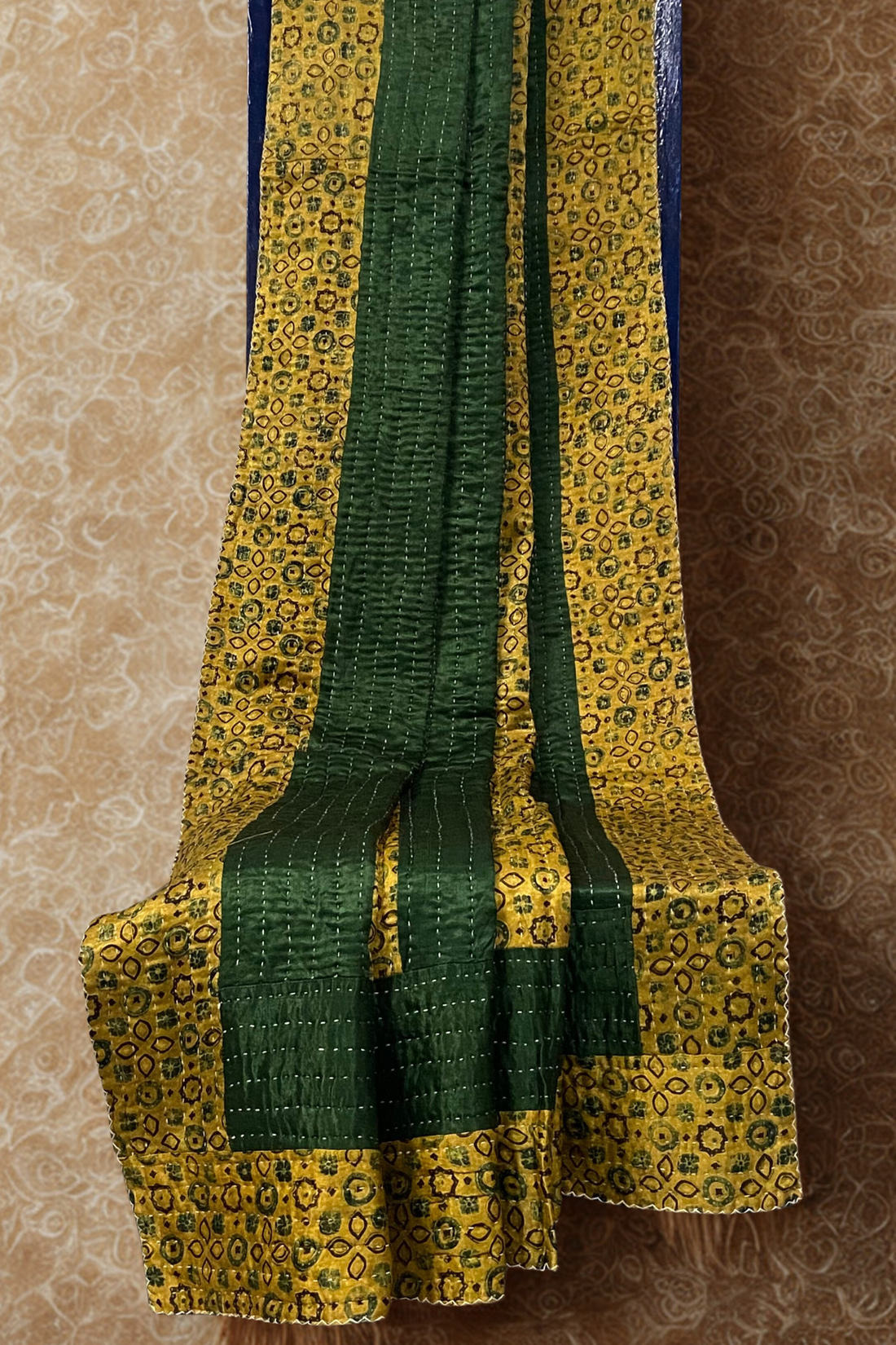 handcrafted reversible mashroo double quilt with filler - Vintage Green & Gold