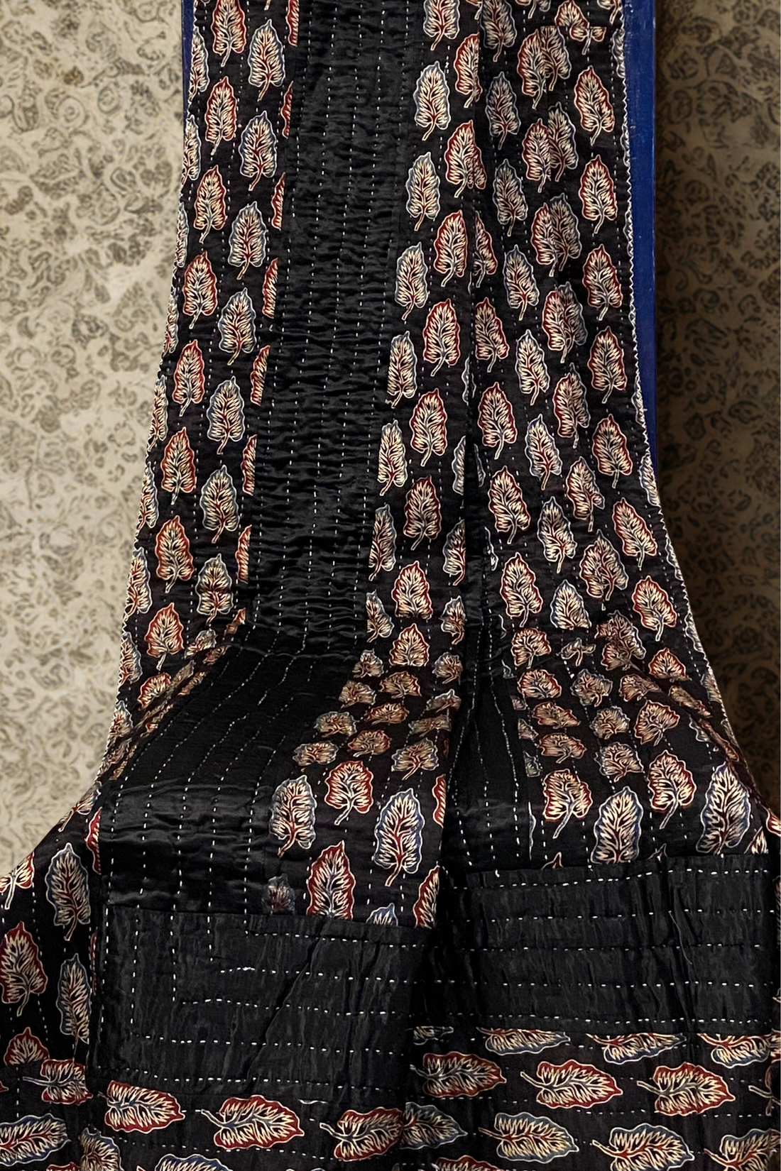 handcrafted reversible mashroo double quilt with filler - kohl & lotus leaf