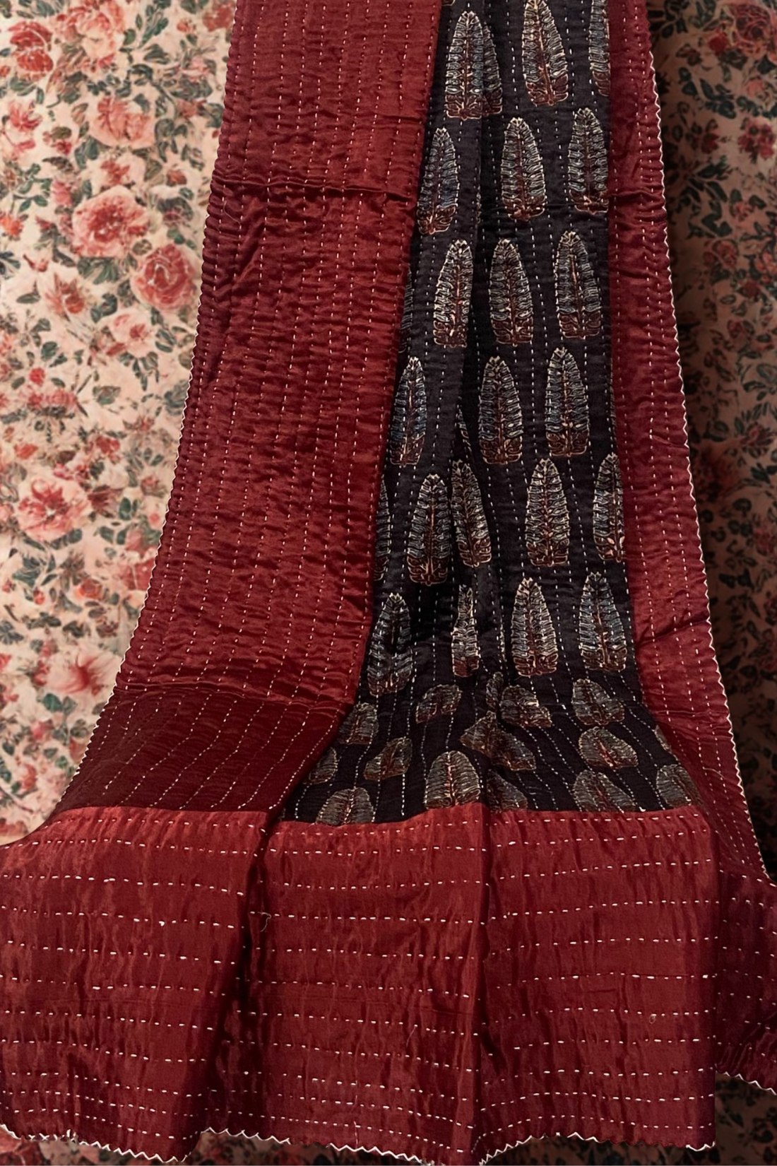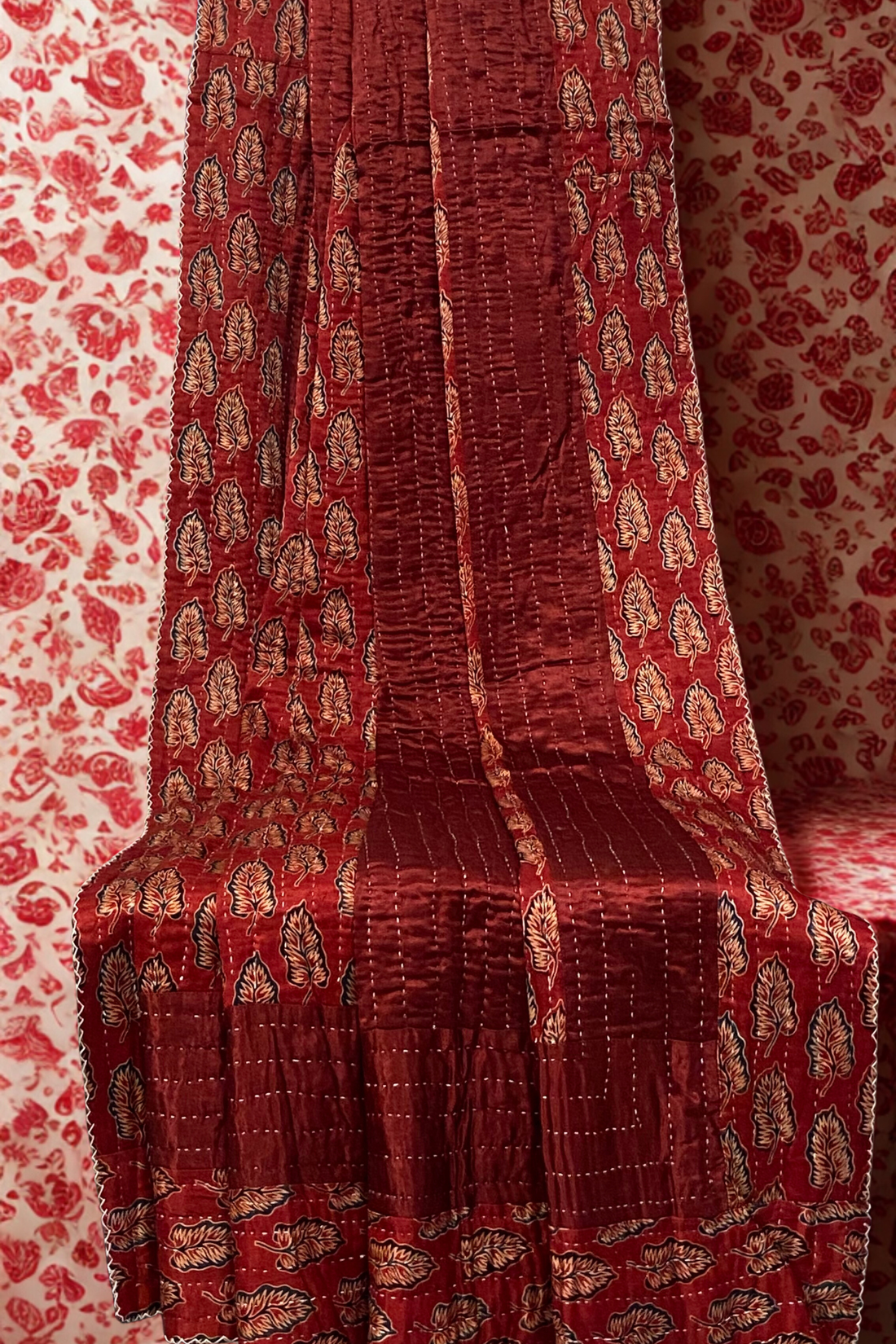 handcrafted reversible mashroo double quilt with filler - Persian Dawn & Madder