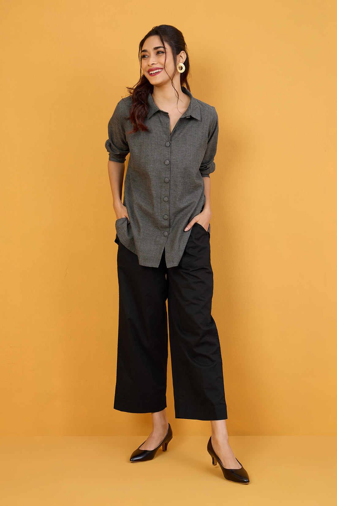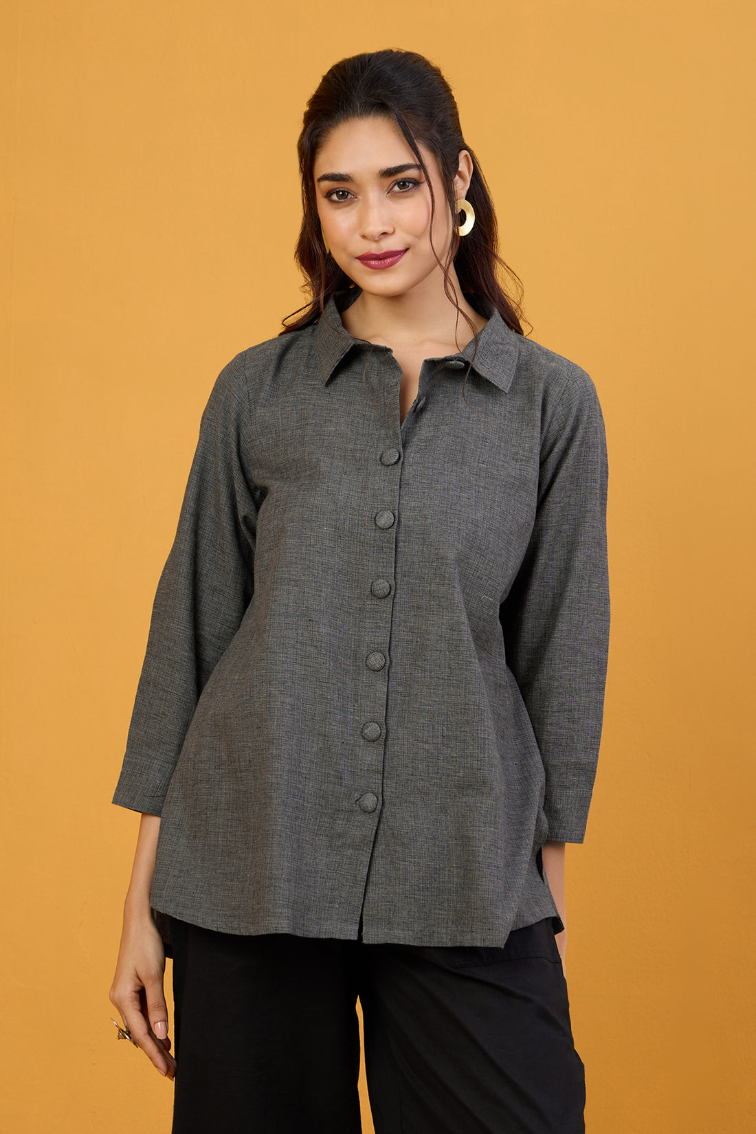 Noir Maze Handblock Printed Everyday Cotton Shirt