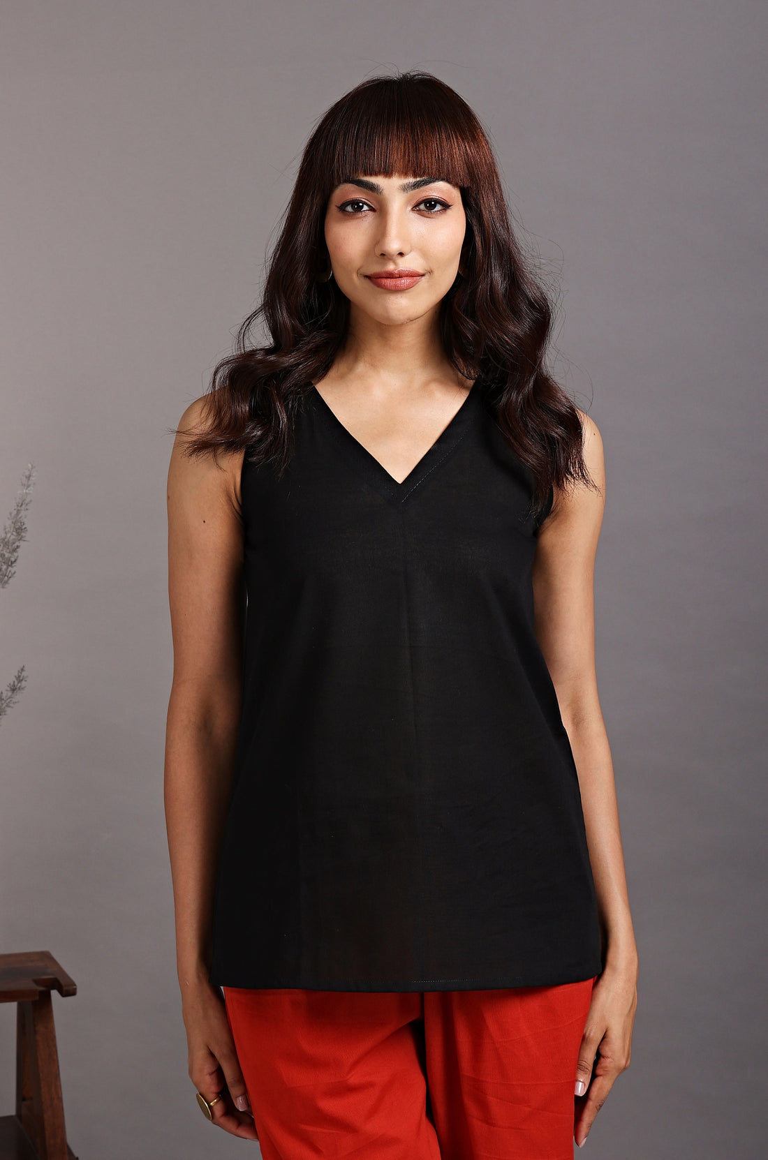 A classic sleeveless poplin top in hues of black to pair up with our...