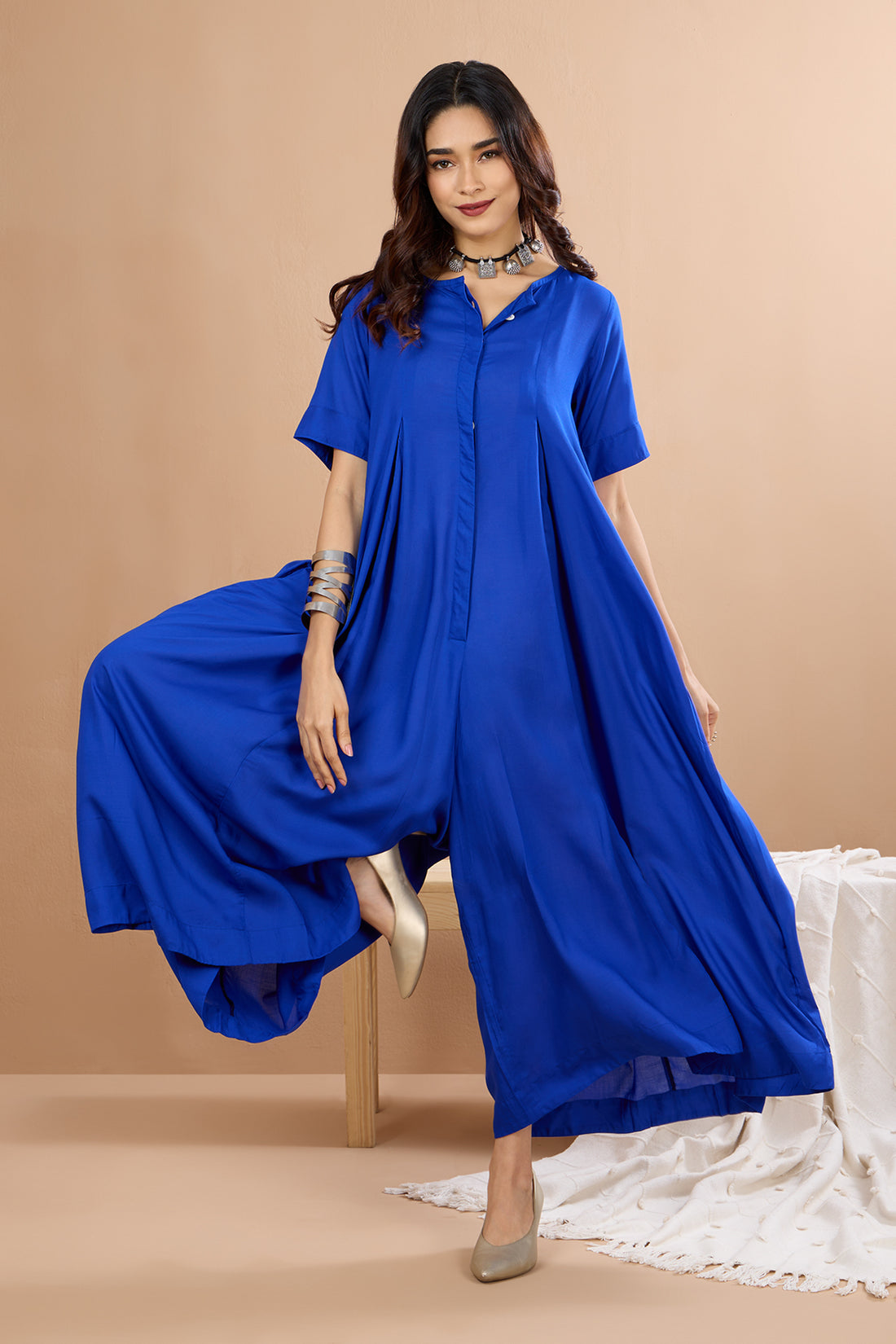 Button Down Jumpsuit With pockets Whispers of Sapphire Night