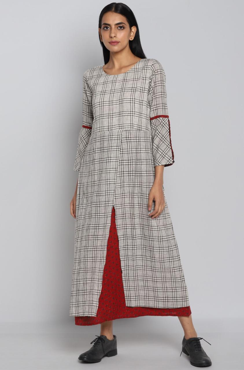 OVERLAP DRESS - MONOCHROME GRID & KALA COTTON