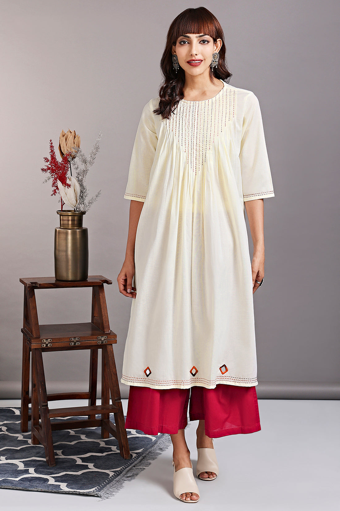 pleated neck & sleeves kurta with low slit - Autumnal Rust & Harmonious Songs