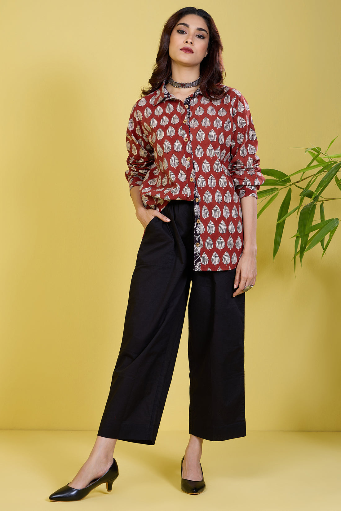 button down bagh red carmine leaves