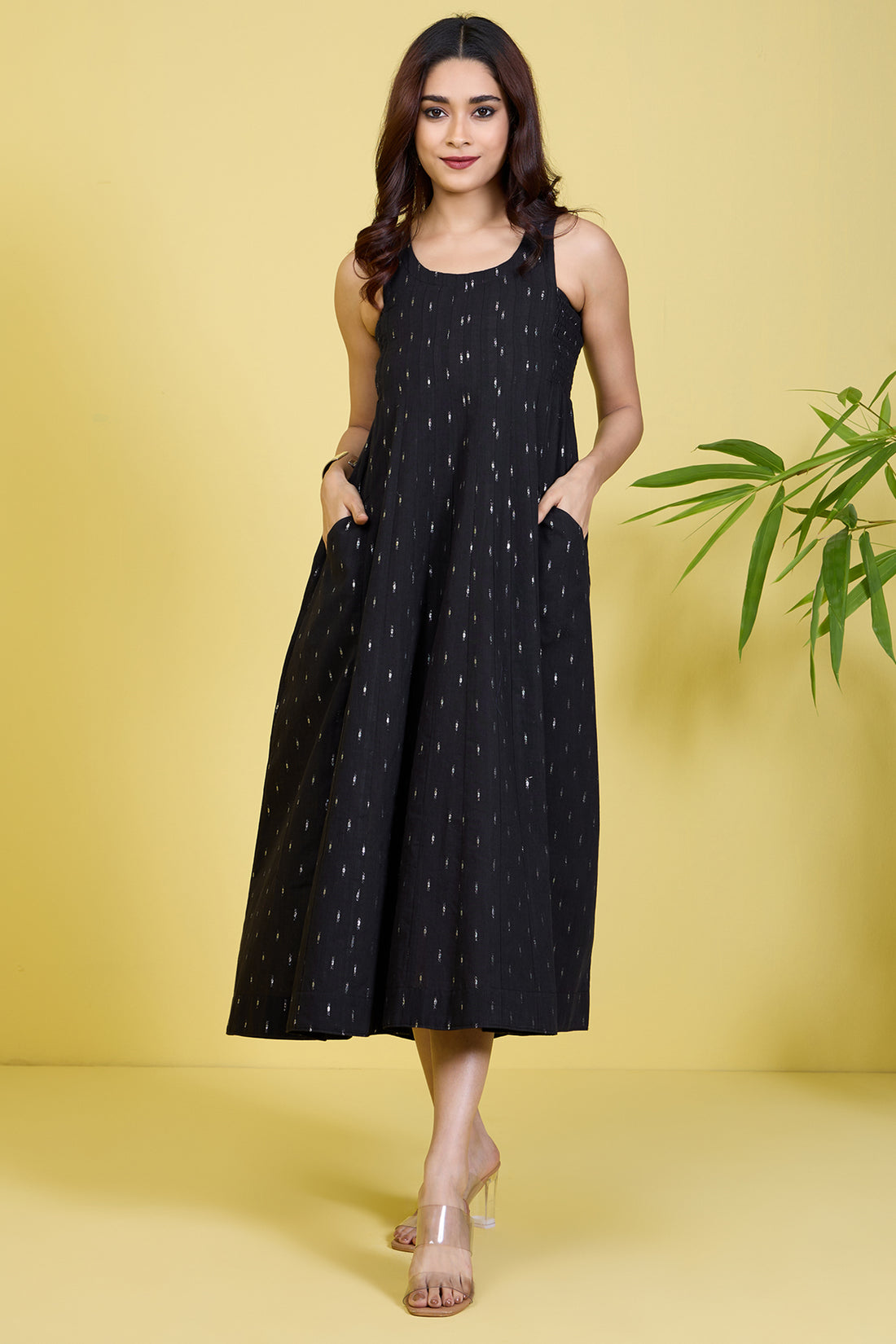 smocked black sleeveless dress onyx silver streaks