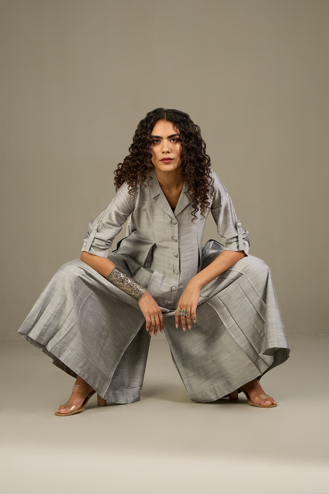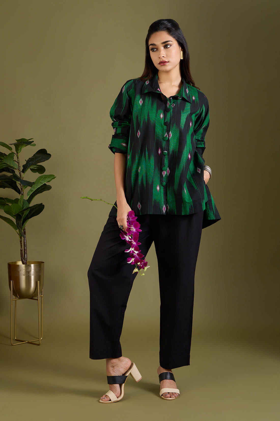 Smoke & Charcoal High Low Hem Cotton Shirt