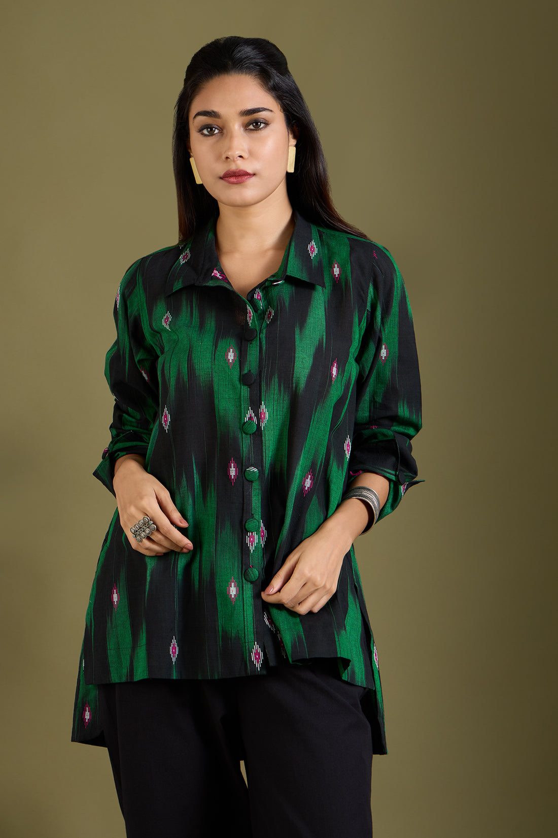 Opulent Emerald Viscose Silk Tunic Shirt Dress