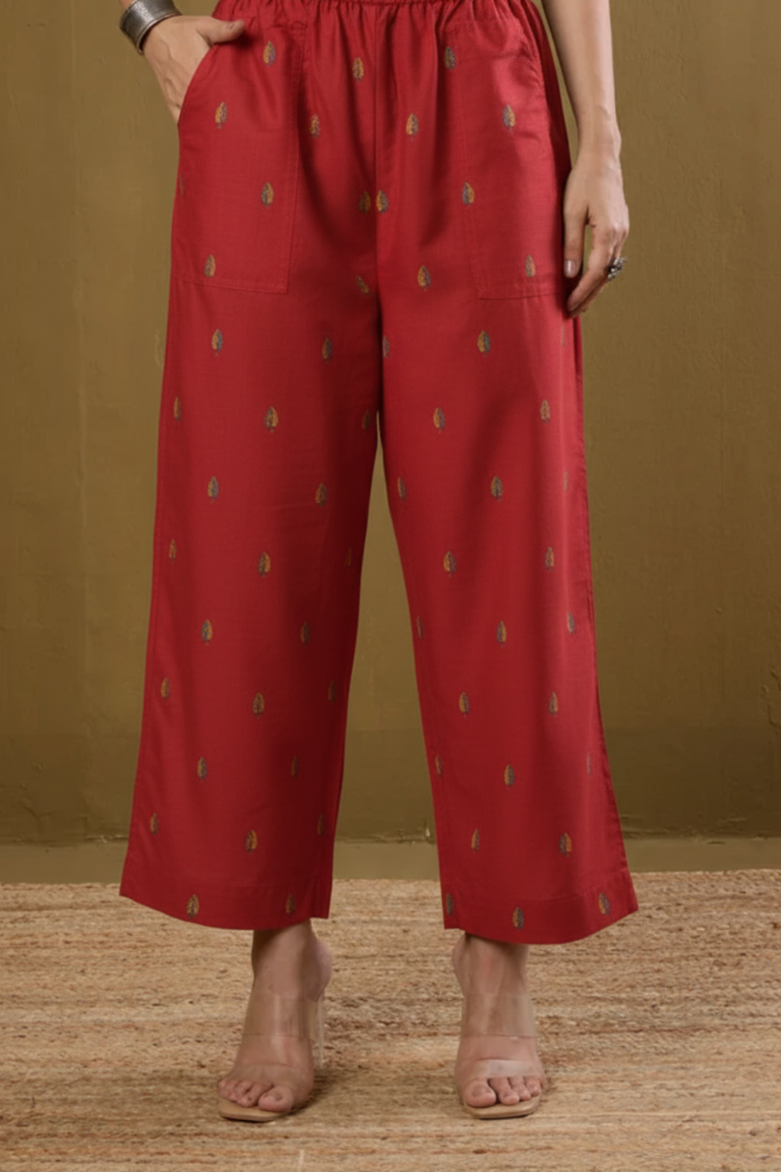 Comfort fit pants - Red Butti Cotton