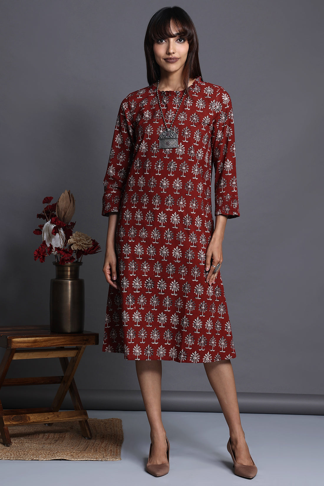 shift dress with smocked sleeves - madder oasis & periyar grove