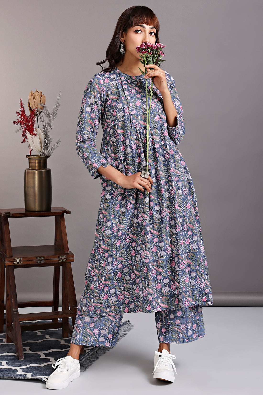 zen yoke gather kurta - irish grey & bougainvillea bloom